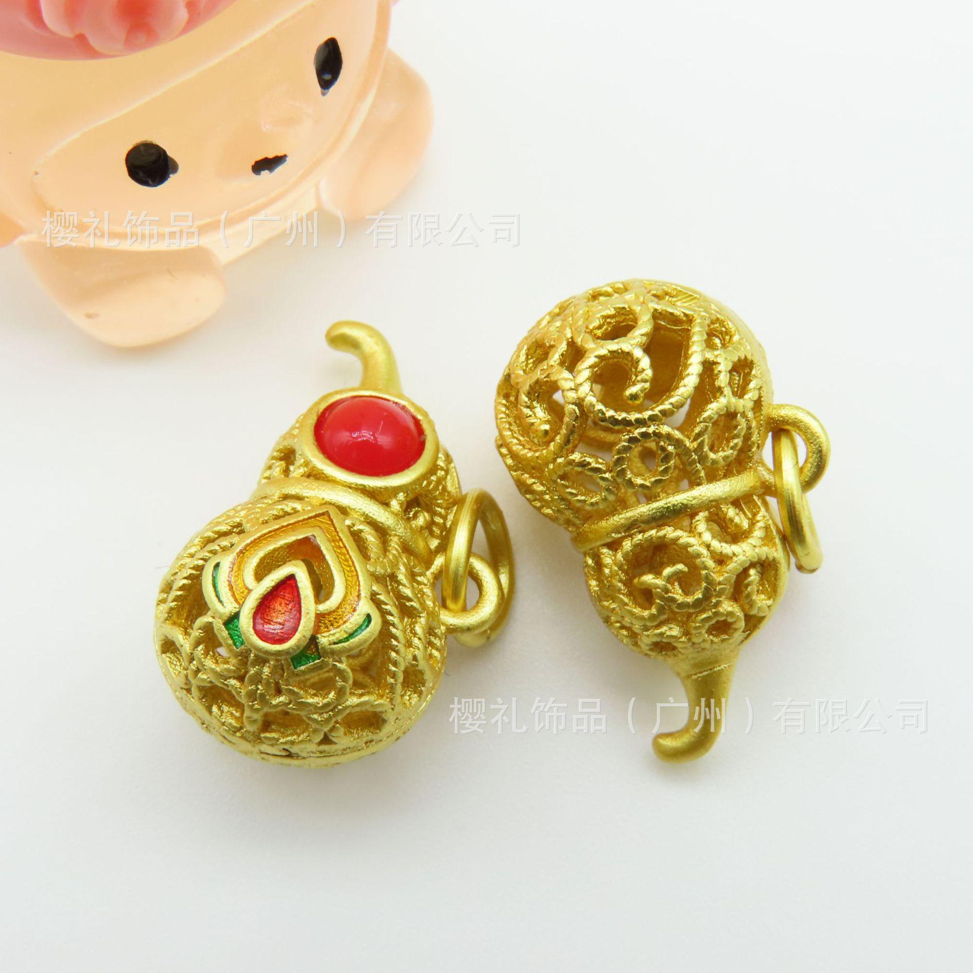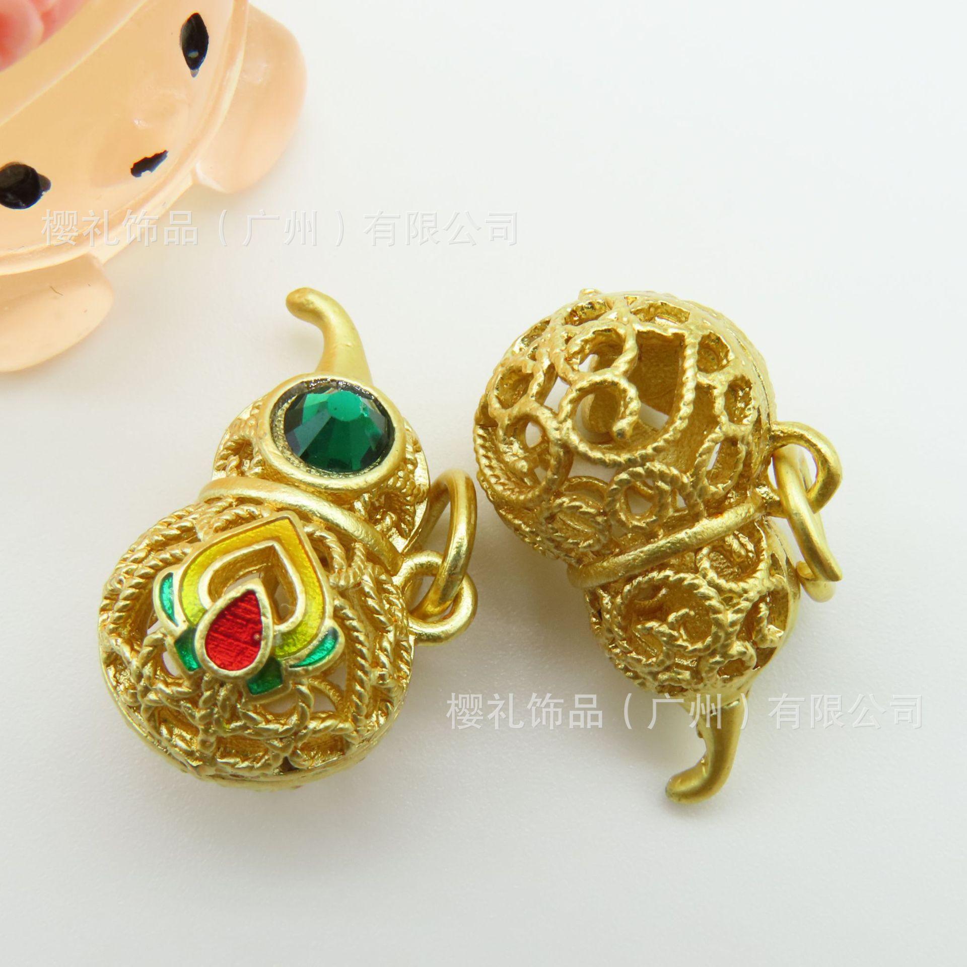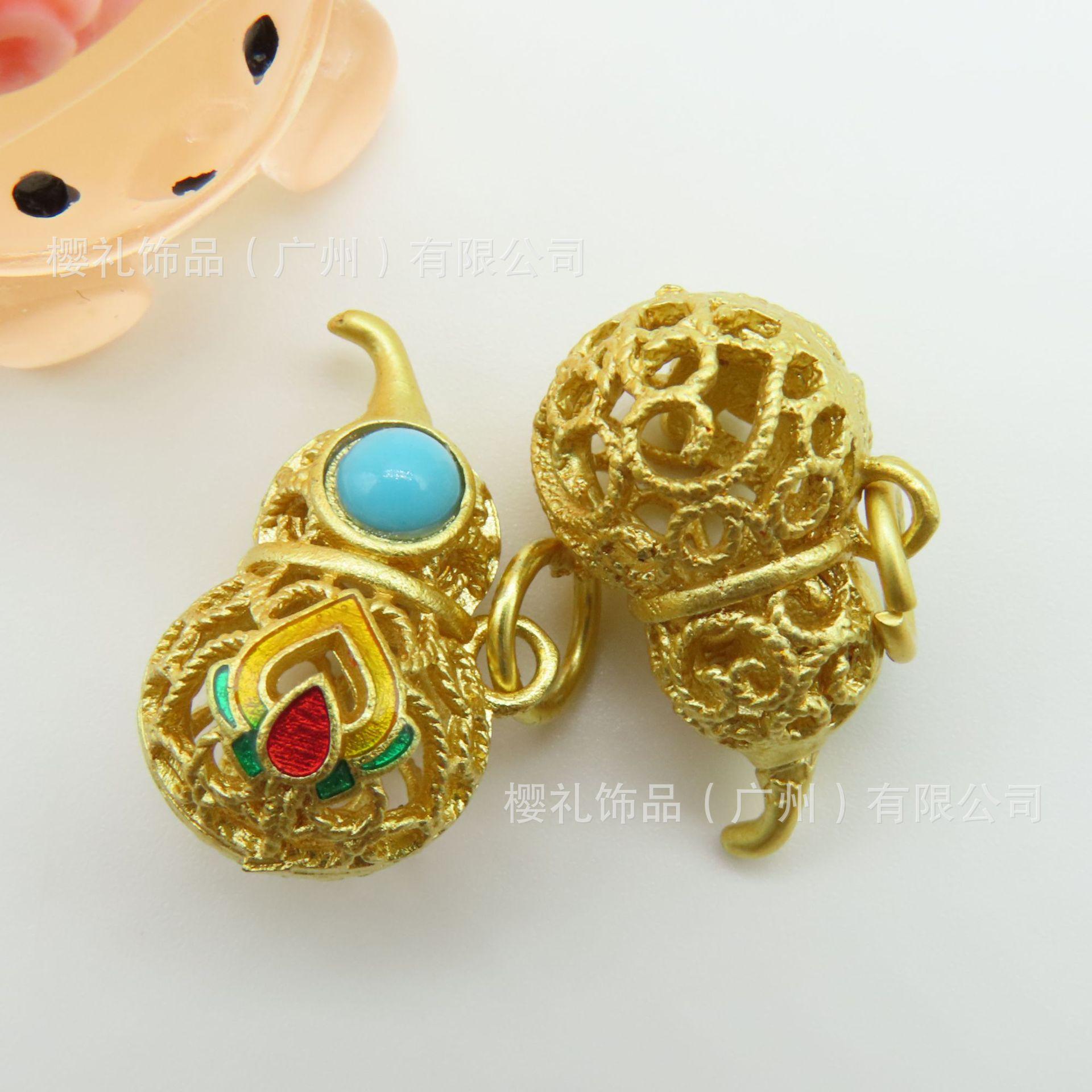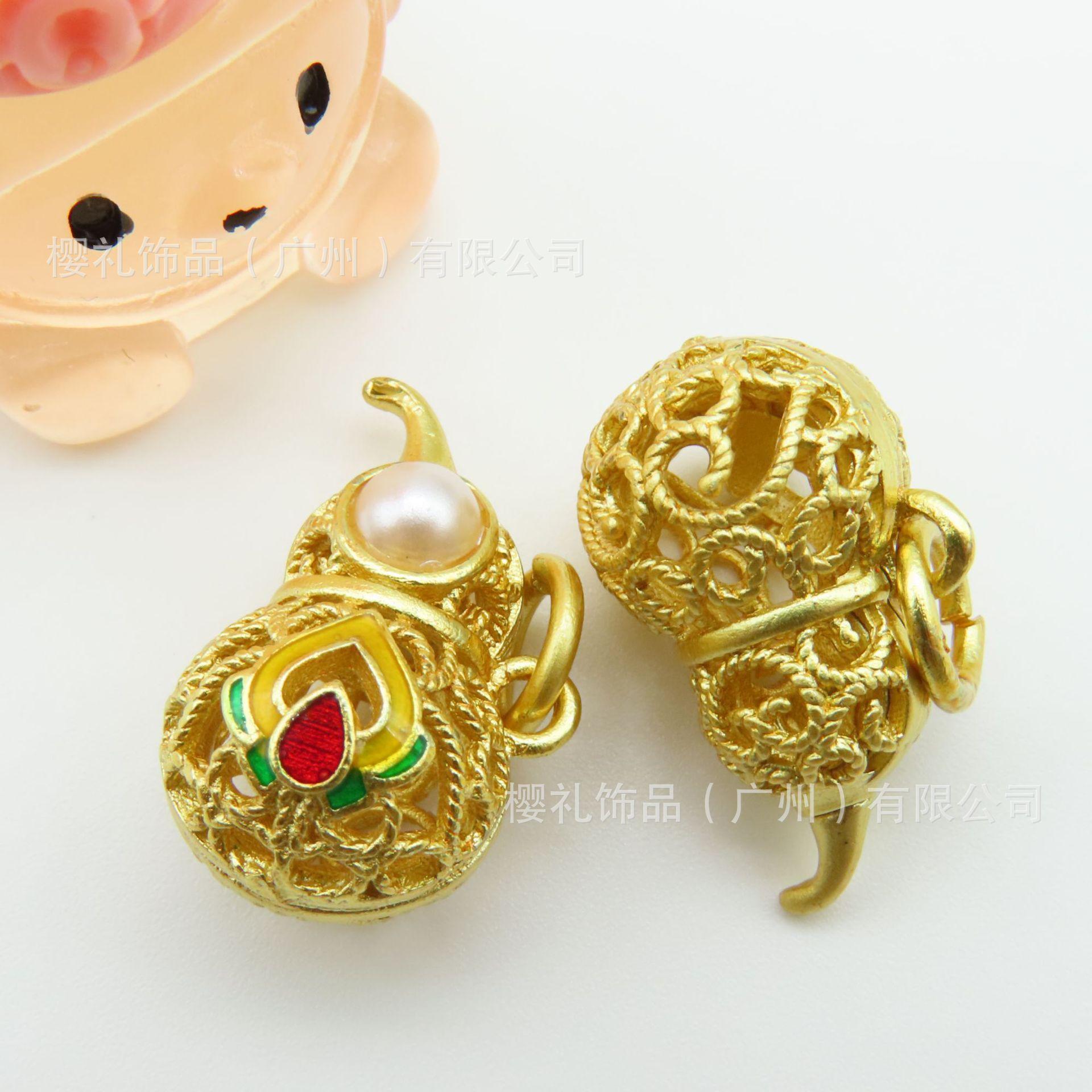 Antiguo color oro calabaza hueca accesorios de aceite incrustados imitación jaspe perla esmalte antiguo oro grueso antiguo al por mayor