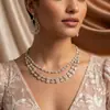 Conjunto de dos piezas de collar y pendientes de circonitas multicapa apilados para novia, boda, joyería de lujo, vestido de cena, vestido de novia, accesorios de boda