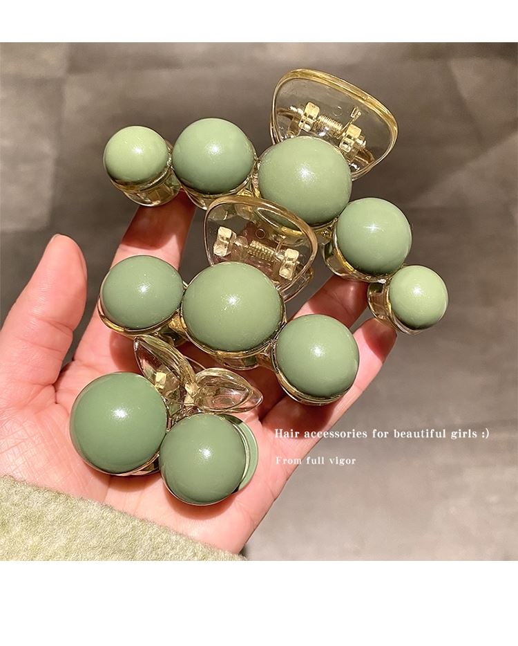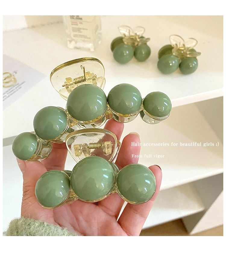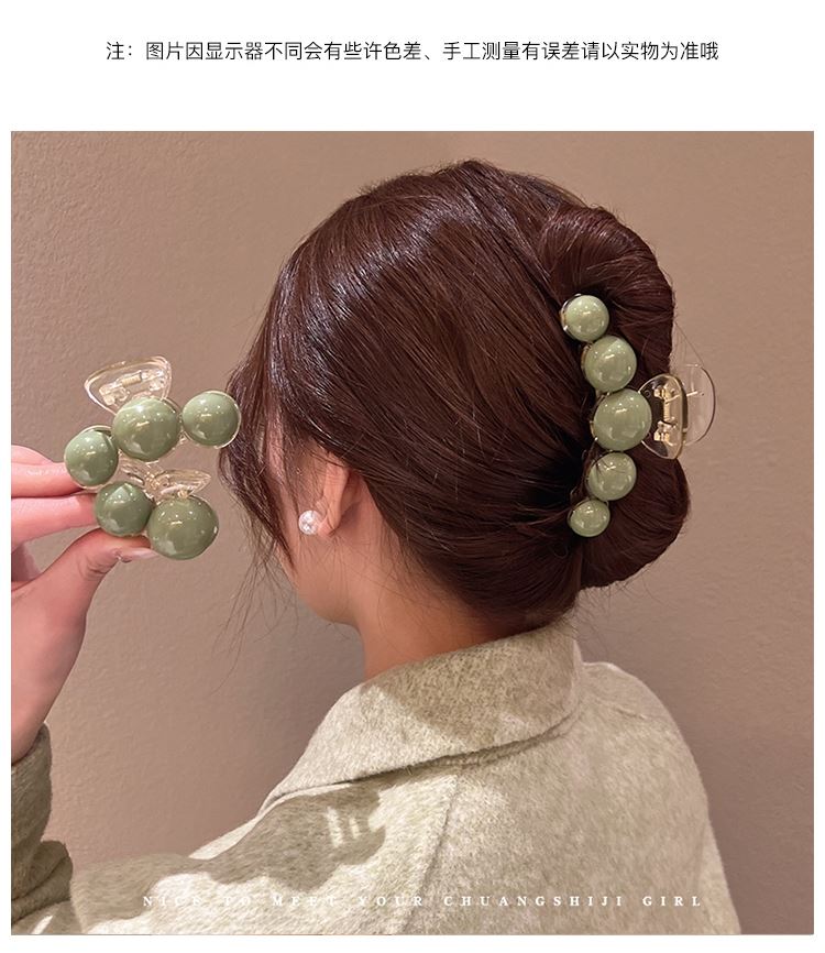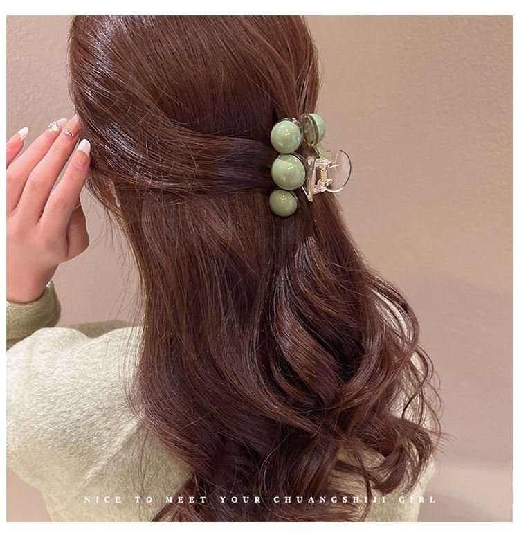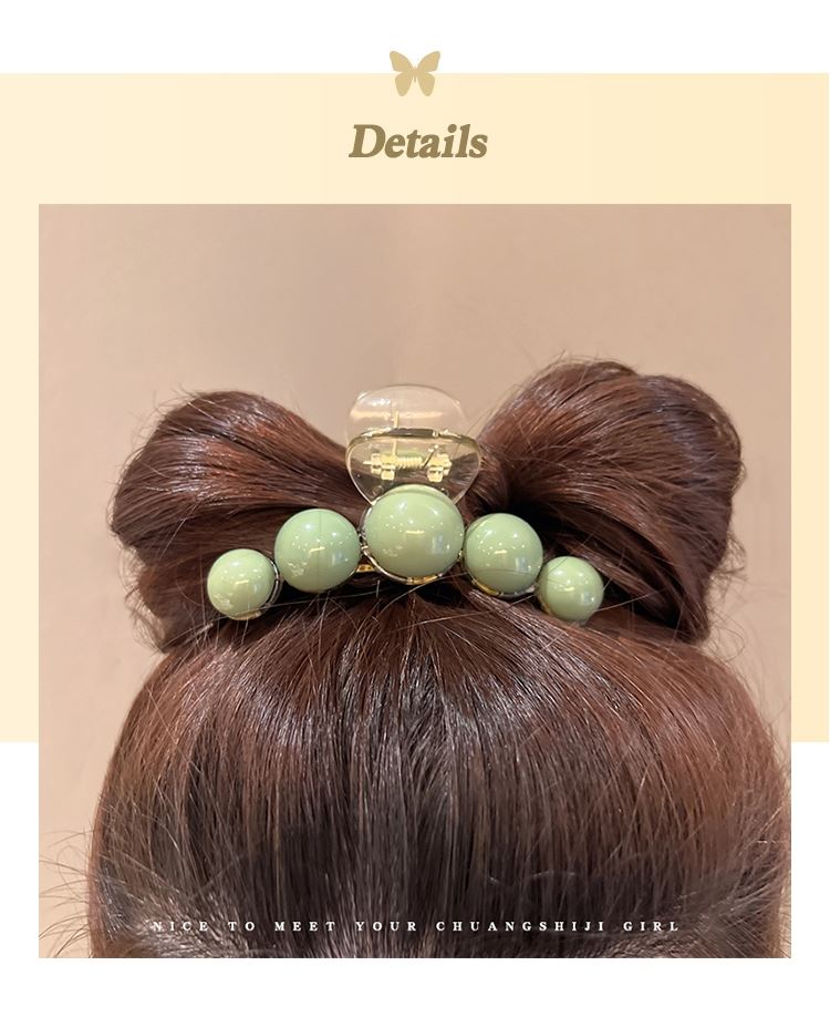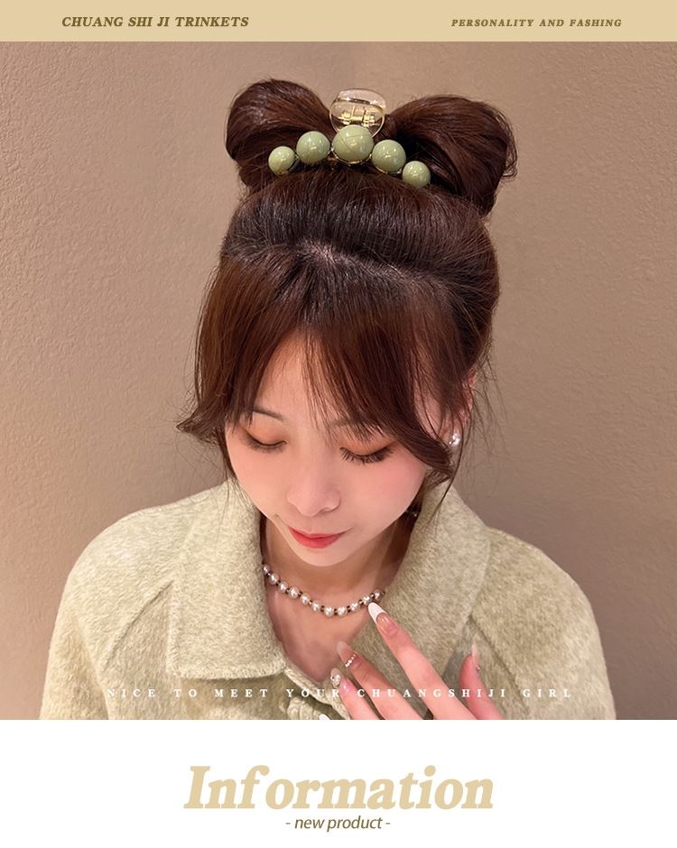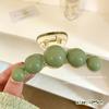 Pinza para el cabello de perla verde de alta gama para mujer con cabello semirrecogido en la parte posterior de la cabeza, pinza grande de tiburón para gran volumen de cabello