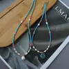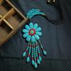 Nuevo Collar Largo de Cadena de Lana Estilo Bohemio Transfronterizo con Flor de Piedra Semipreciosa Tejido a Mano para Mujer