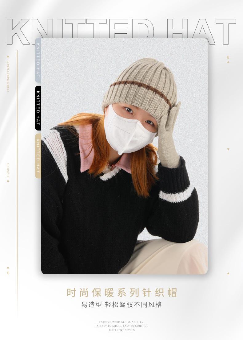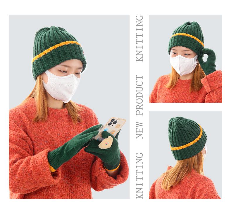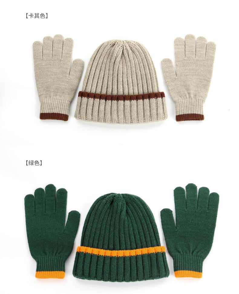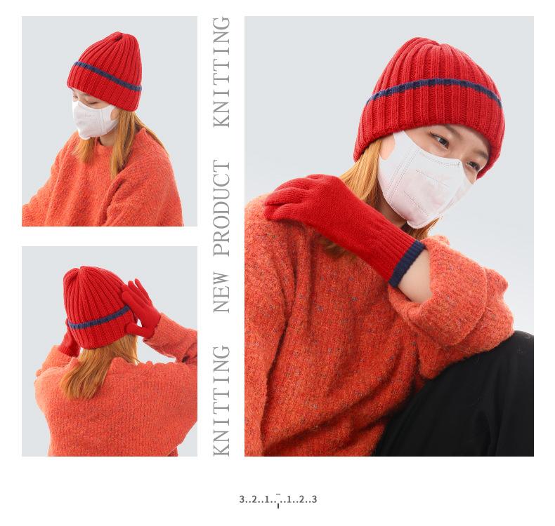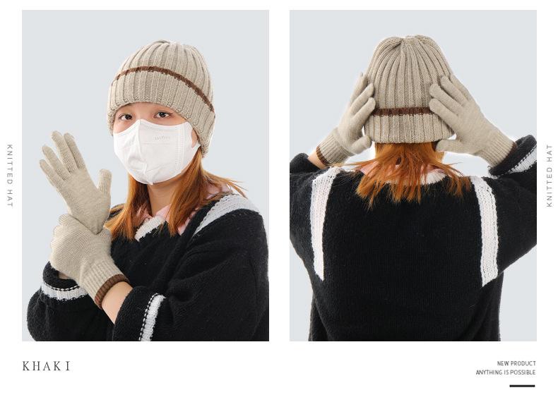 Conjunto de dos piezas de gorro y guantes de lana acrílicos cálidos, resistentes al frío, de jacquard, para esquí, a rayas y de punto.