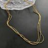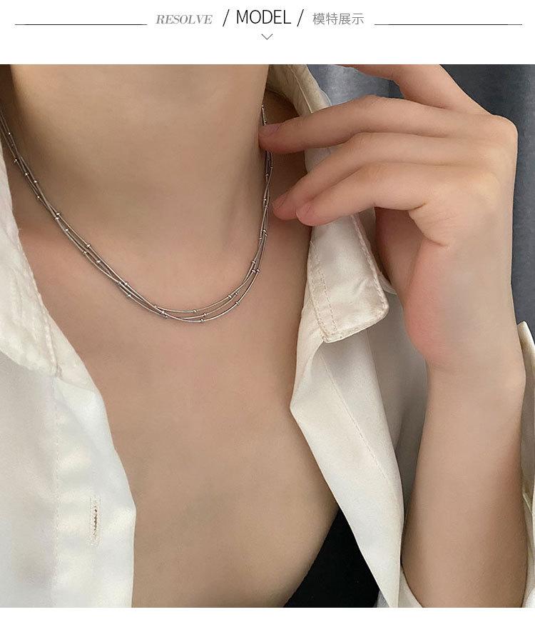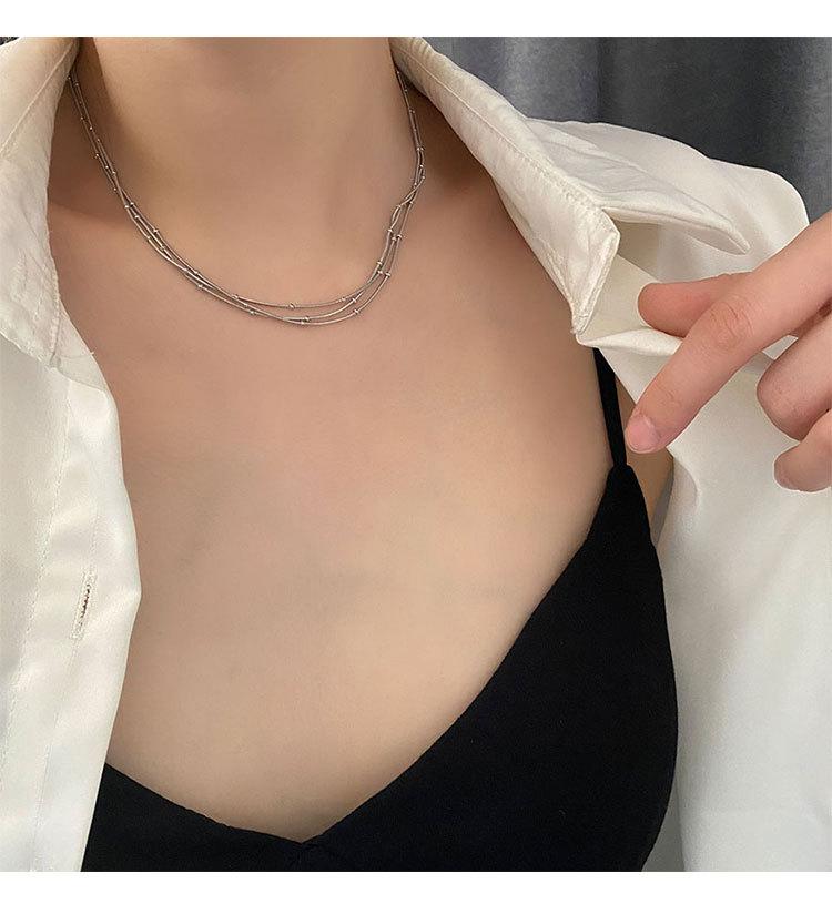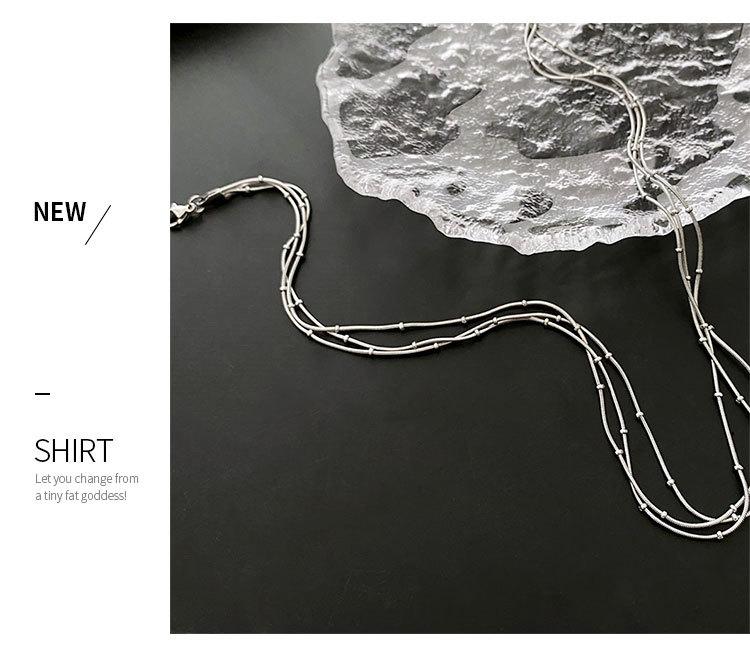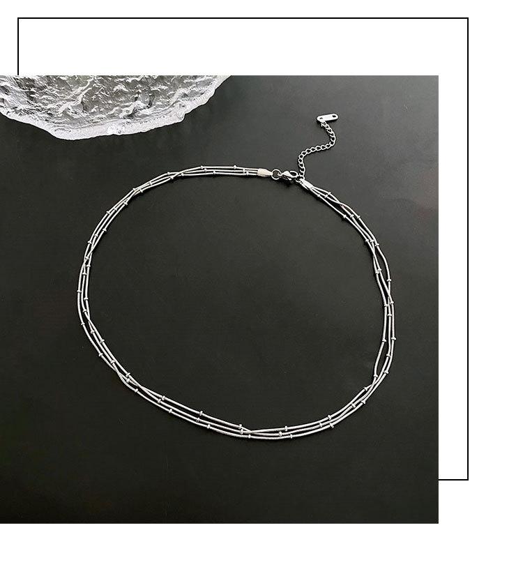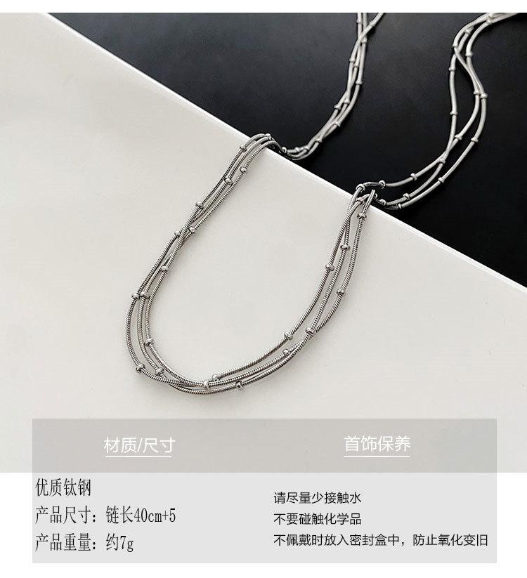 03-B2 titanium steel three-layer necklace silver, 03-B2 titanium steel three-layer necklace gold