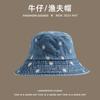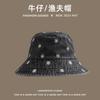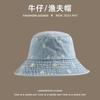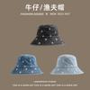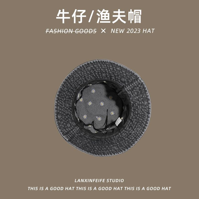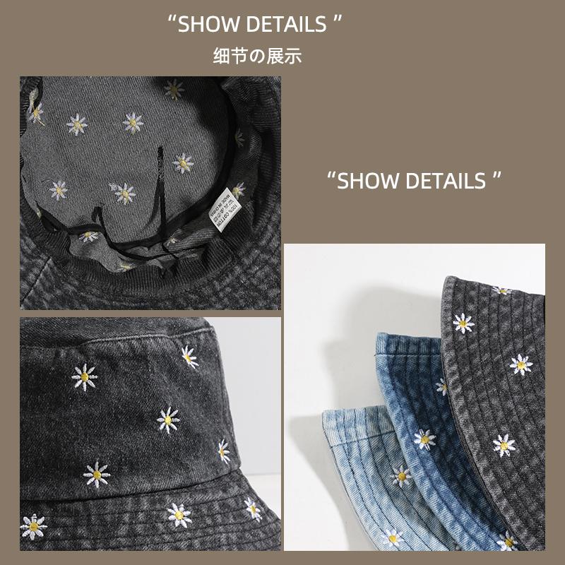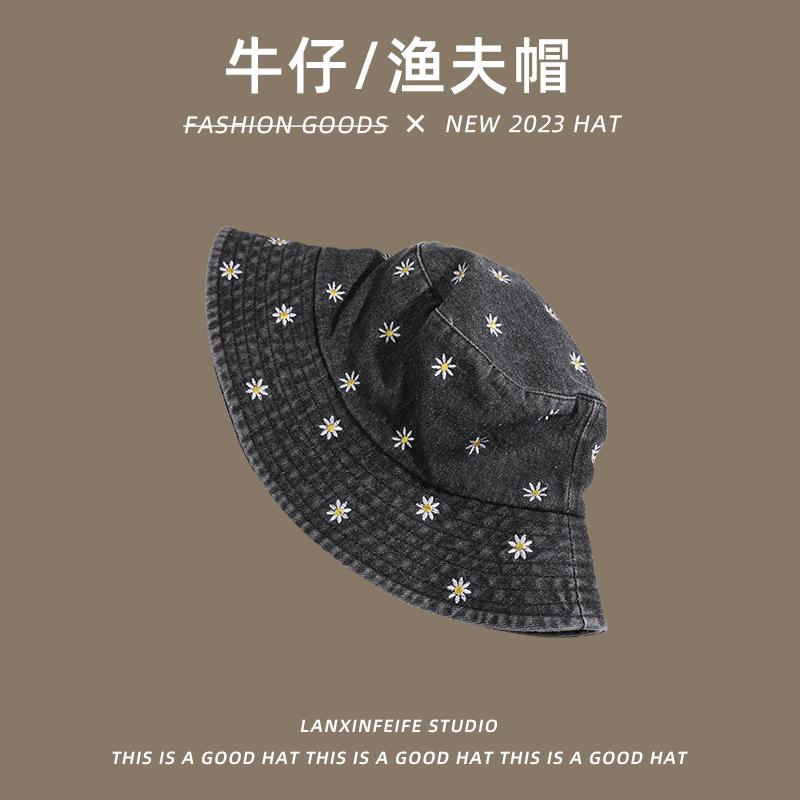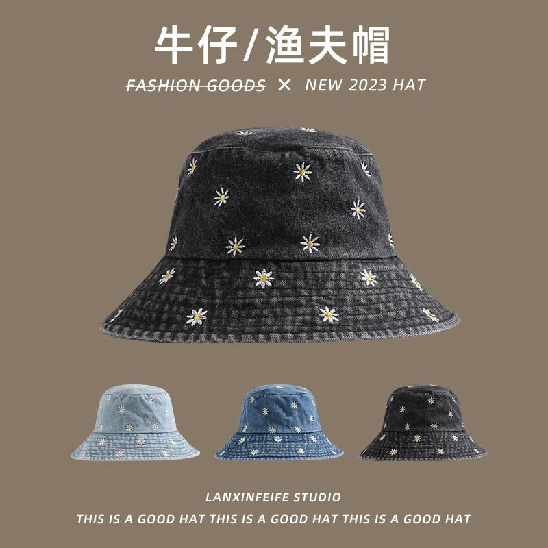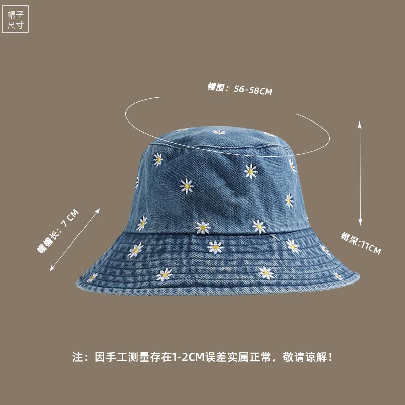 Sombrero de pescador vaquero para mujer, estilo coreano, transpirable, combinable, con estampado de crisantemo bordado, ala ancha, para exteriores