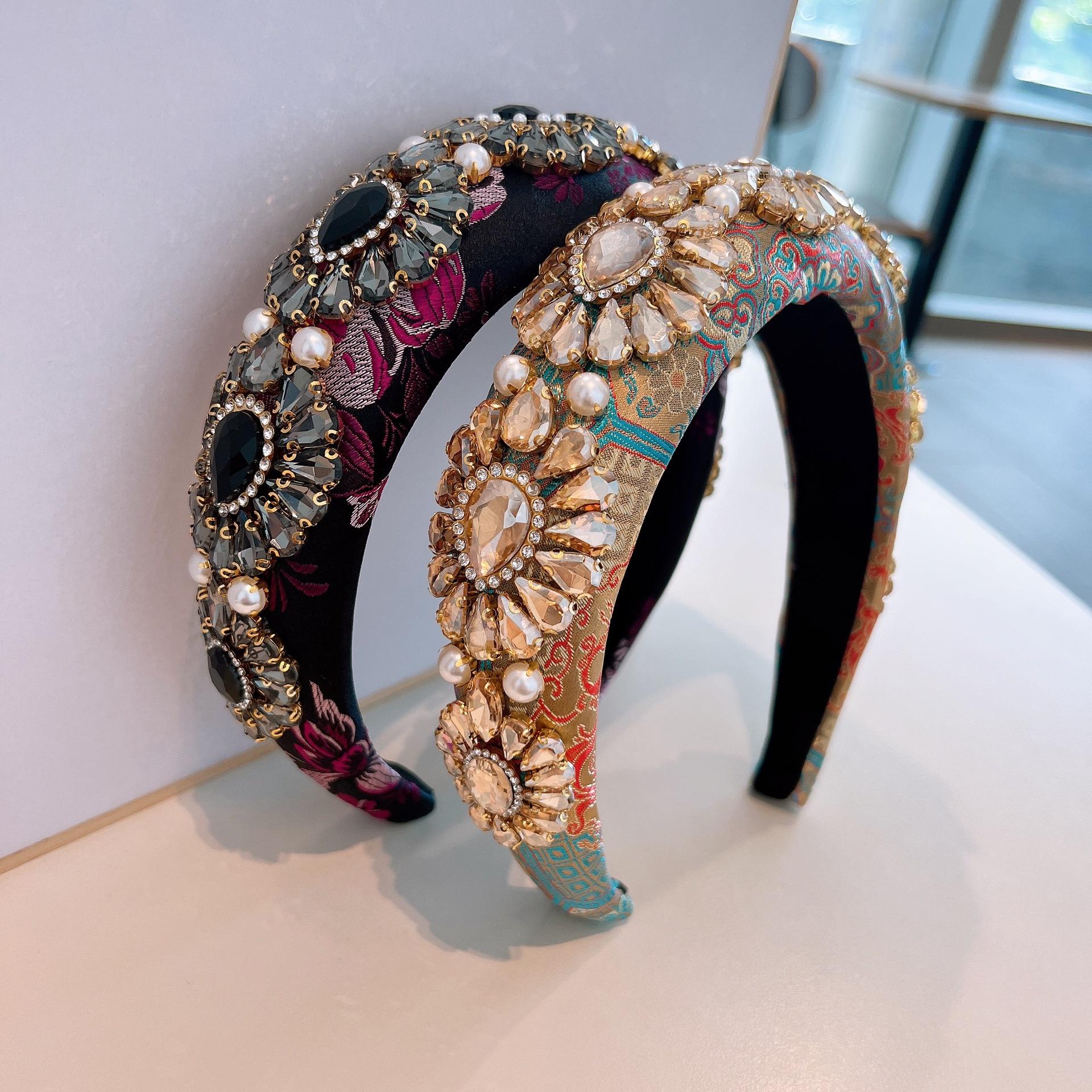 Accesorios para el Cabello Nupcial Retro Barroco Industria Pesada ~ Transfronterizo de Alta Gama Lujo Ligero Temperamento Hecho a Mano Bordado Banda para el Cabello Diadema