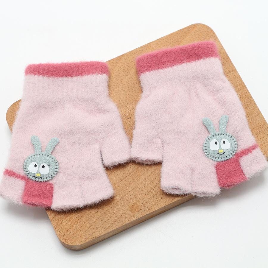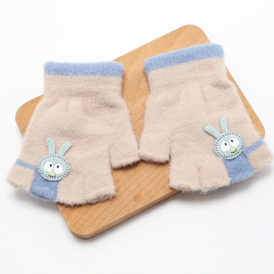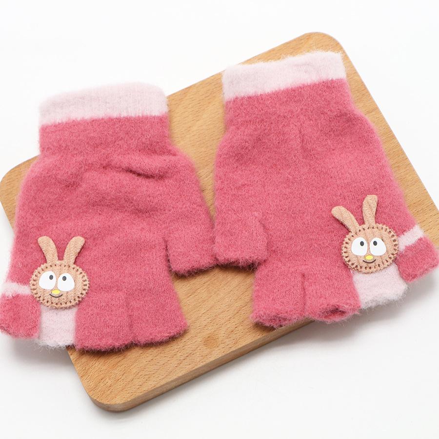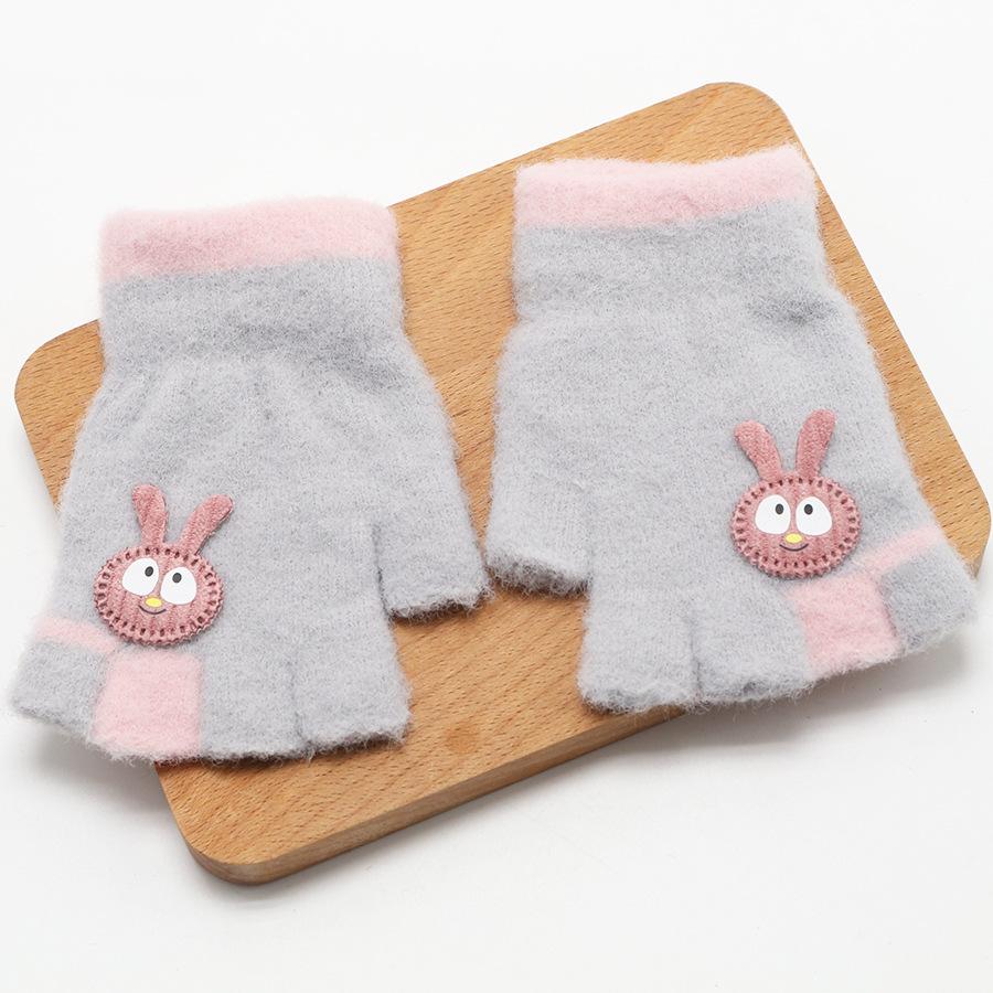 Guantes de medio dedo para niños, niños y niñas, dibujos animados, estudiantes, otoño e invierno, cálidos, bonitos guantes de escritura coreanos, lote de pelo