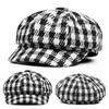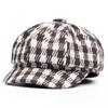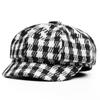 Gorro octogonal para mujer, boina a cuadros de lana de otoño e invierno, gorro de pintor coreano, gorra con visera británica cálida, venta al por mayor
