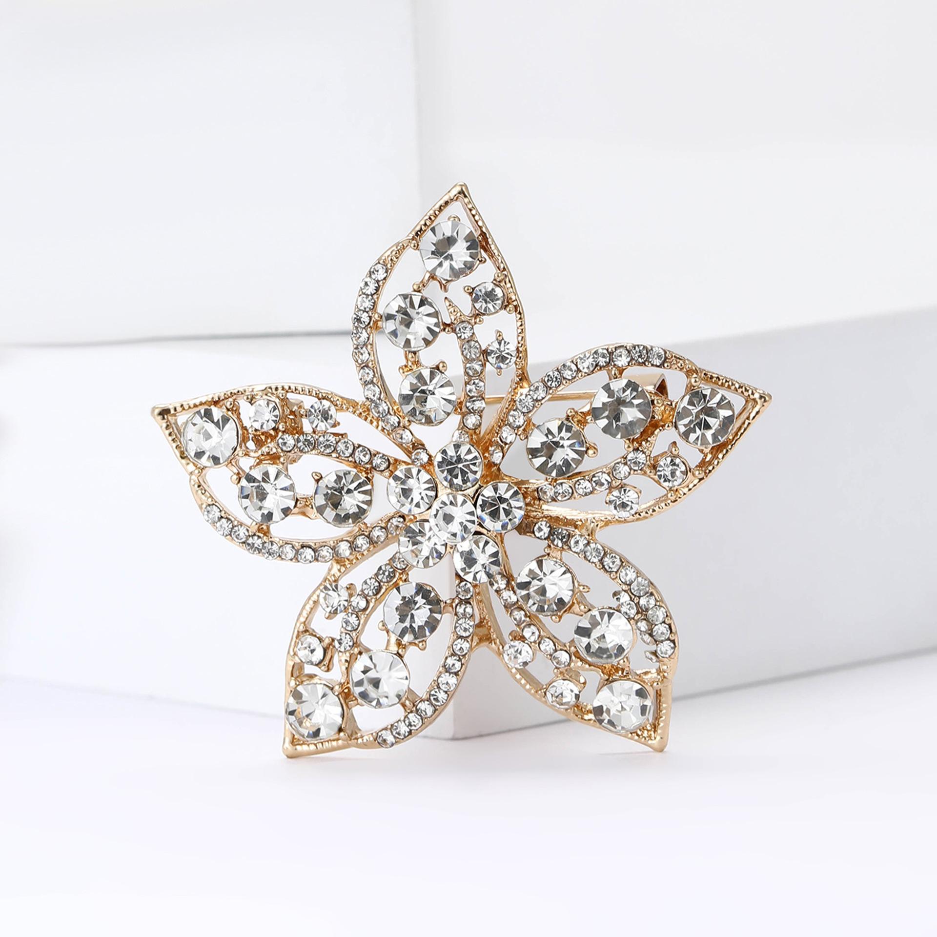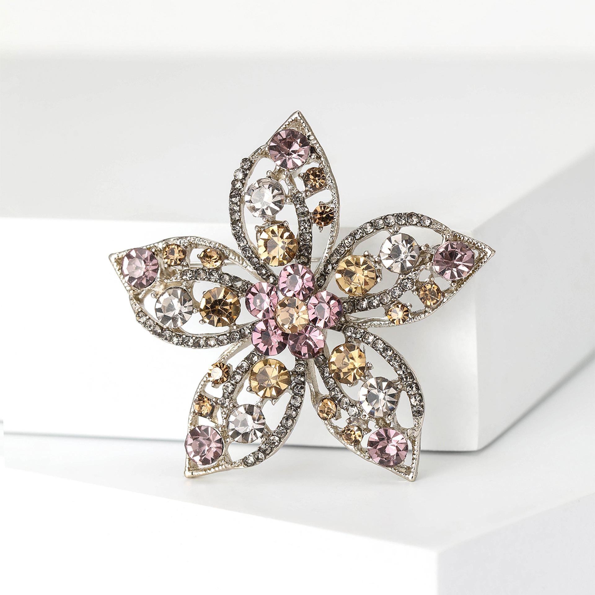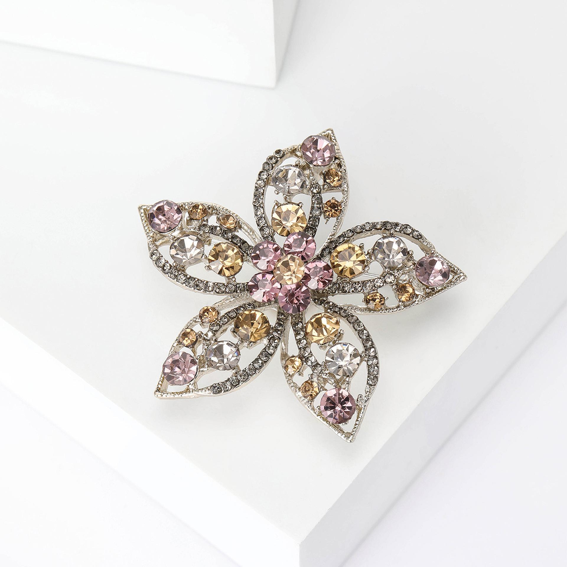 Broche de flores con diamantes de imitación de aleación de alta calidad, estilo europeo y americano, exquisito broche de ramillete para abrigo de mujer, ideal para combinar con todo.