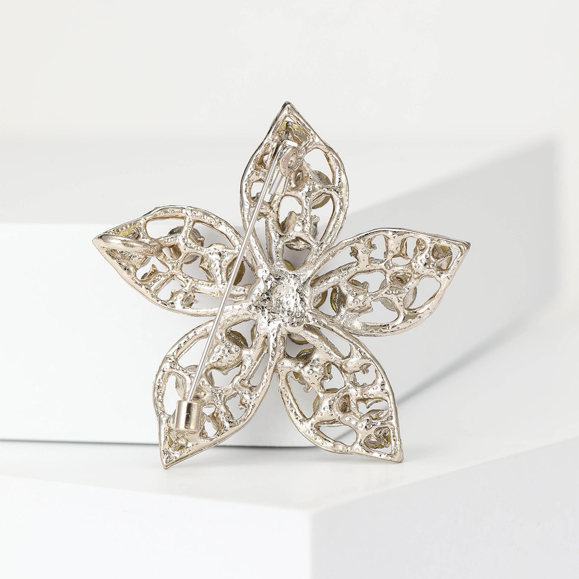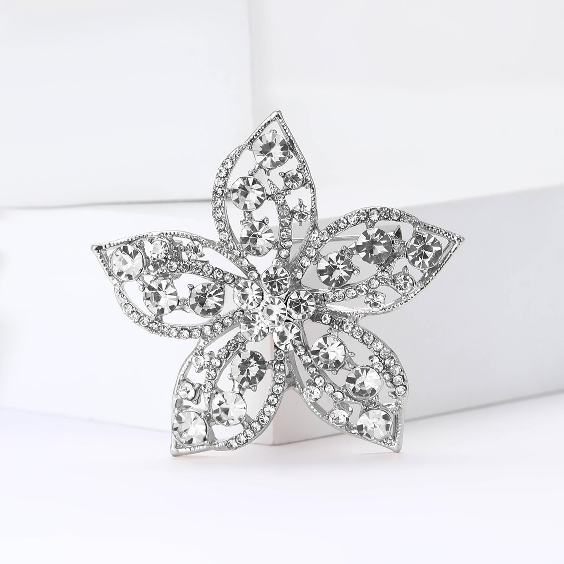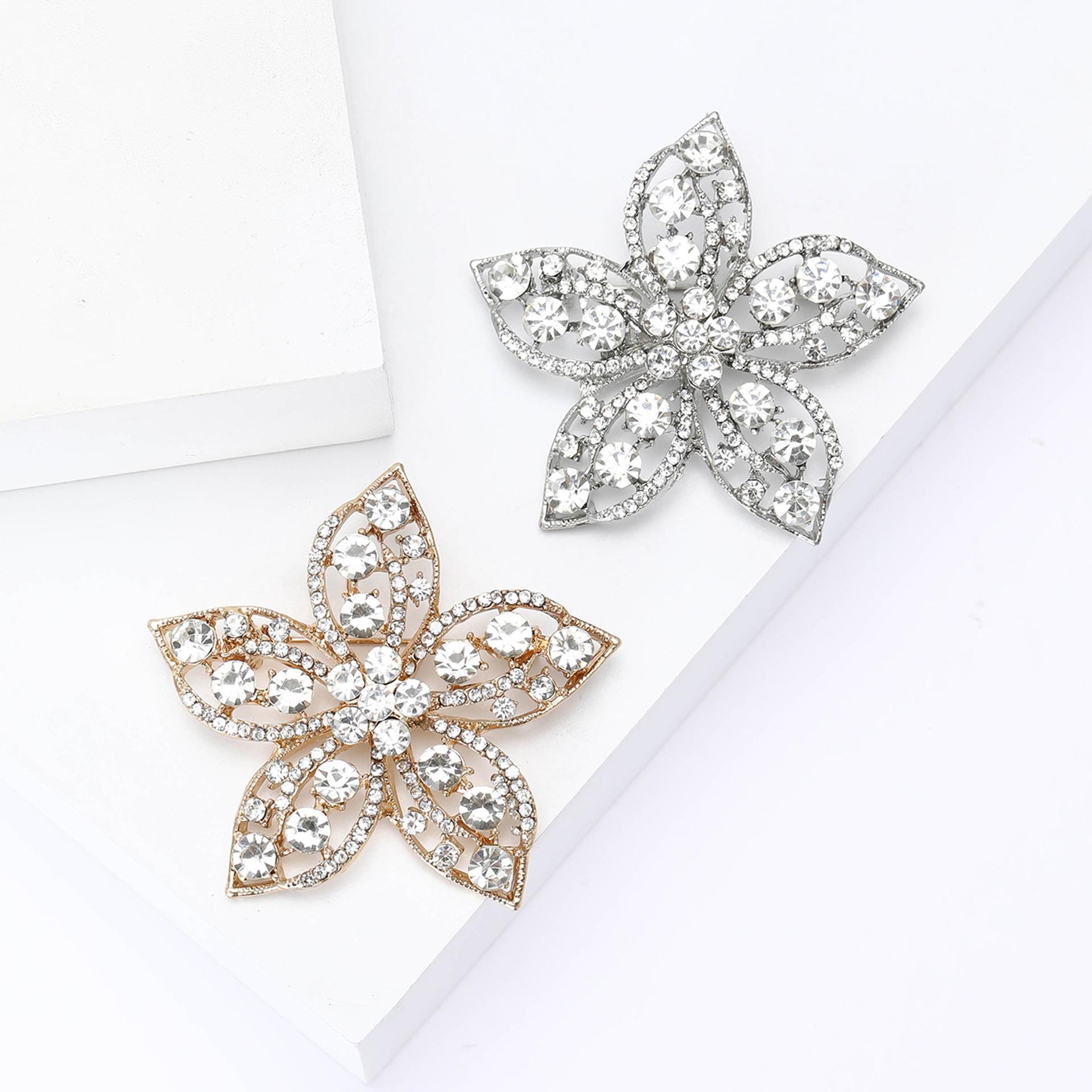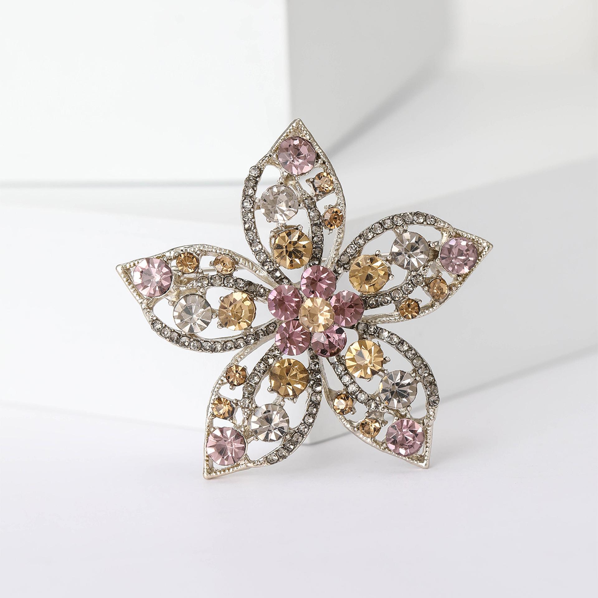 Broche de flores con diamantes de imitación de aleación de alta calidad, estilo europeo y americano, exquisito broche de ramillete para abrigo de mujer, ideal para combinar con todo.