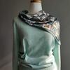 | Bufanda de seda sintética de estilo chic, con borde cruzado, plisada, floral, negra y gris, de 70 cm, pequeña diadema cuadrada decorativa. |