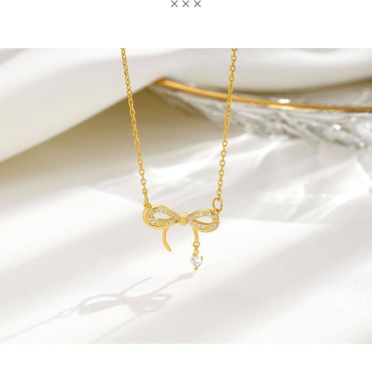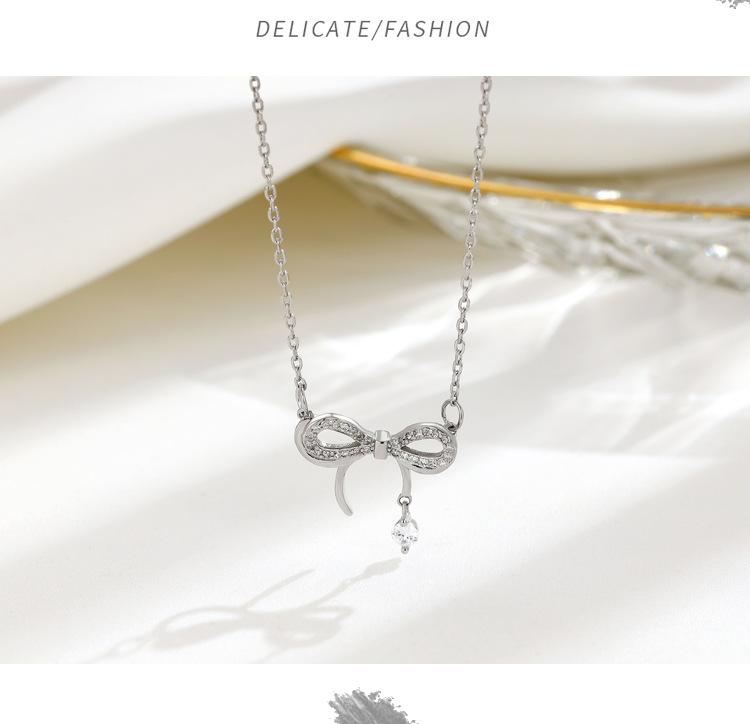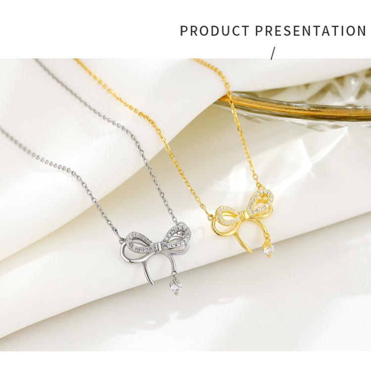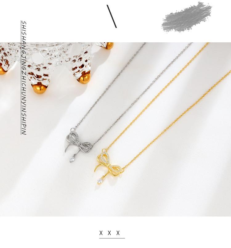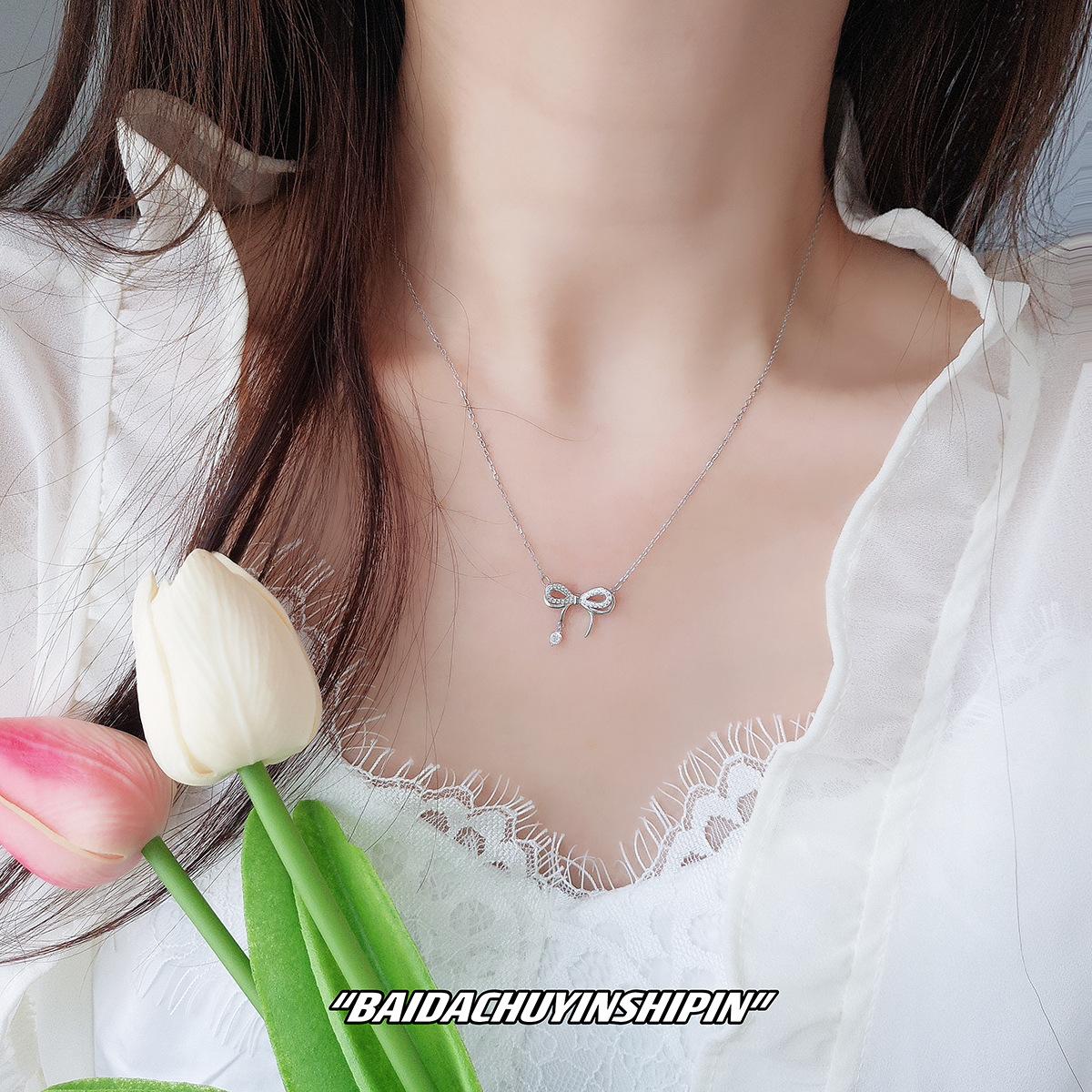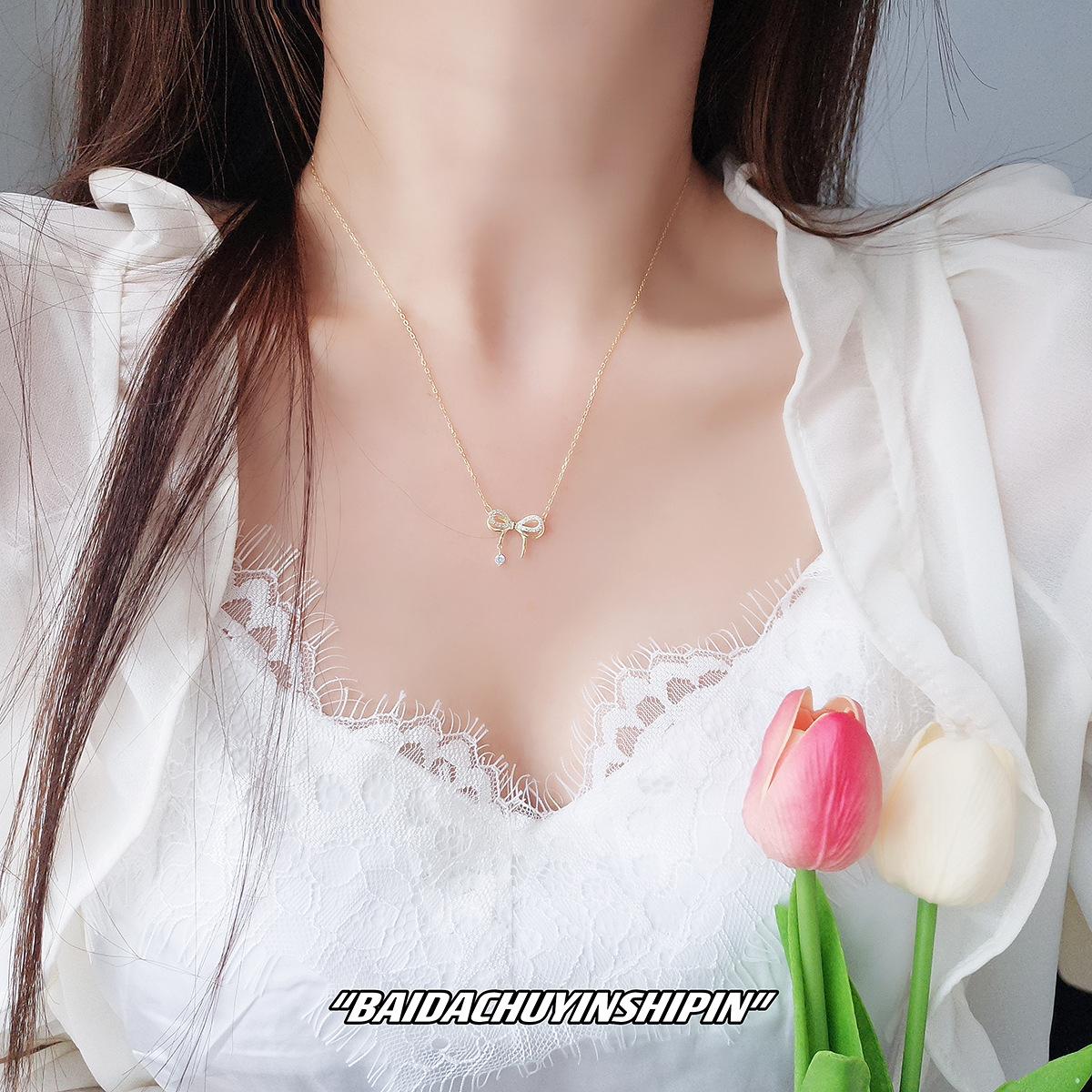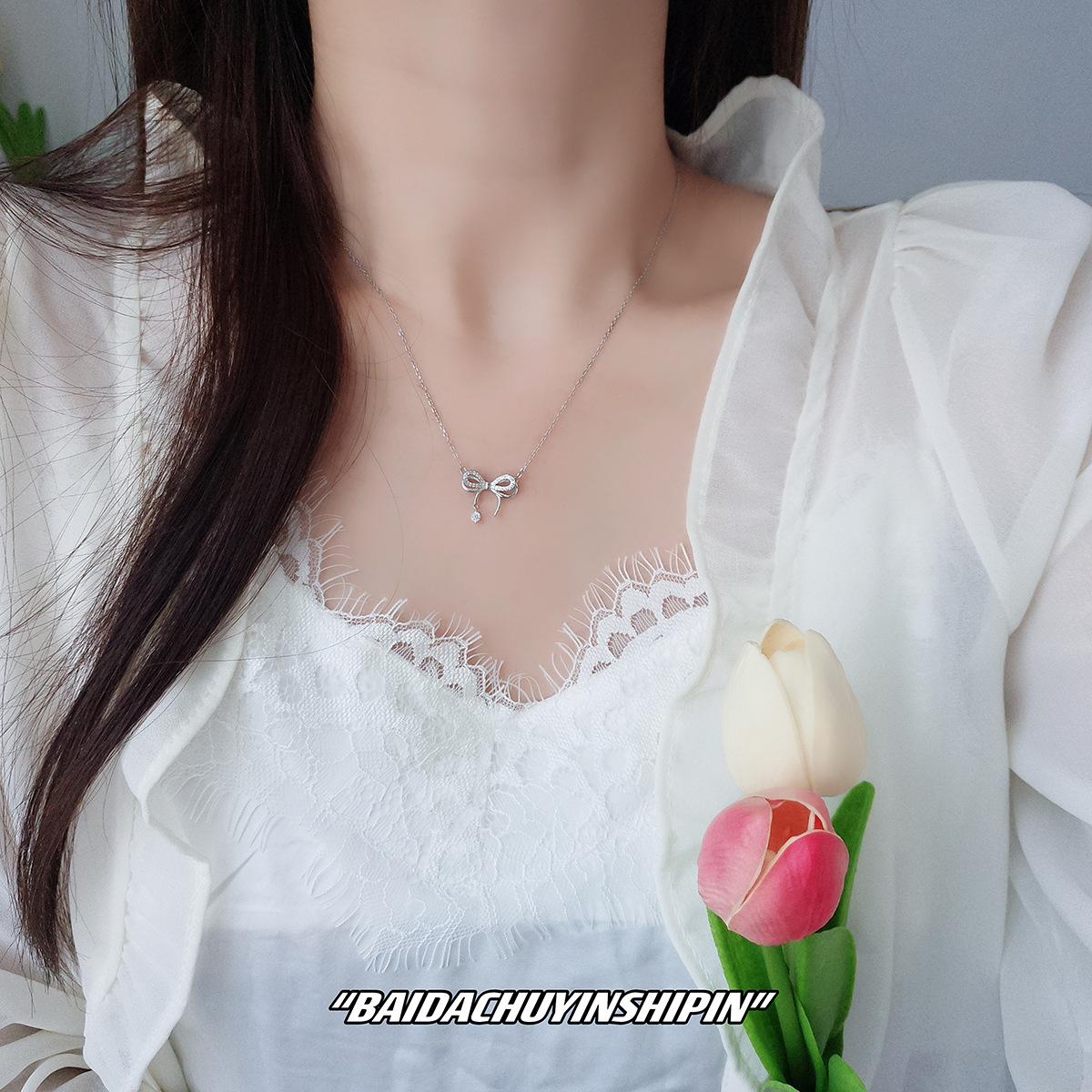 Collar elegante de plata de ley S925 con doble capa y lazo, combinable con todo, cadena de clavícula de mariposa de ensueño de alta gama, joyería, accesorios de moda para mujer