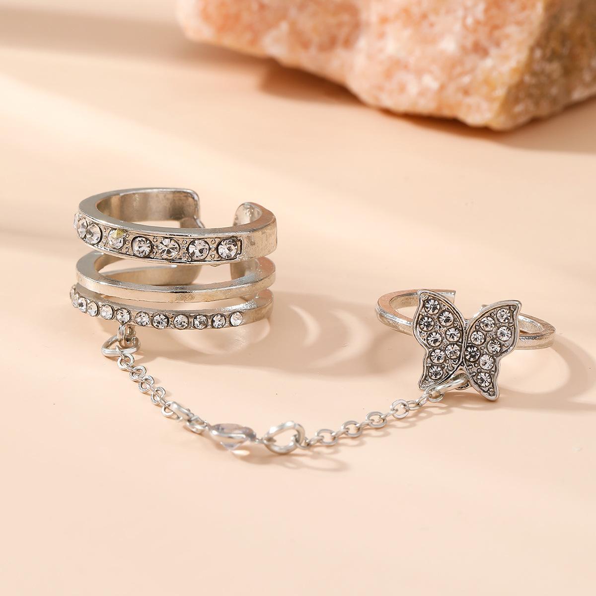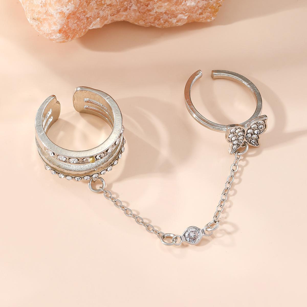 Anillo Europeo y Americano Transfronterizo Multifinger Mariposa Calado Diamante Abertura Personalidad Moda Simple Temperamento Lujo Ligero Alta Gama