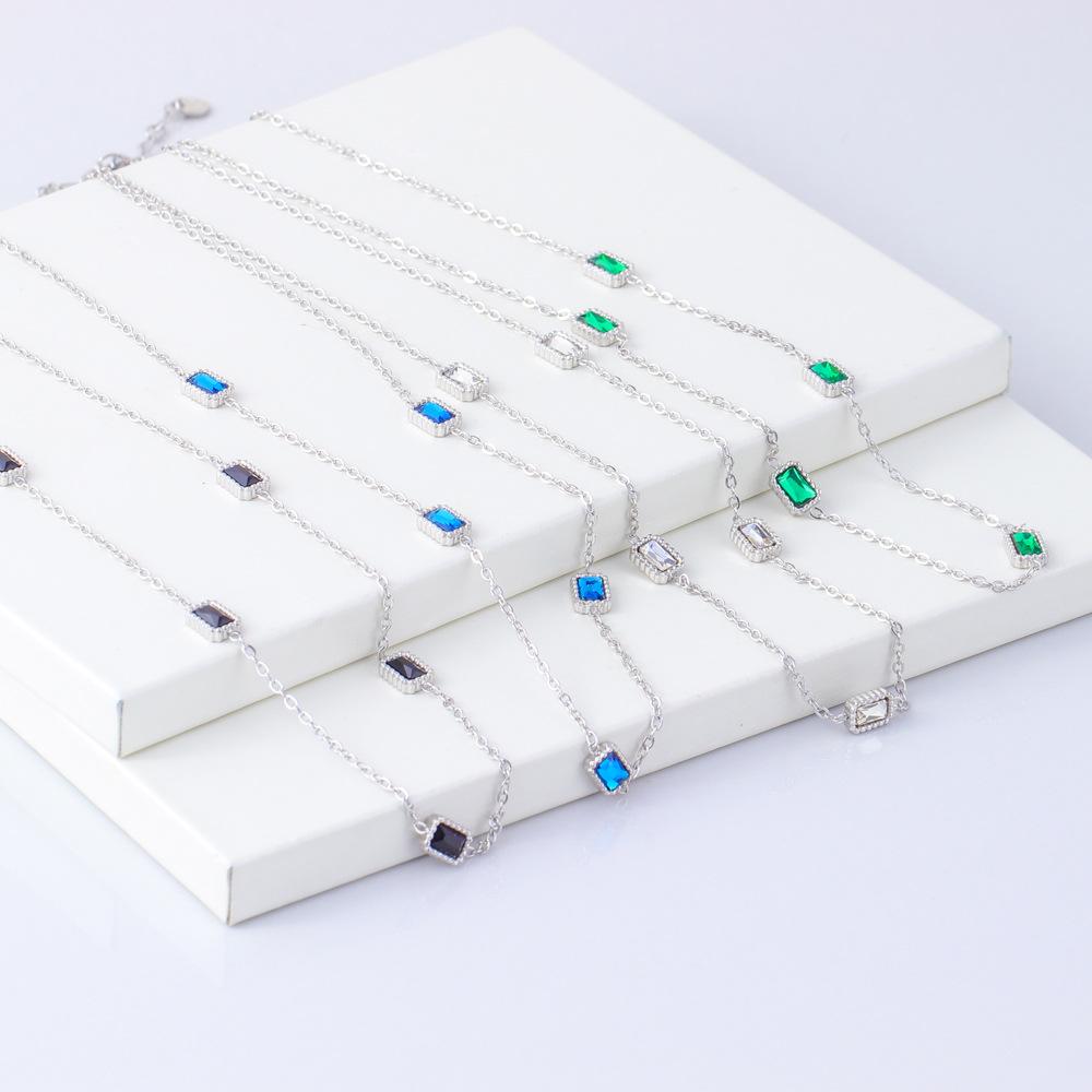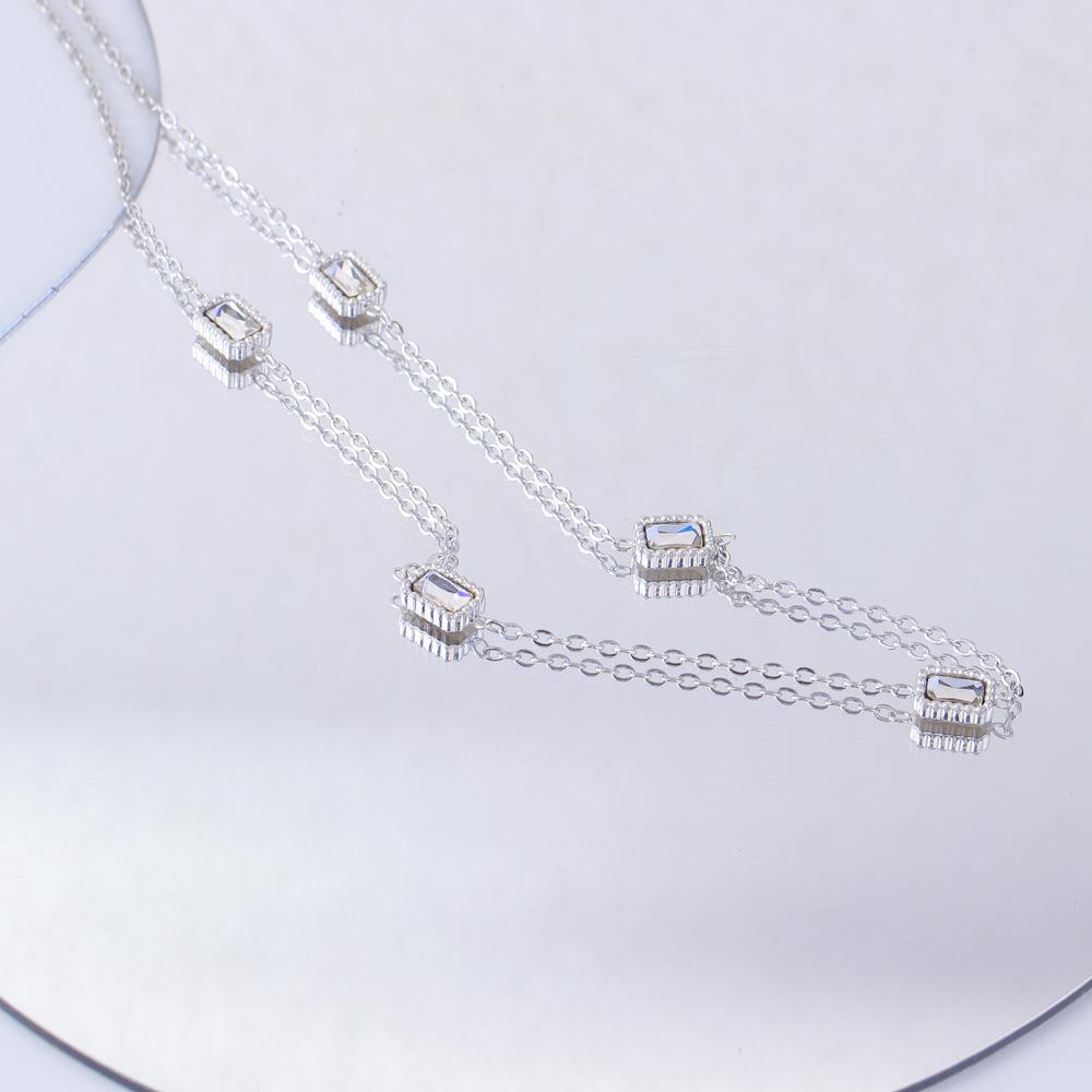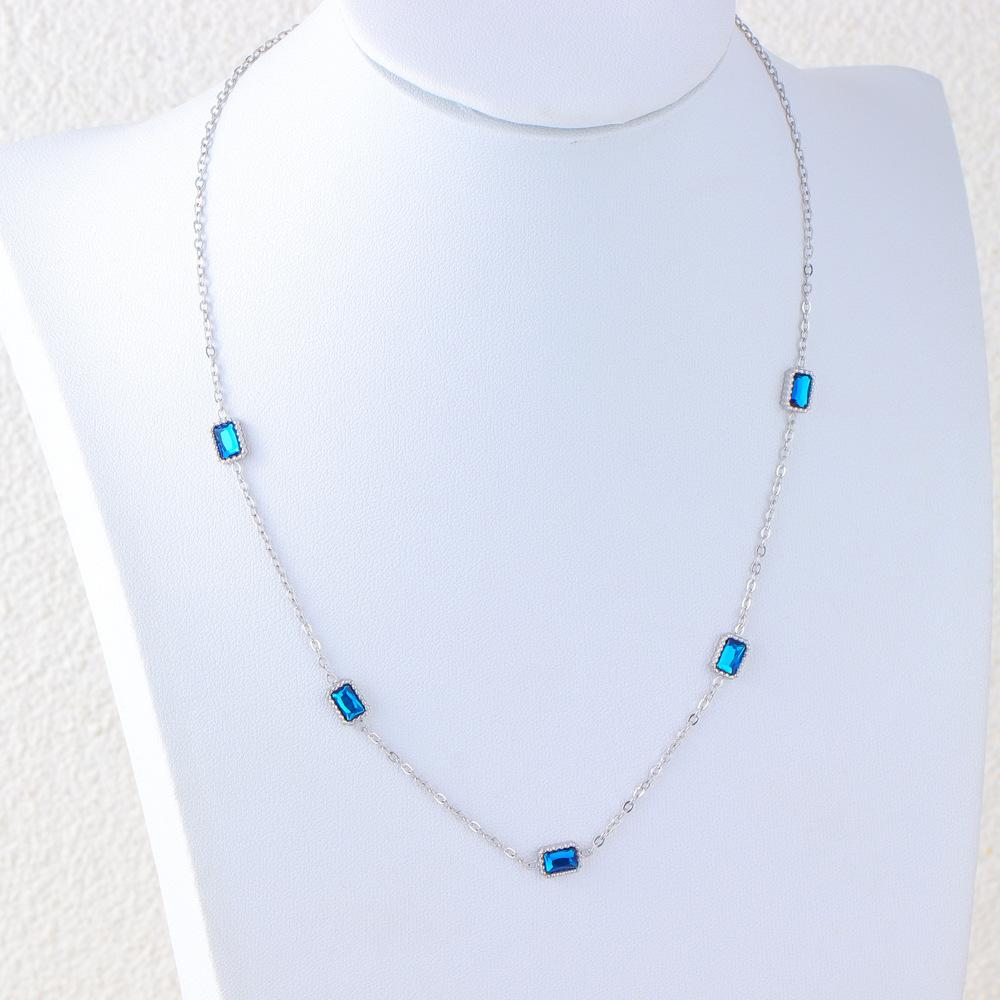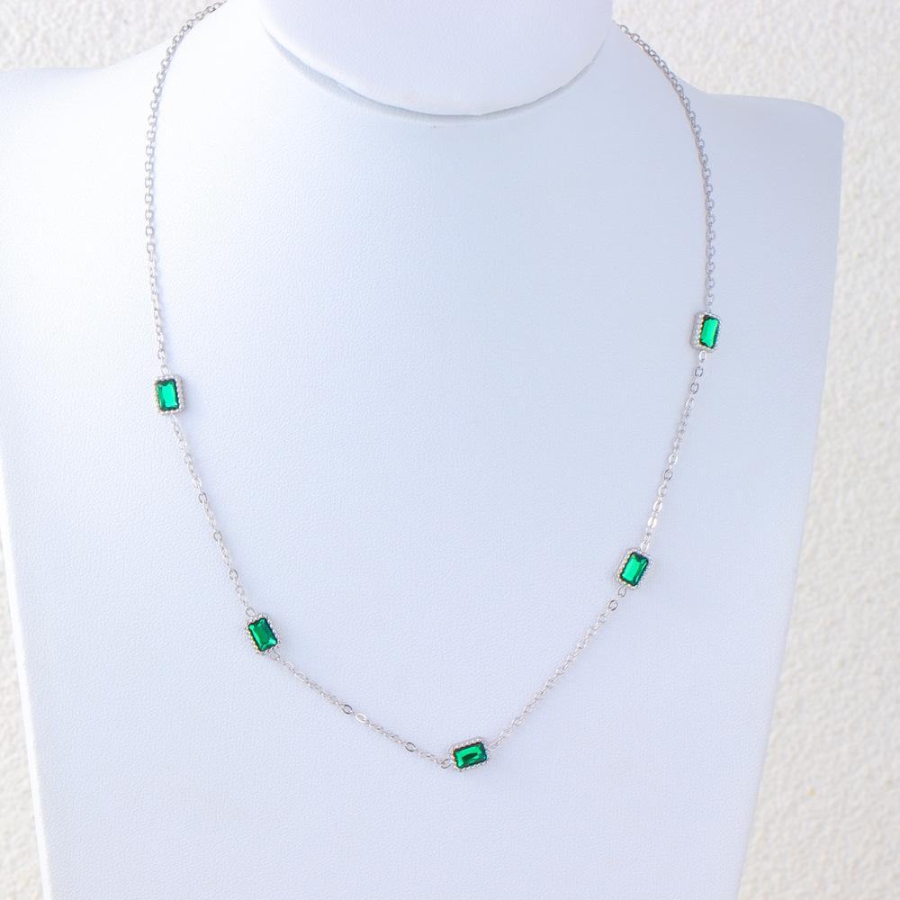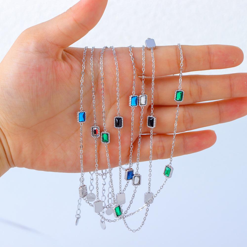 Collar de moda transfronteriza europea y americana de acero de titanio con circón colorido. Diseño de nicho de lujo ligero para mujer, acero inoxidable, diamante cuadrado, joyería para combinar con todo.