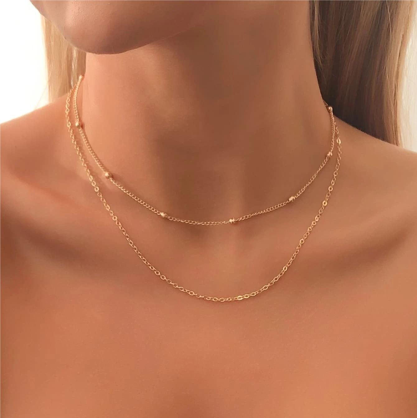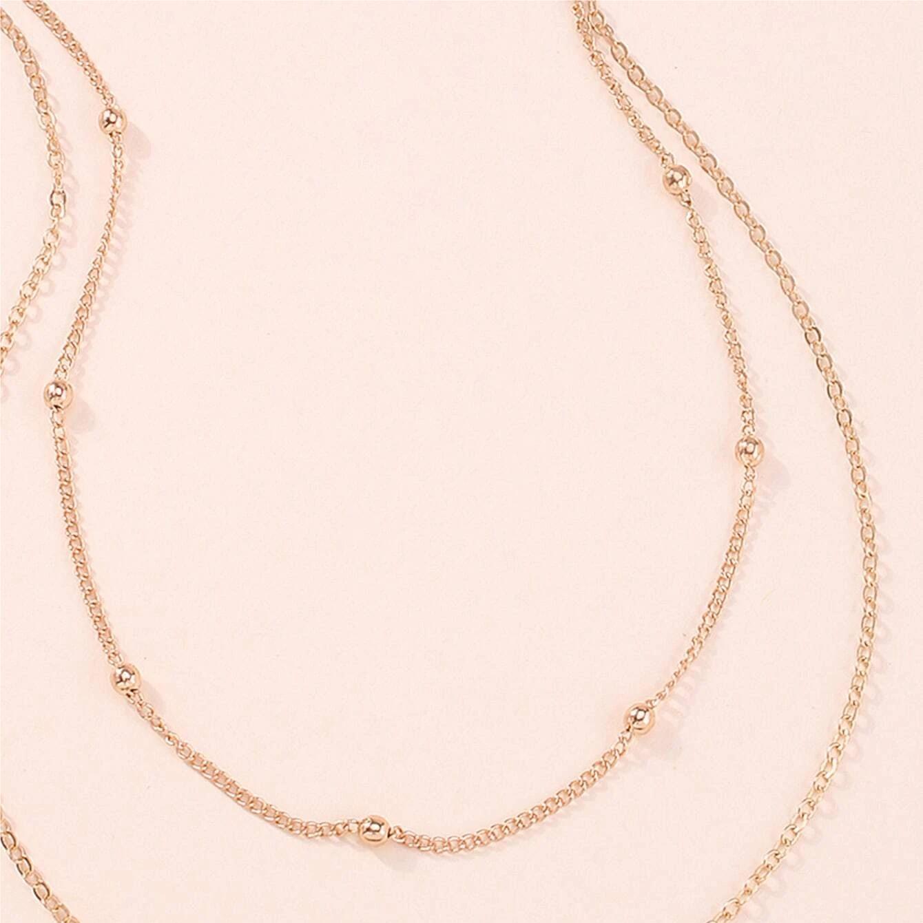 Cadena de metal europea y americana para el cuello, con cuentas redondas, cadena de hueso de serpiente, collar doble, cadena de clavícula geométrica de moda con personalidad simple para mujer N6049