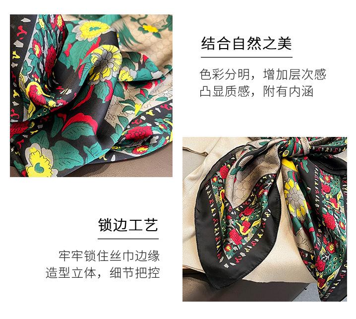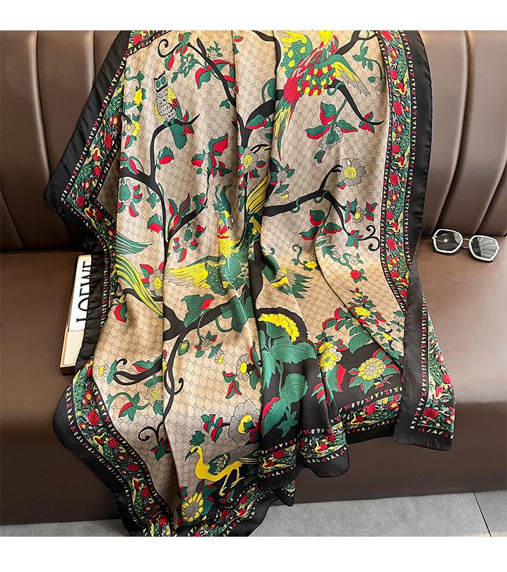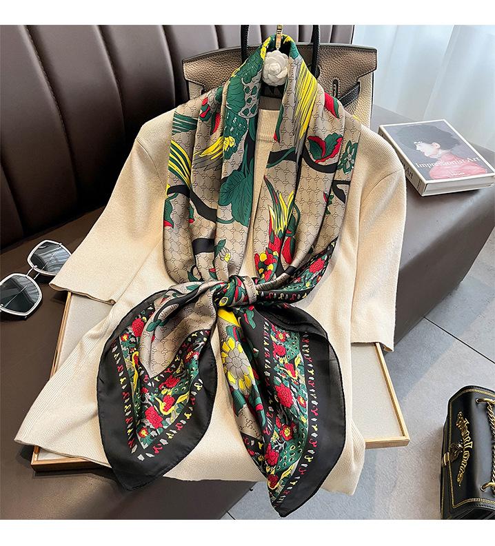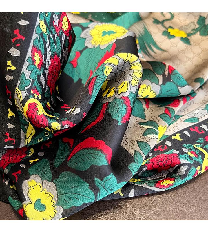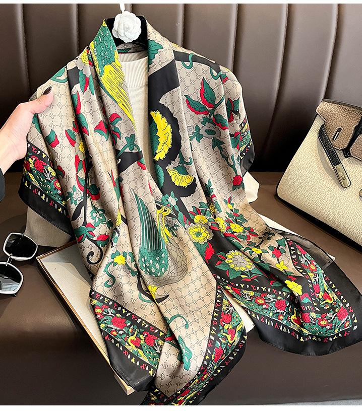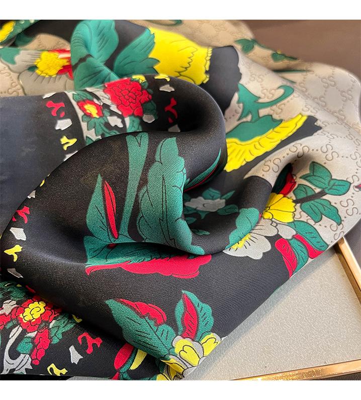 Bufanda chal de seda floral delgada de primavera y otoño estilo chino para mujer, bufanda cuadrada extragrande de 110, decoración versátil para madre