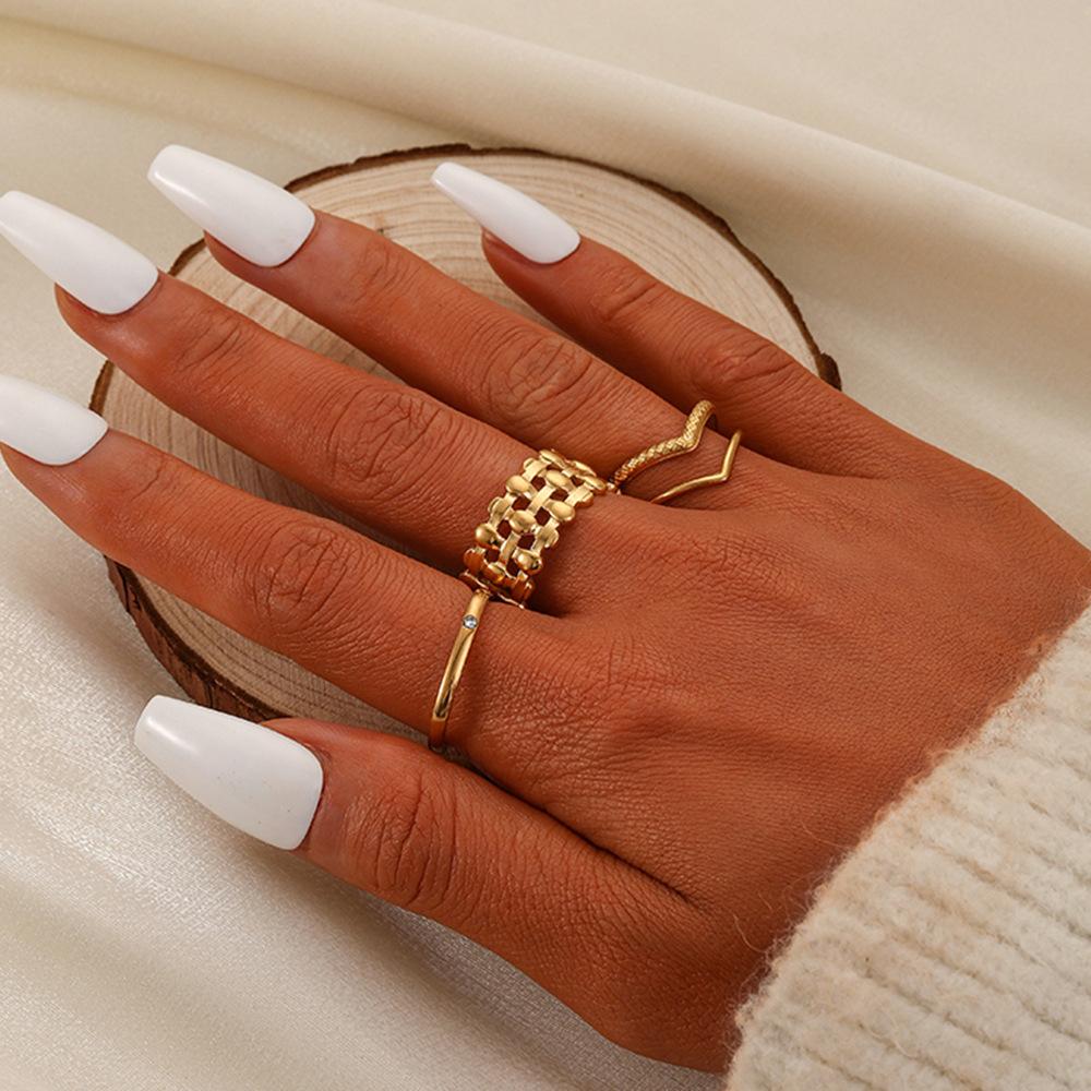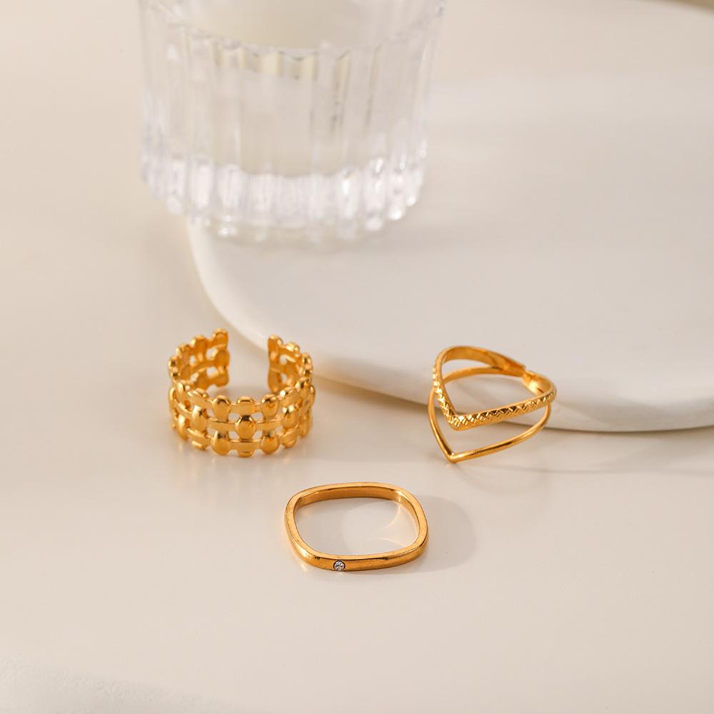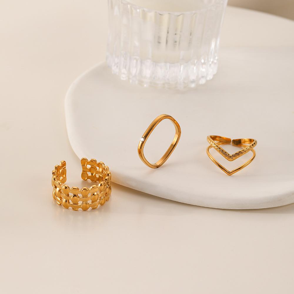 Anillo abierto cuadrado tejido en forma de V de acero inoxidable con nuevo diseño de moda europea y americana, anillo de traje, joyería femenina al por mayor