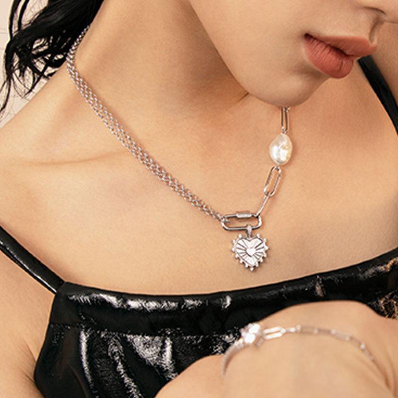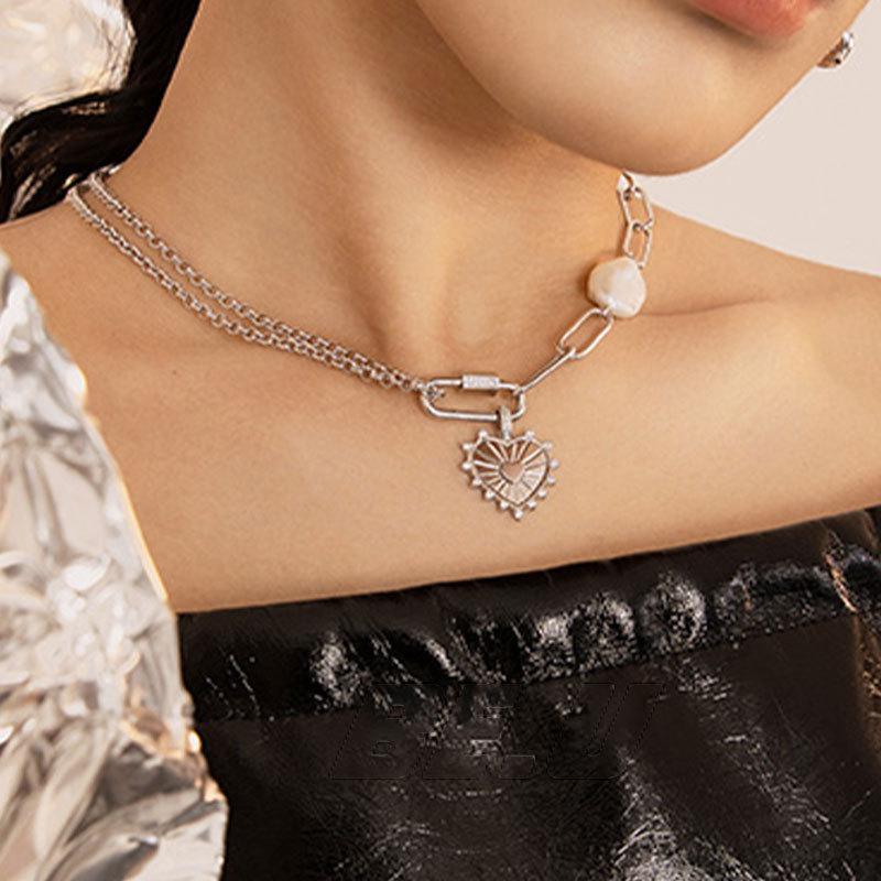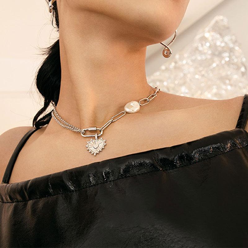 Collar con cadena de clavícula de estilo coreano, diseño de amor, novedad de 2021, de lujo, ligero y con costuras de perlas barrocas de nicho para mujer.