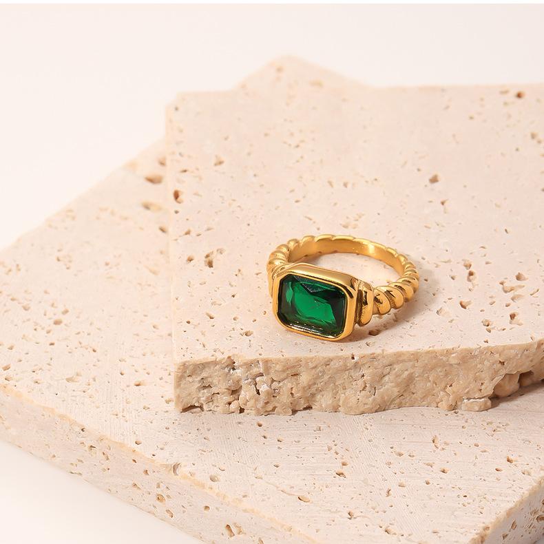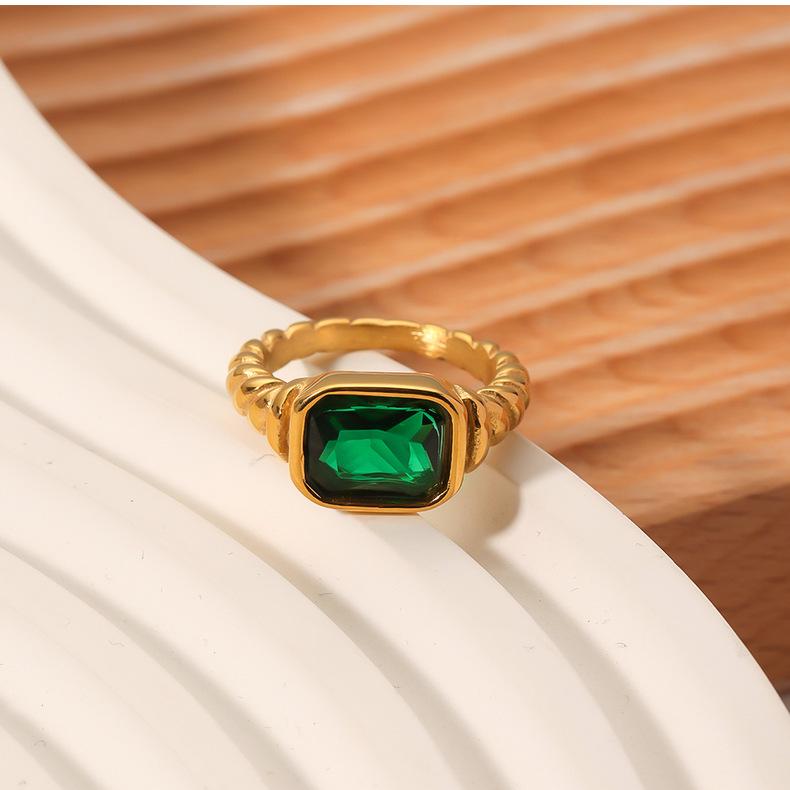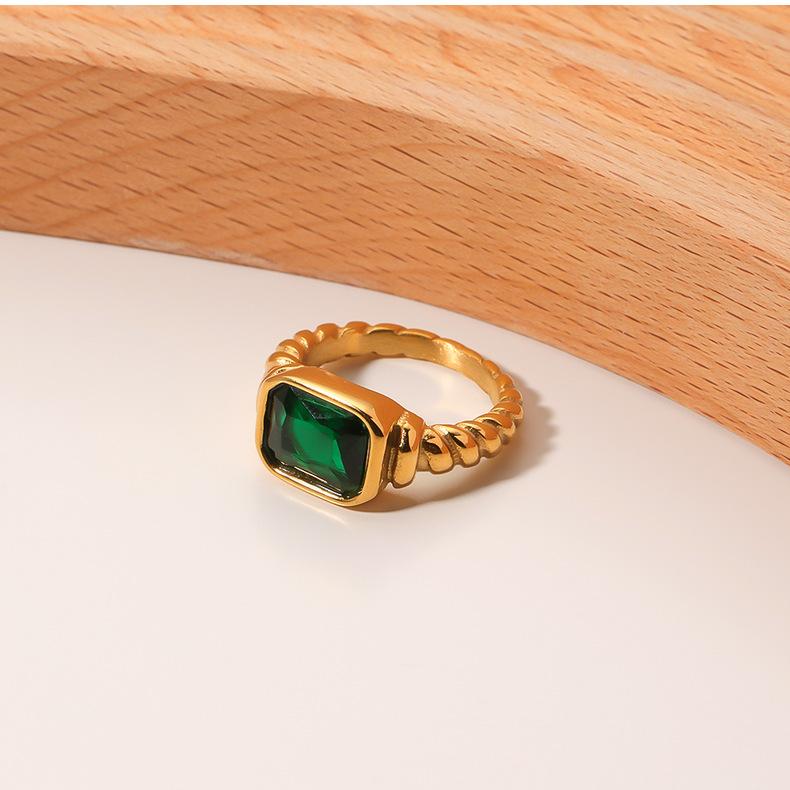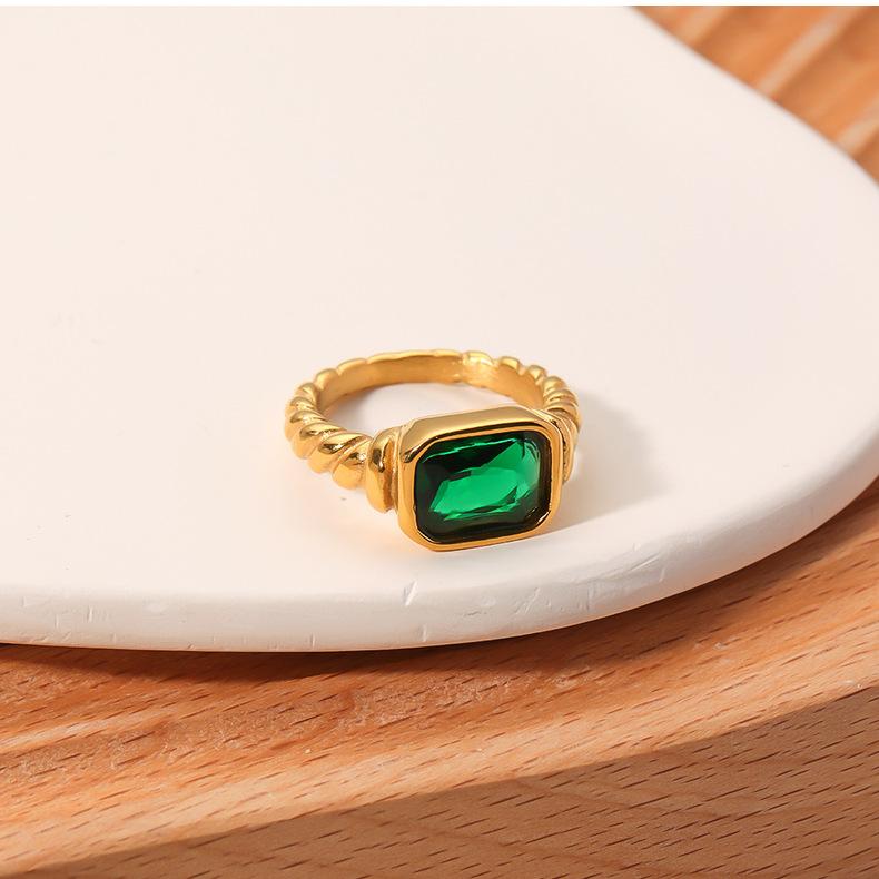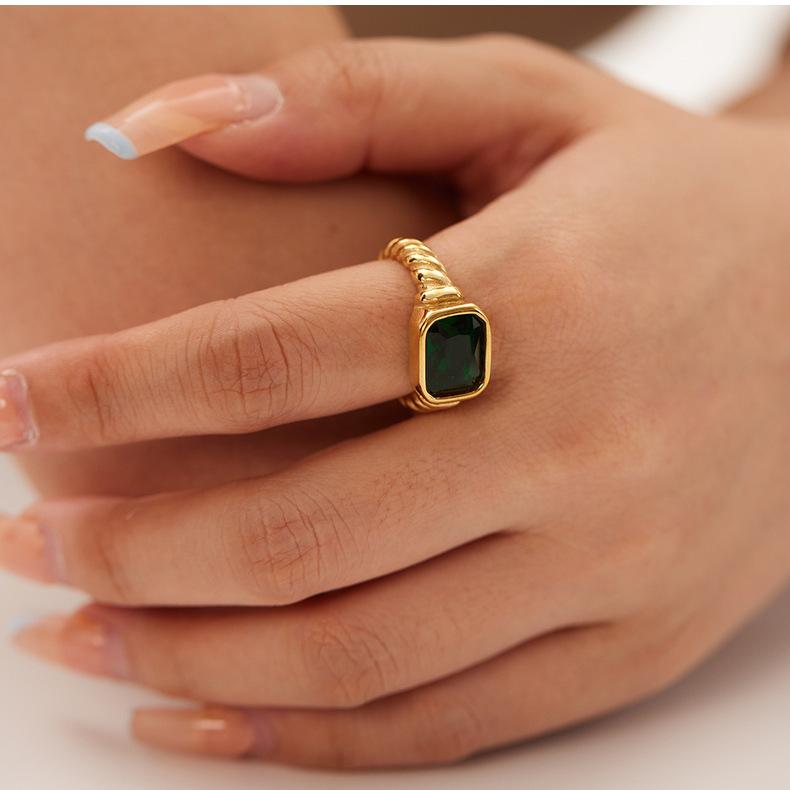 Anillo Europeo y Americano Ins Nuevo Nicho Lujo Accesible Esmeralda Diamante Anillo para Dedo Índice de Mujer Acero Inoxidable Chapado en Oro de 18K Joyería al Por Mayor