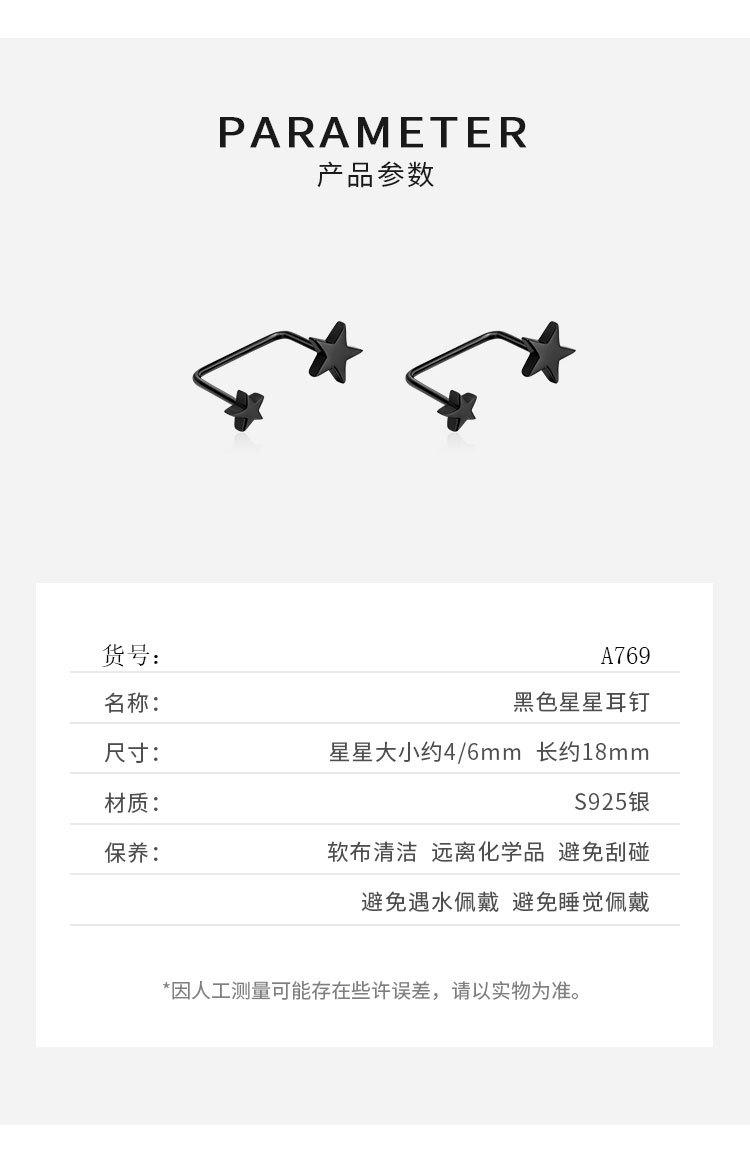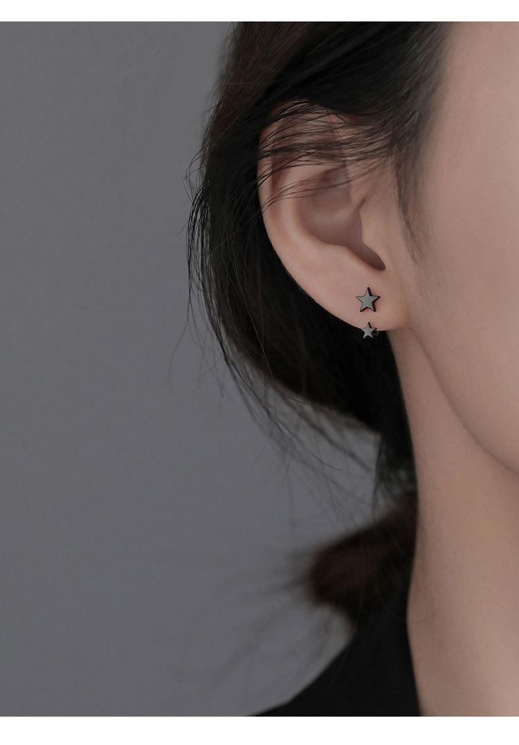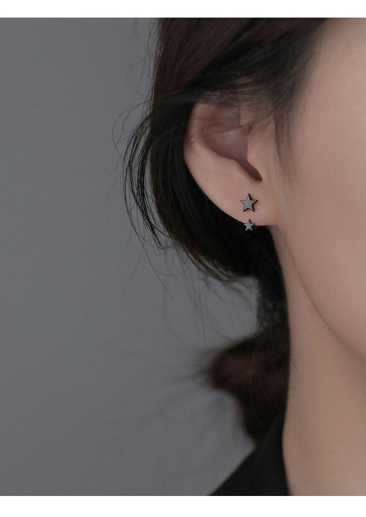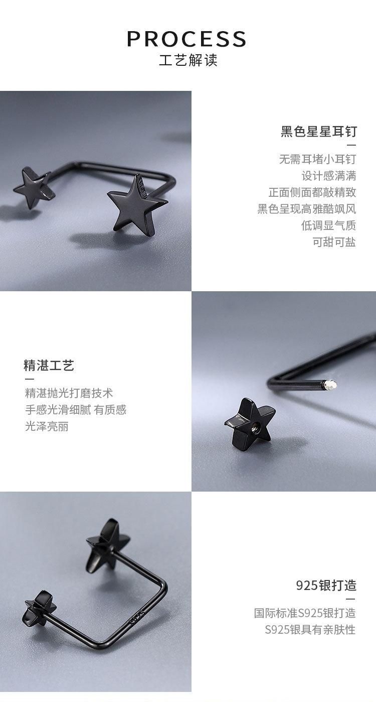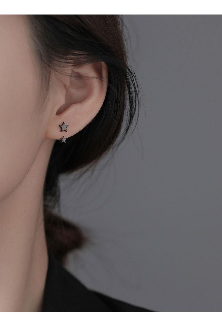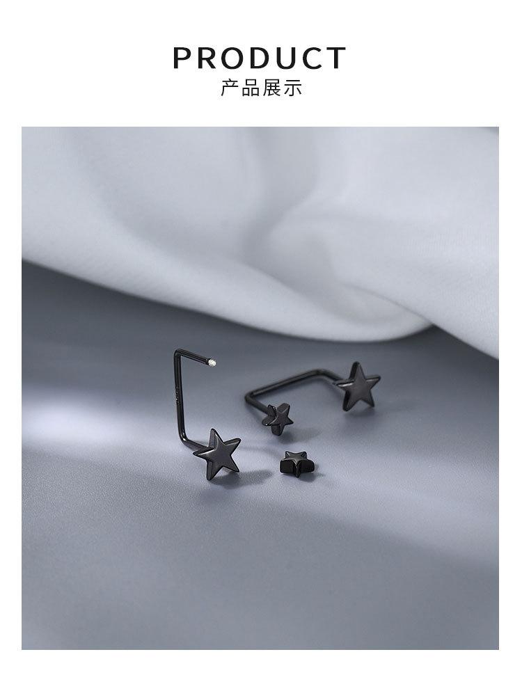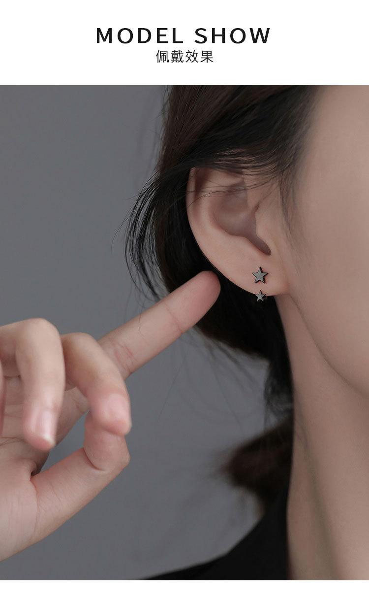Pendientes de plata de ley 925 con forma de estrella y tornillo, de estilo veraniego, de alta calidad y con diseño de estrella de cinco puntas, color negro, para mujer, al por mayor