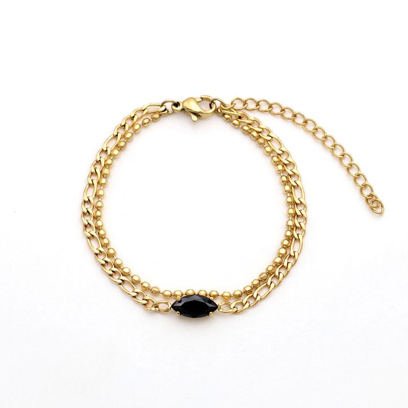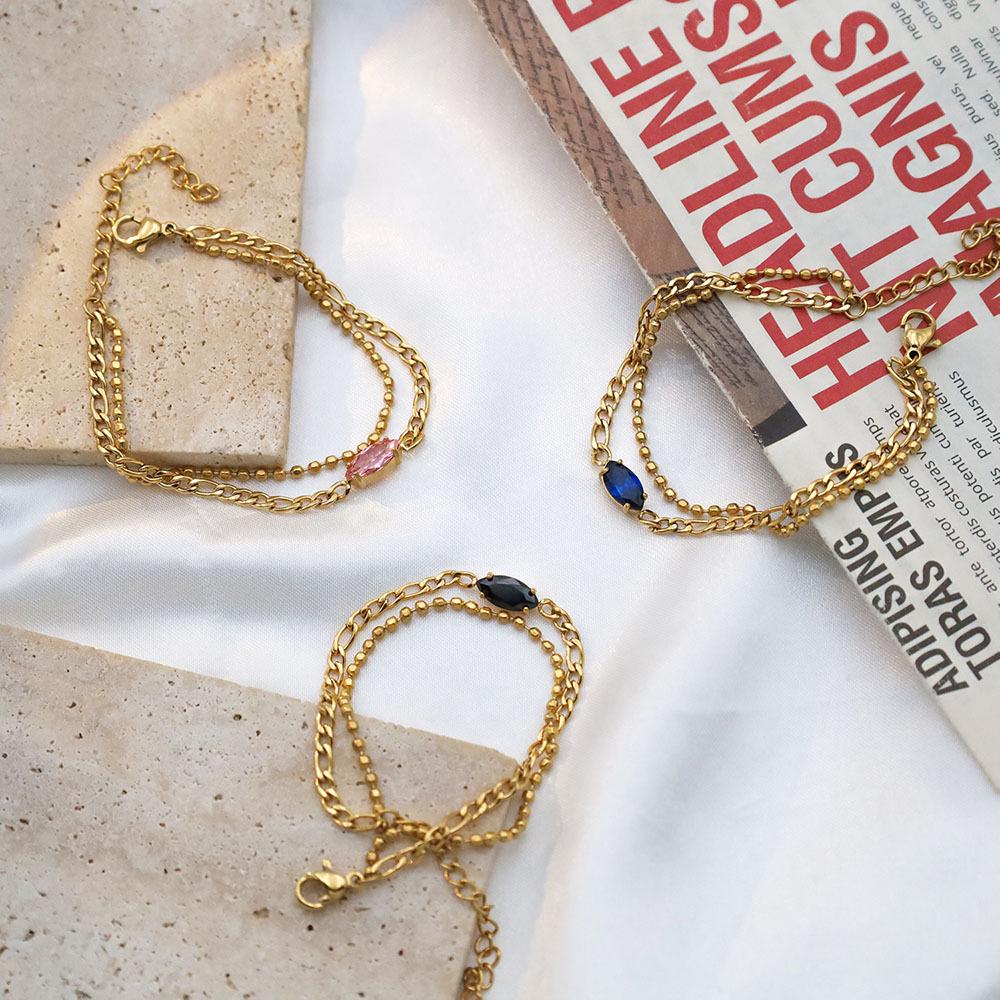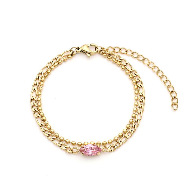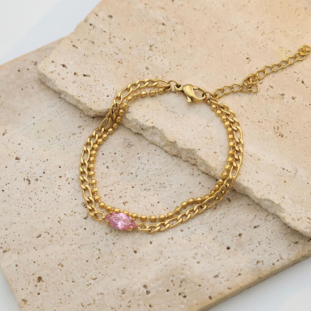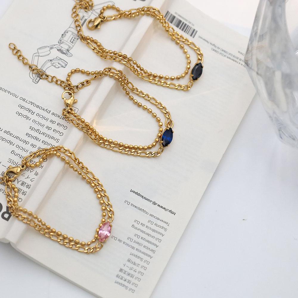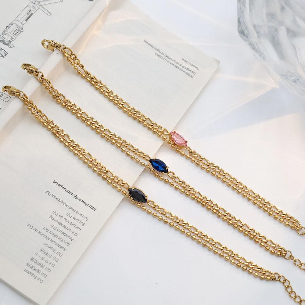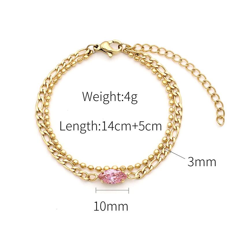 Pulsera de moda simple de doble cadena con diamantes de circonio para niñas, exquisita, de alta calidad, joyería al por mayor de acero de titanio 18k