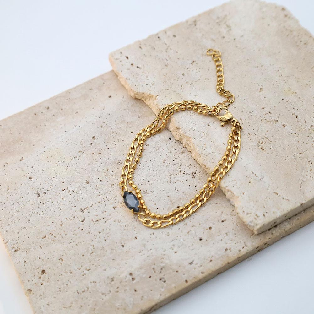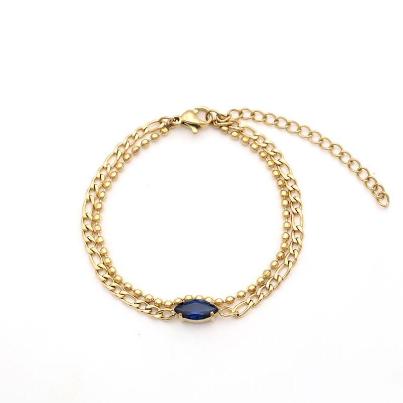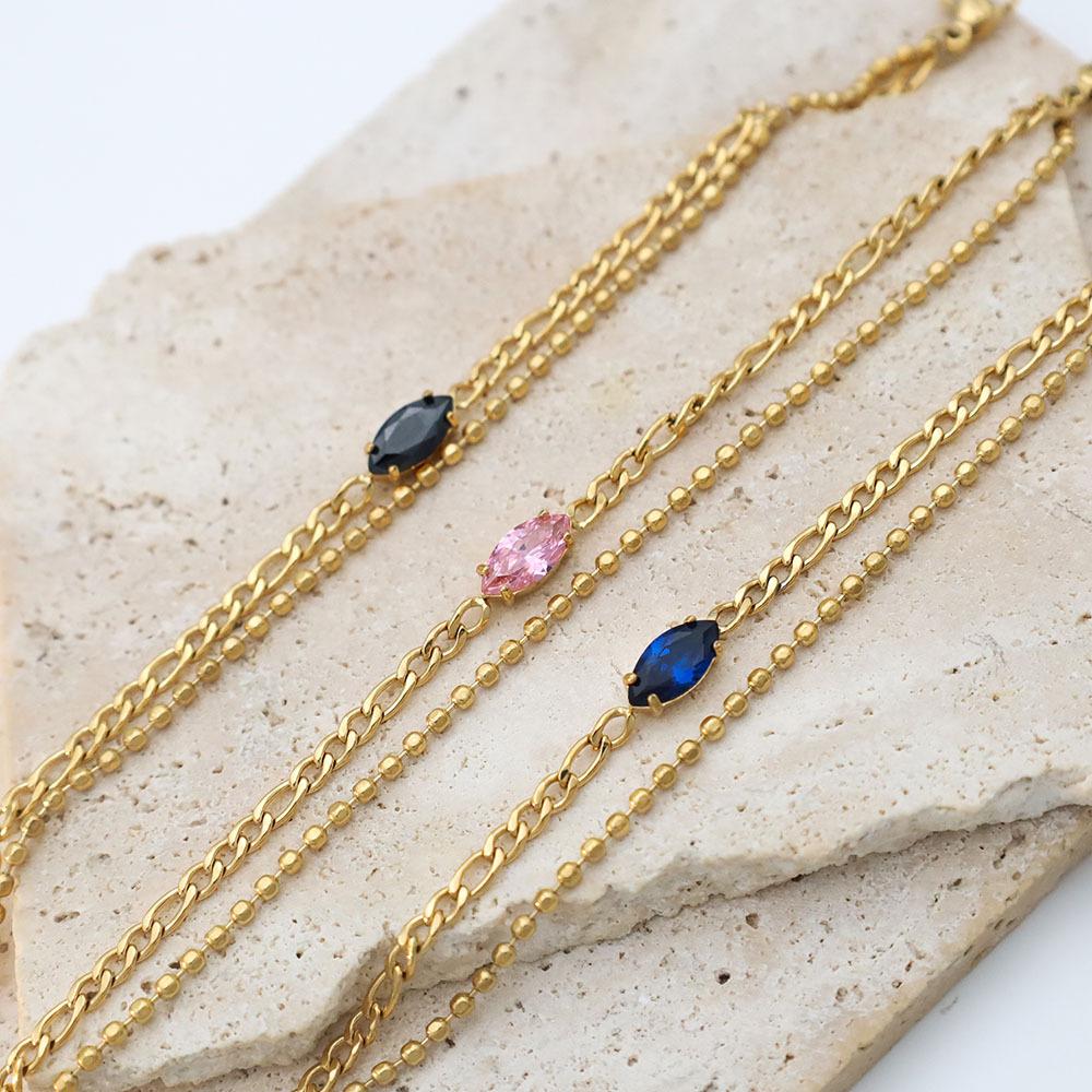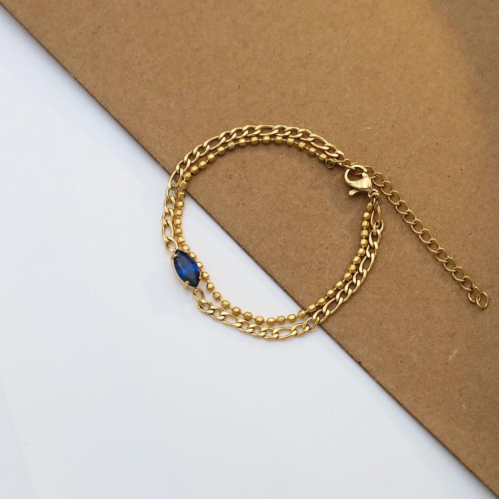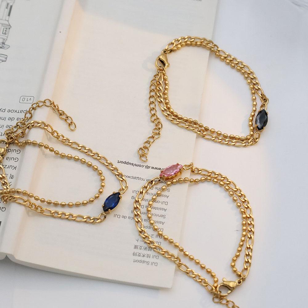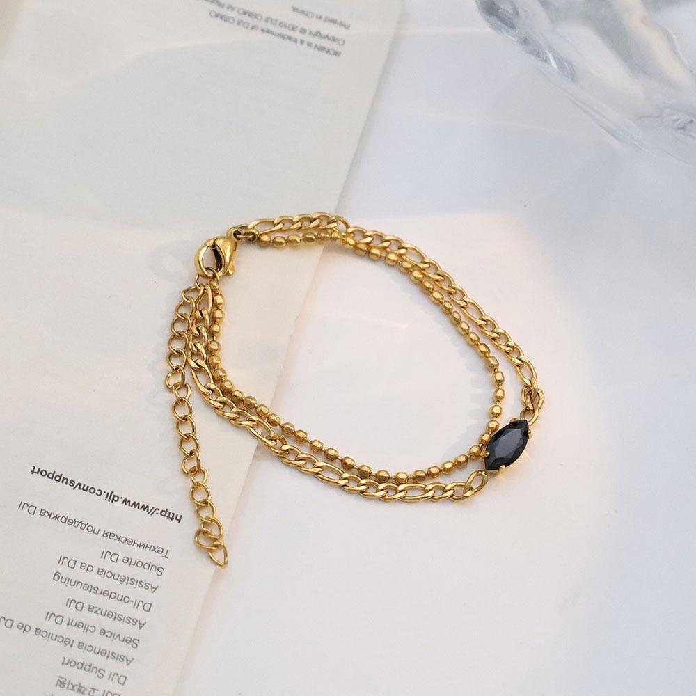 Pulsera de moda simple de doble cadena con diamantes de circonio para niñas, exquisita, de alta calidad, joyería al por mayor de acero de titanio 18k