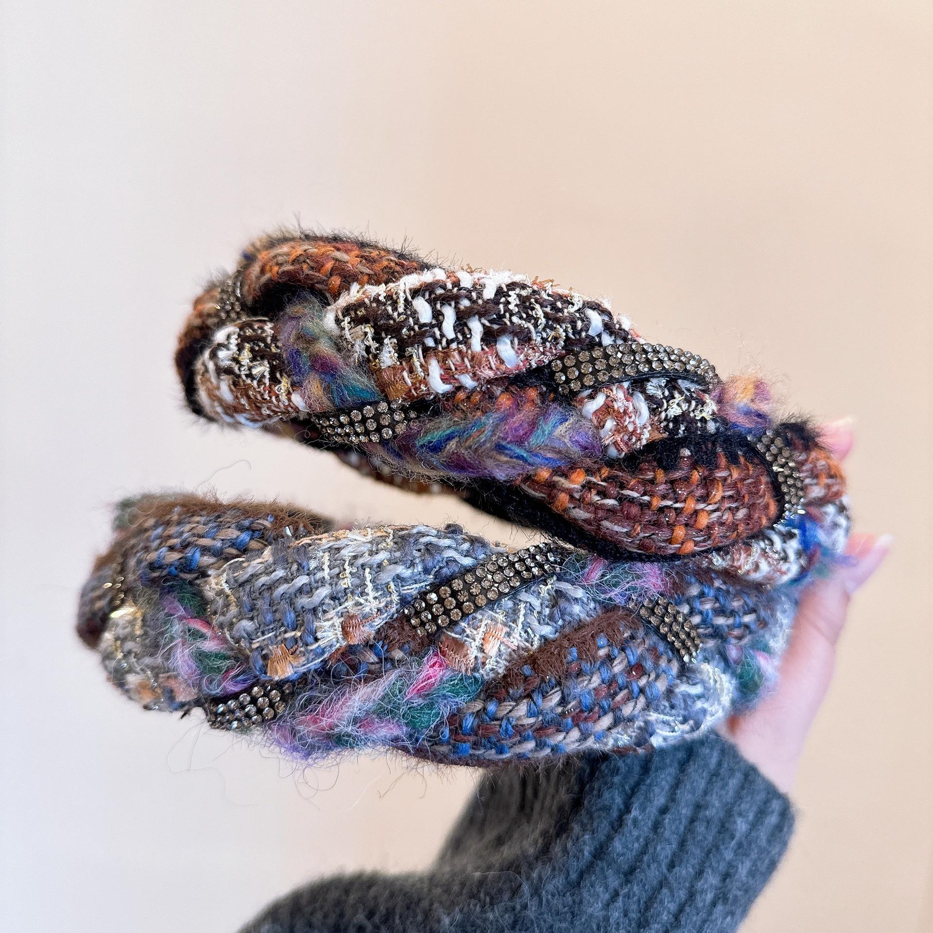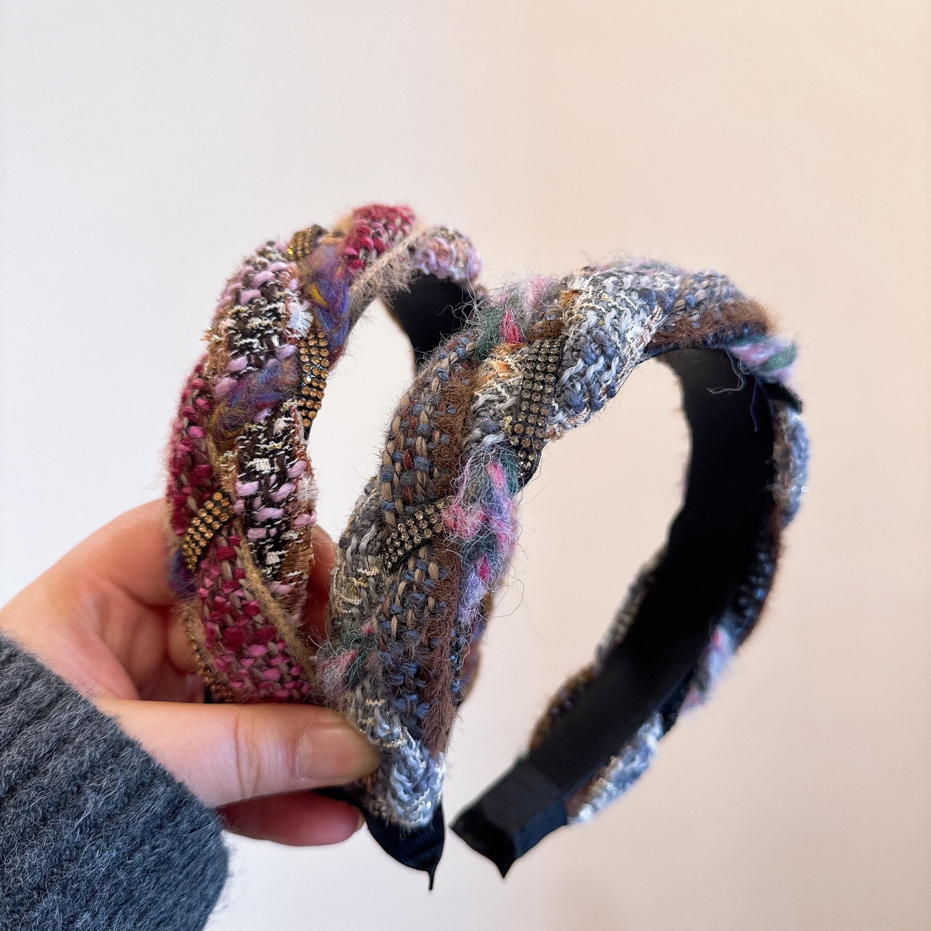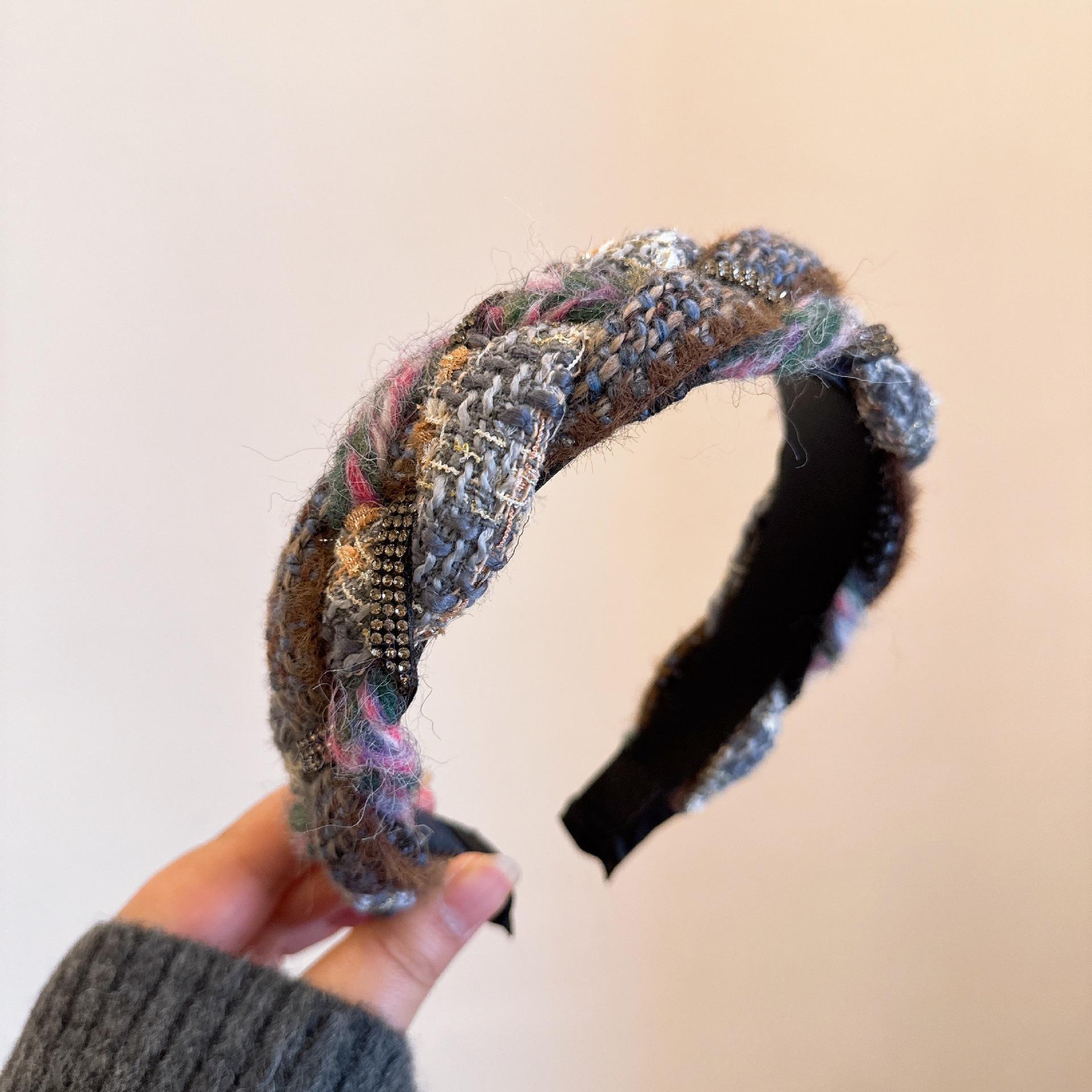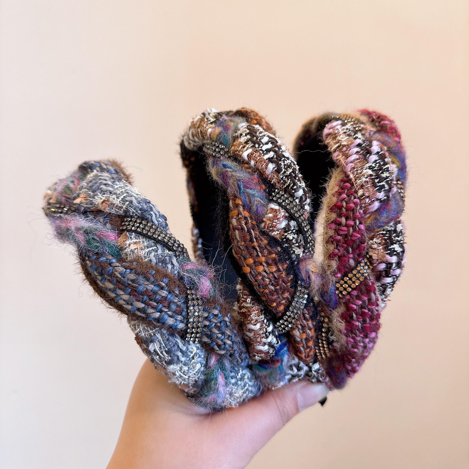 [Xiaoxiangfeng kroea] ¡Versión coreana! Elegante diadema tejida trenzada de cachemira mixta con pedrería de colores combinables
