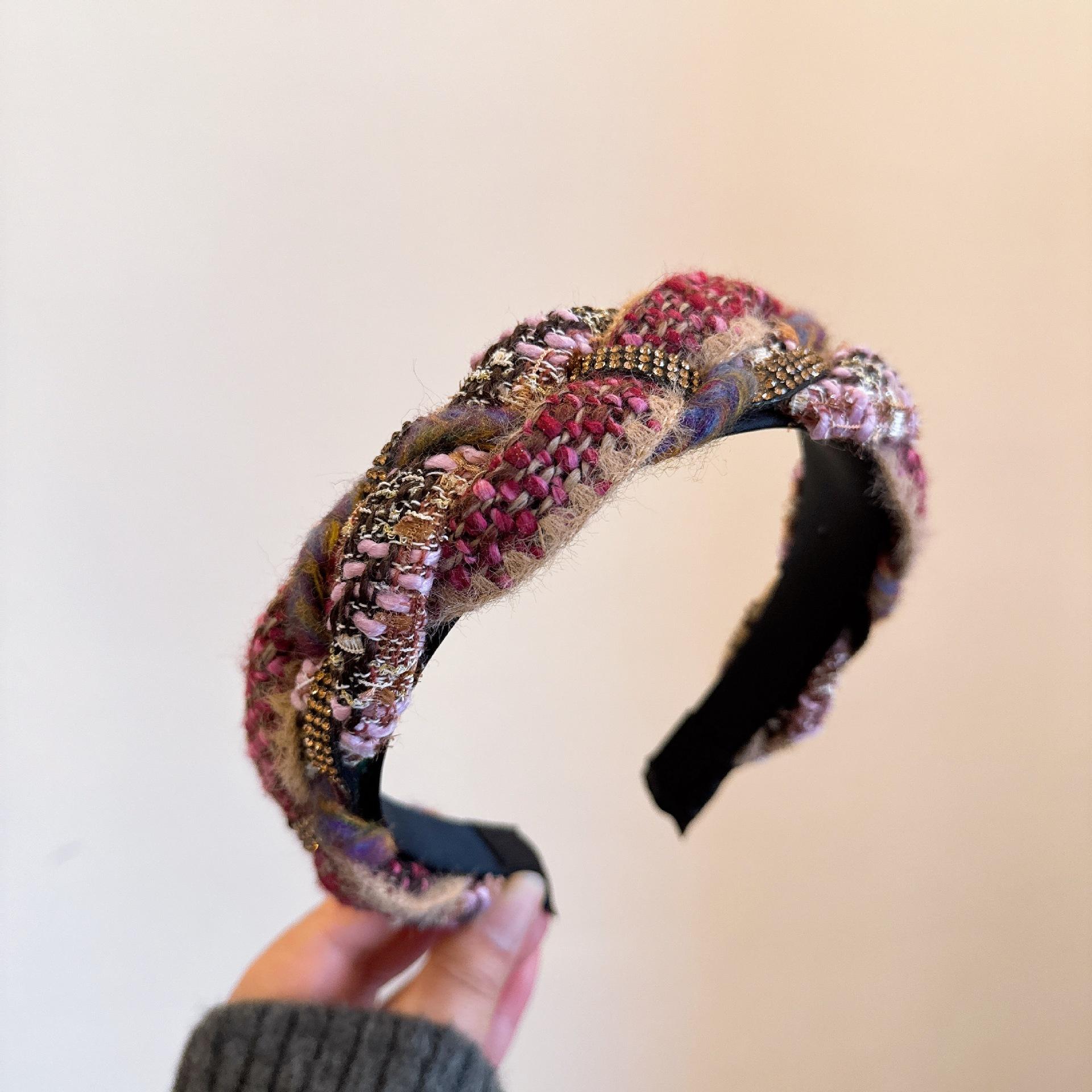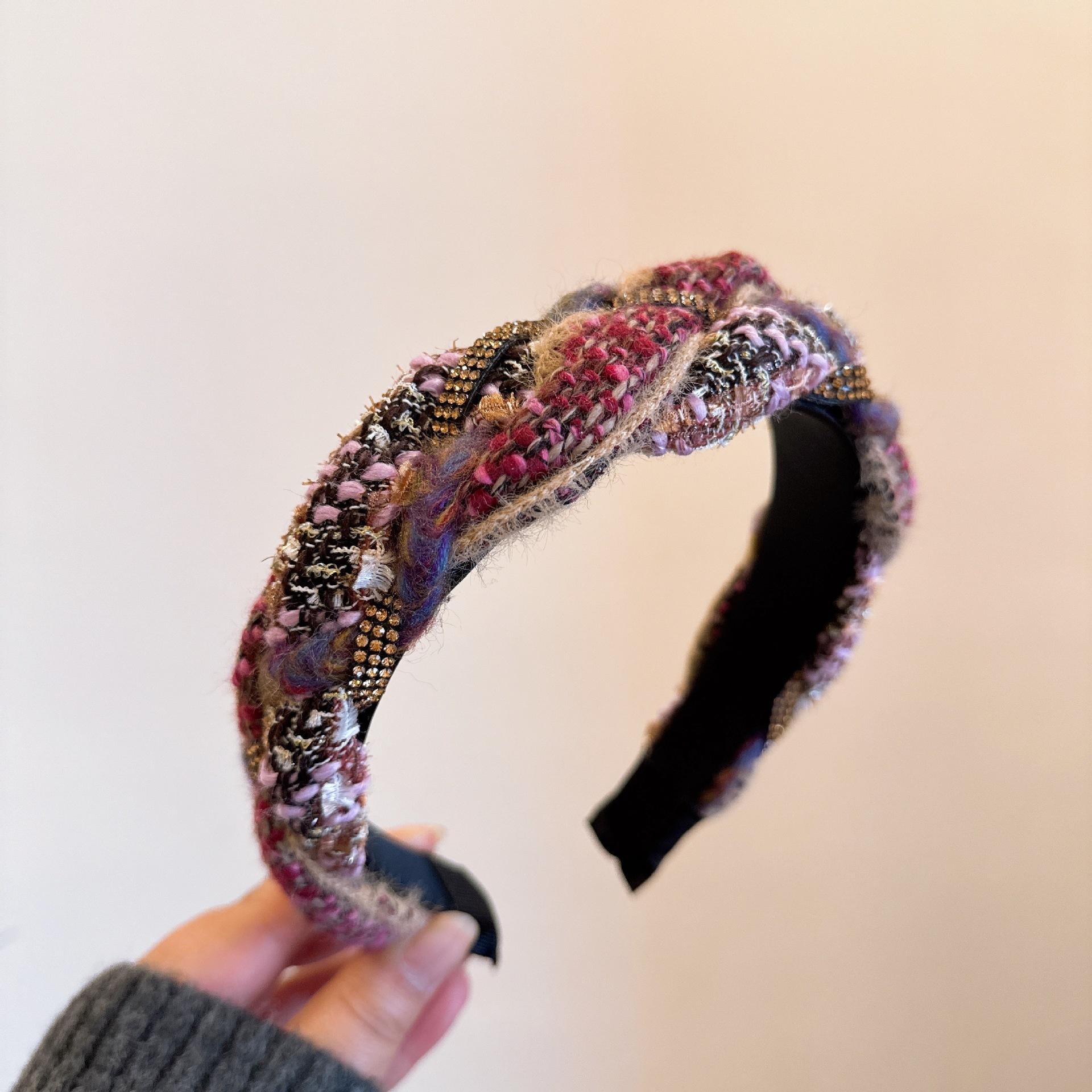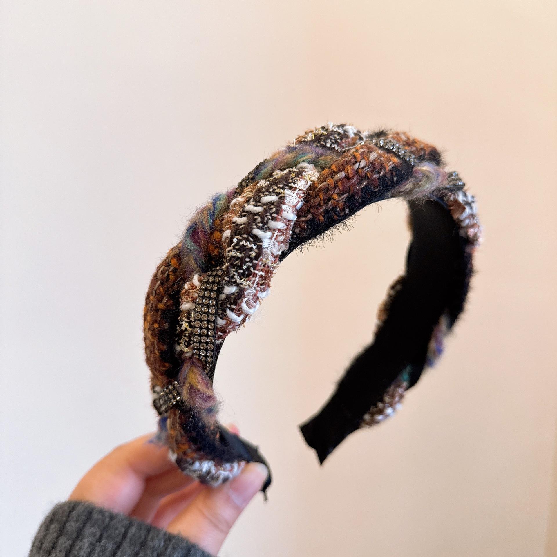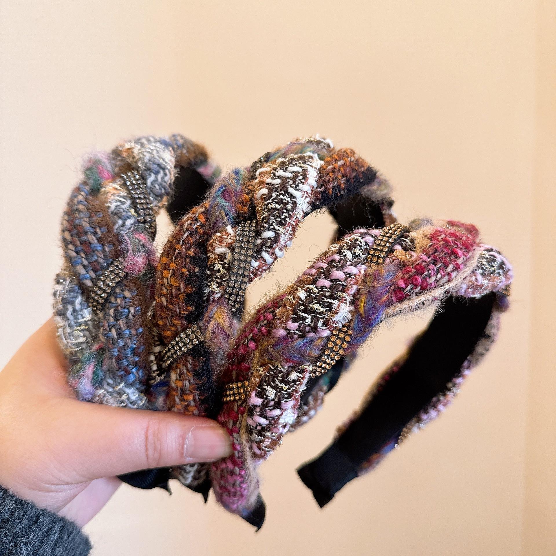[Xiaoxiangfeng kroea] ¡Versión coreana! Elegante diadema tejida trenzada de cachemira mixta con pedrería de colores combinables