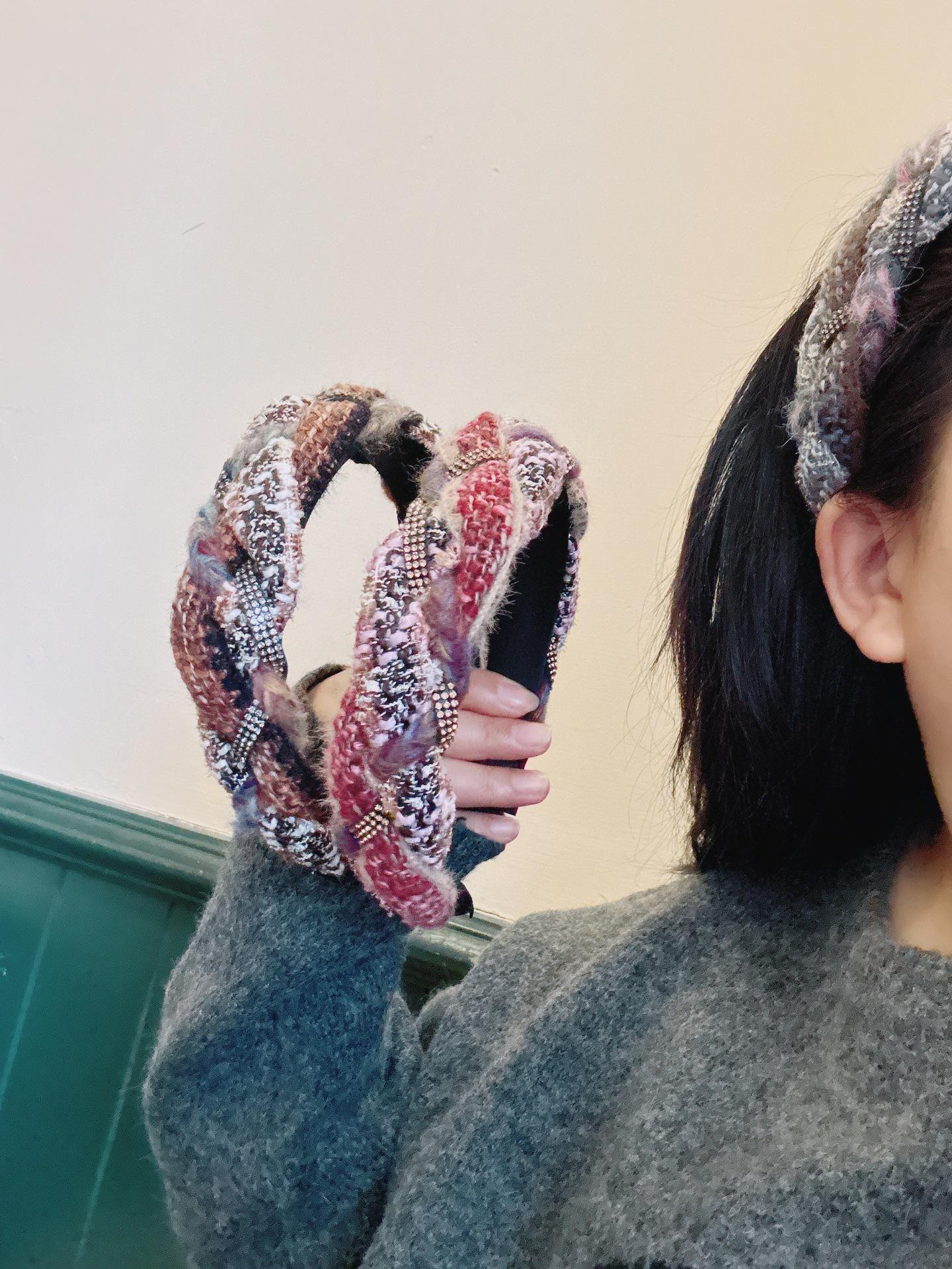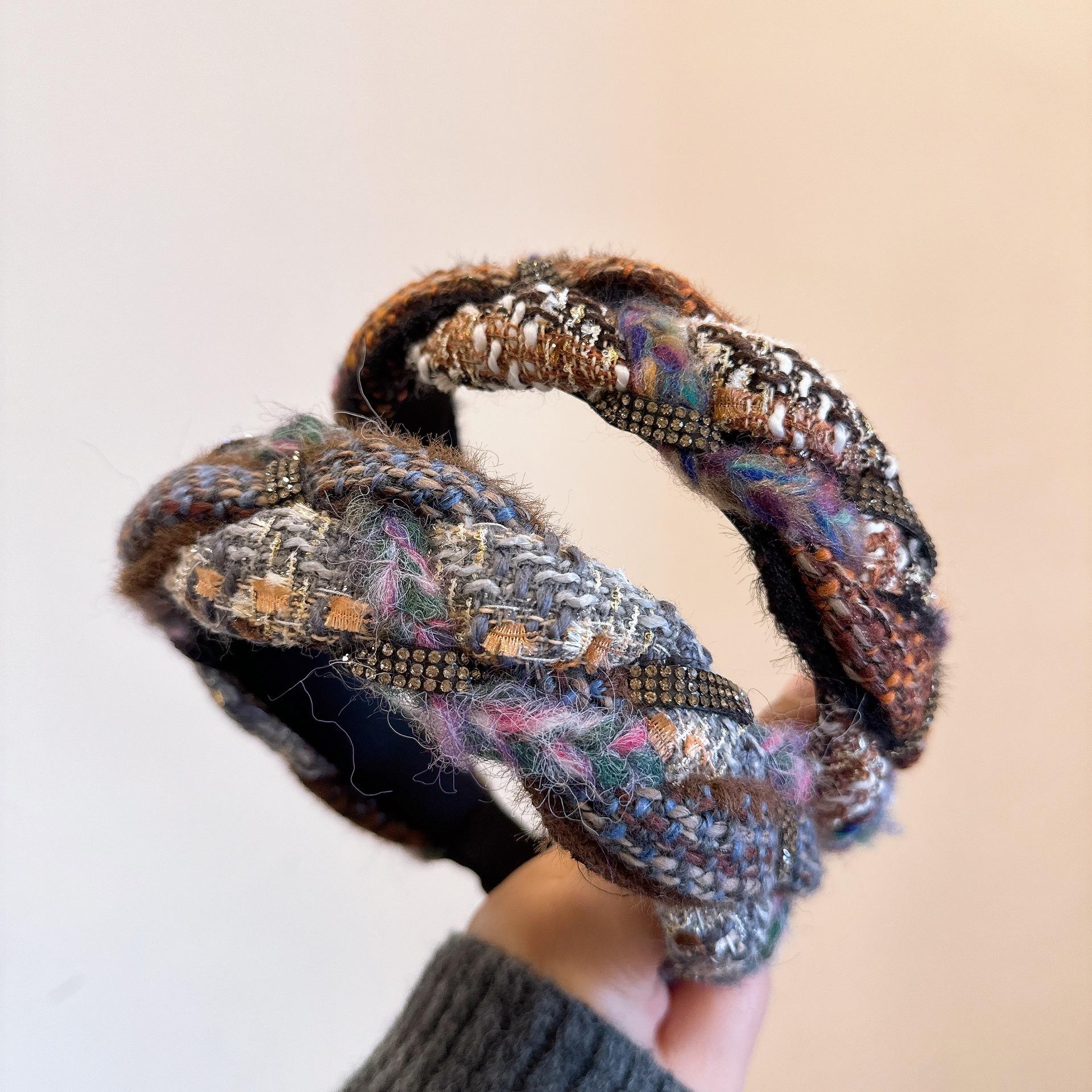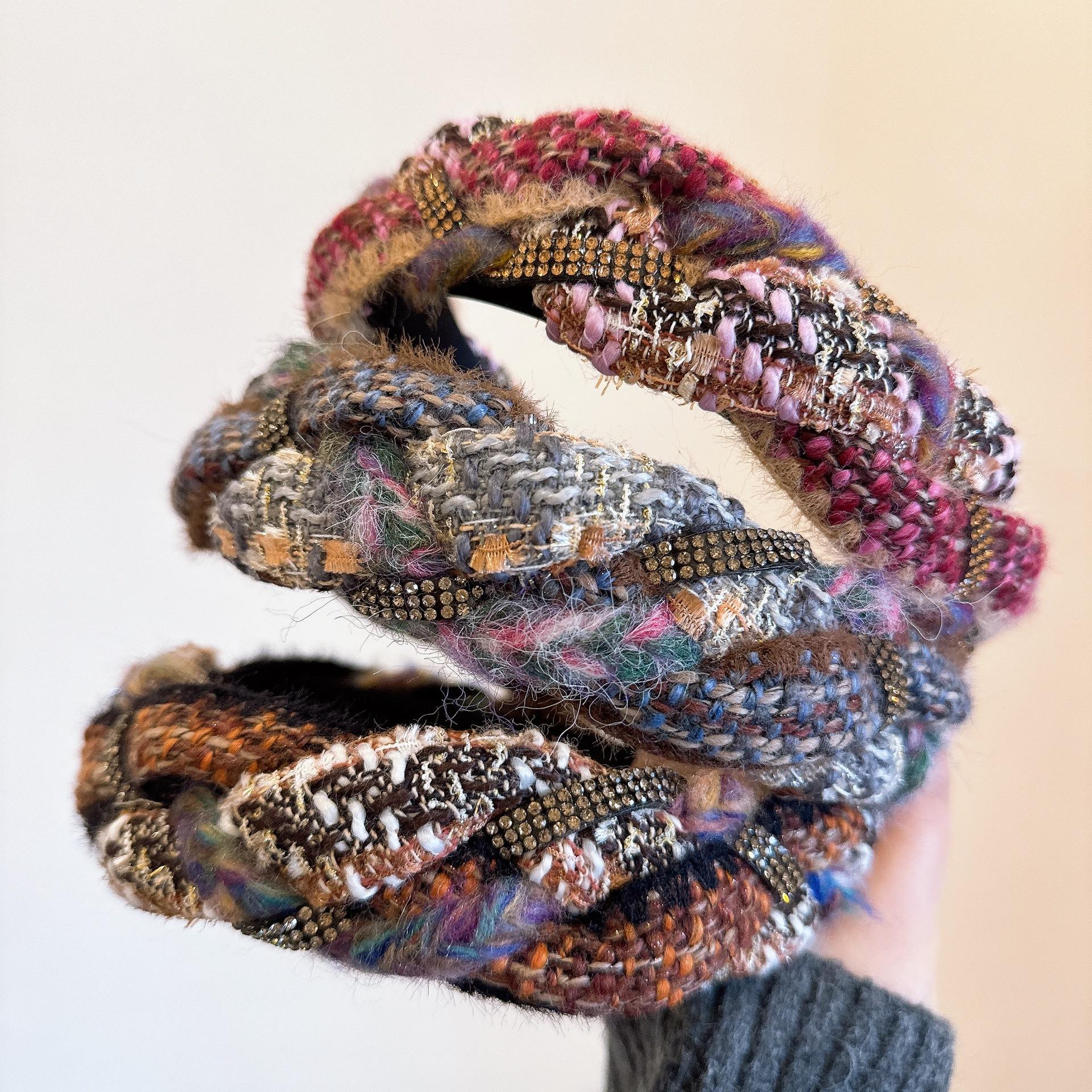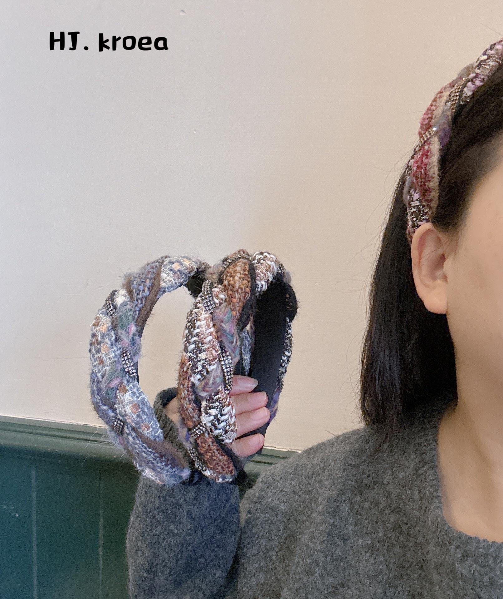 [Xiaoxiangfeng kroea] ¡Versión coreana! Elegante diadema tejida trenzada de cachemira mixta con pedrería de colores combinables