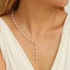 Nuevo collar bohemio transfronterizo de moda retro asimétrico en forma de Y para mujer, collar sencillo de perlas de imitación de alta calidad