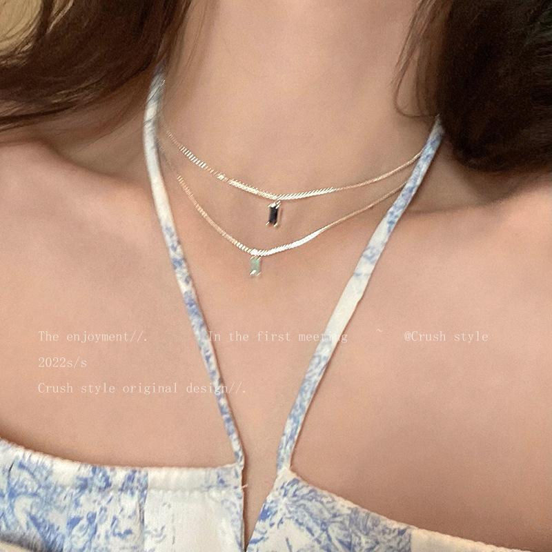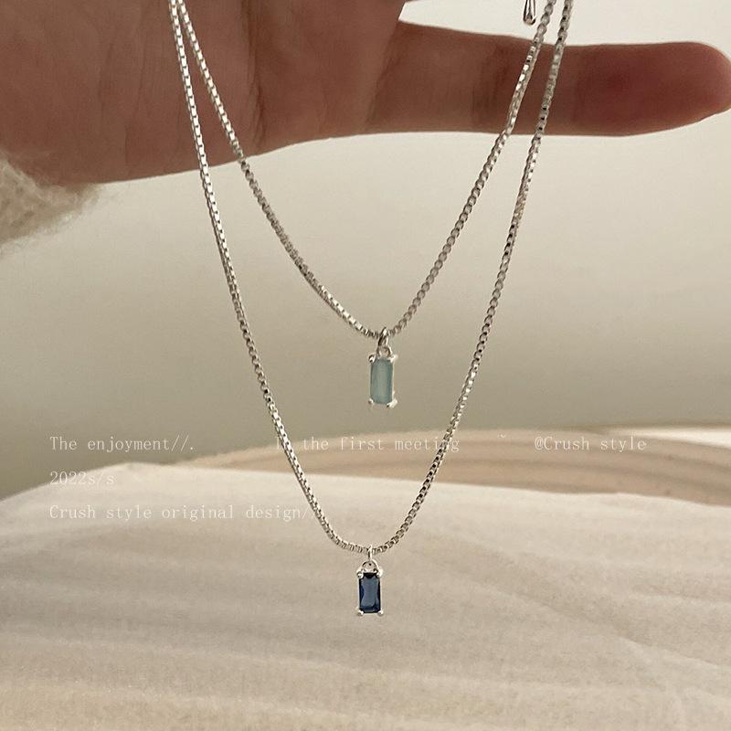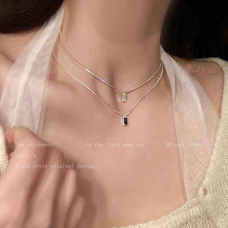 Collar con colgante de circonita cuadrada de lujo ligero para mujer, doble capa, accesorio de moda para todo tipo de ocasiones, cadena de clavícula con diseño moderno.