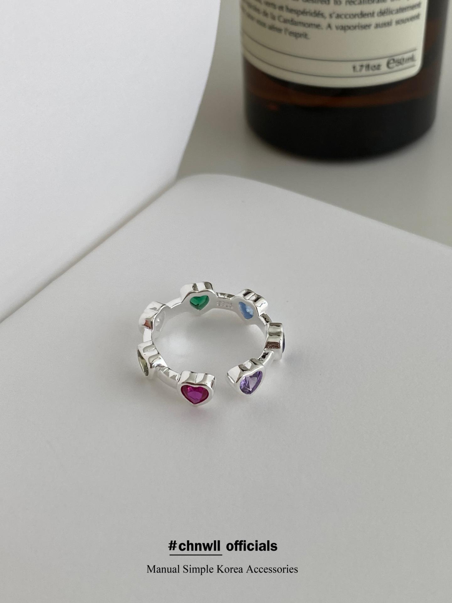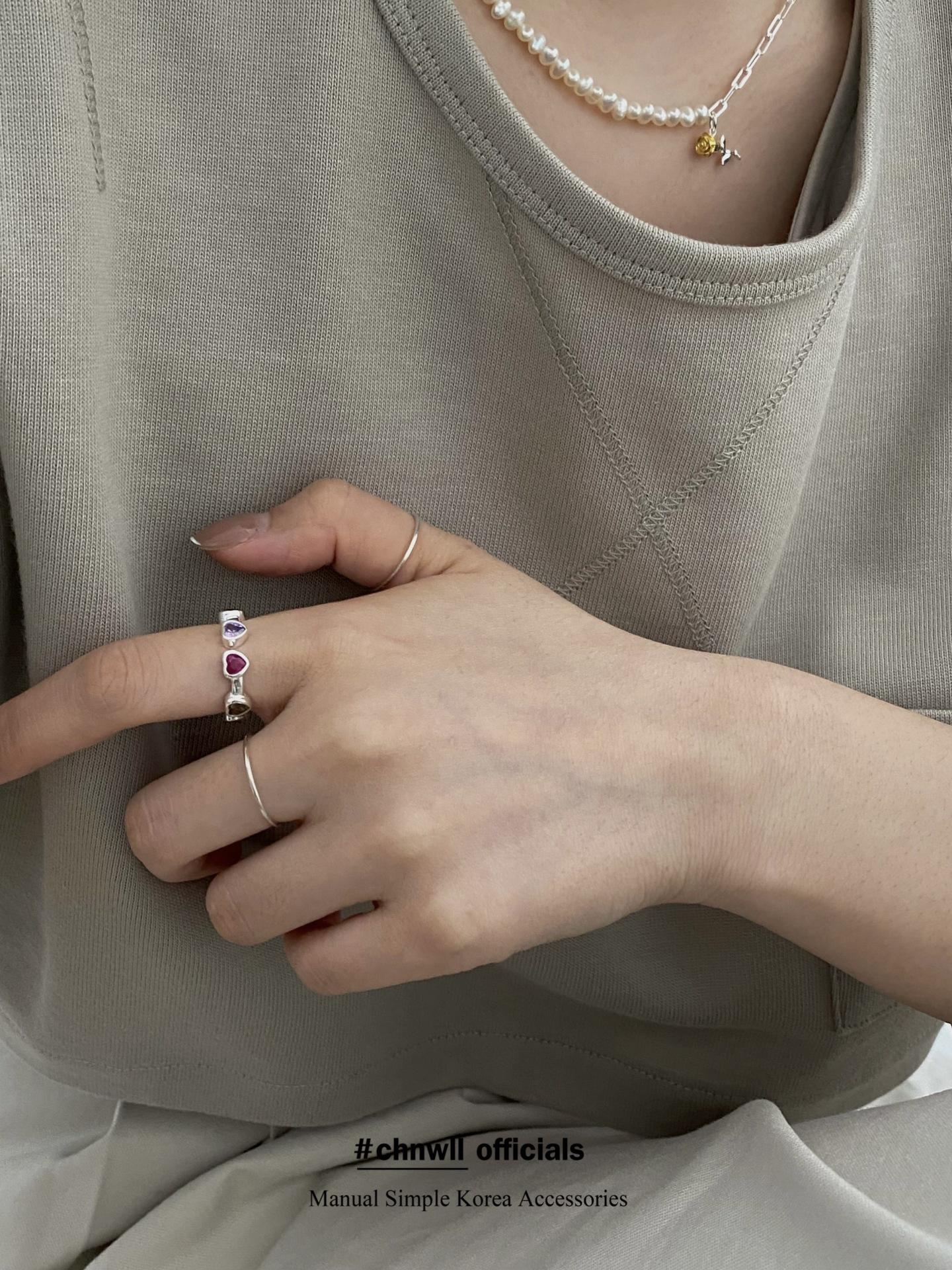 Anillo Color Amor para Mujer Estilo Coreano Moda Elegante Nicho Ins Plata S925 Anillo Abierto Distintivo Anillo de Dedo Trendy