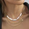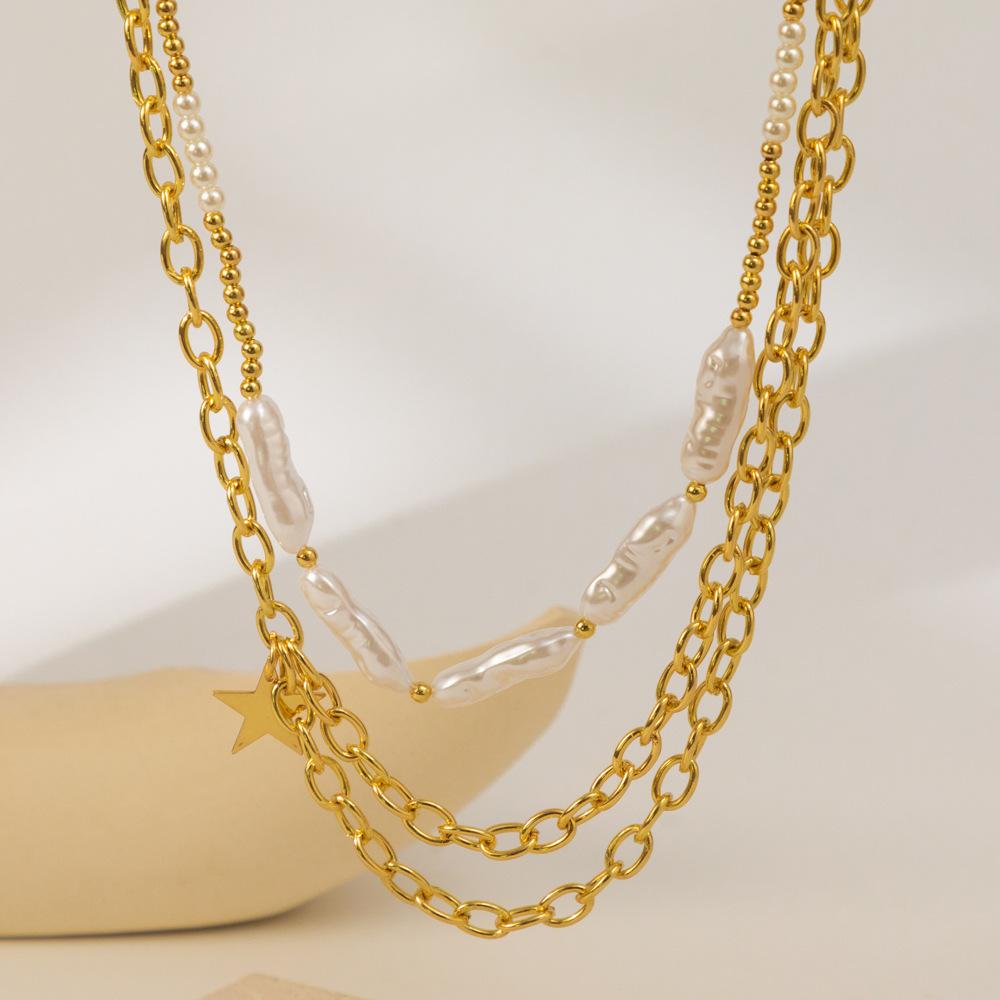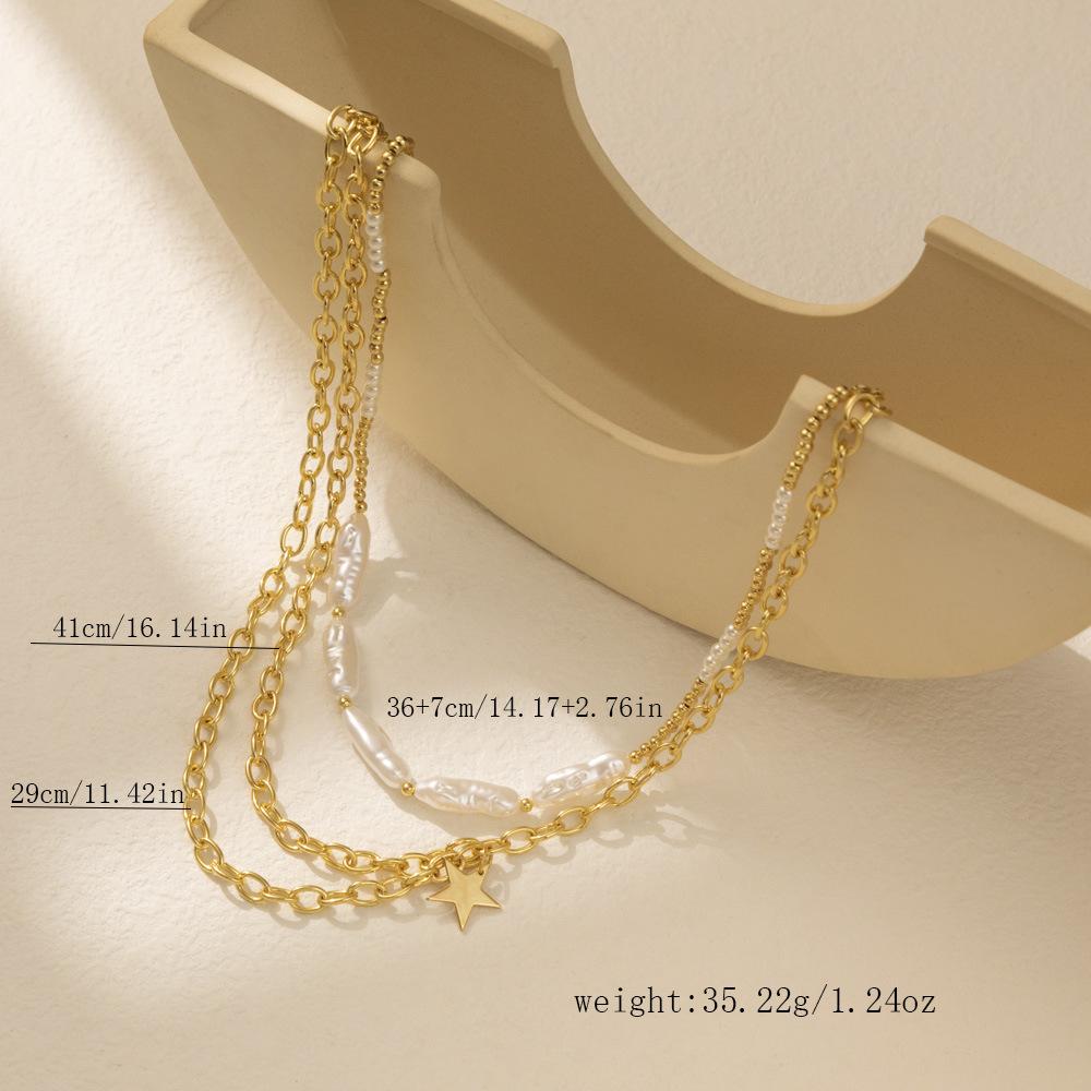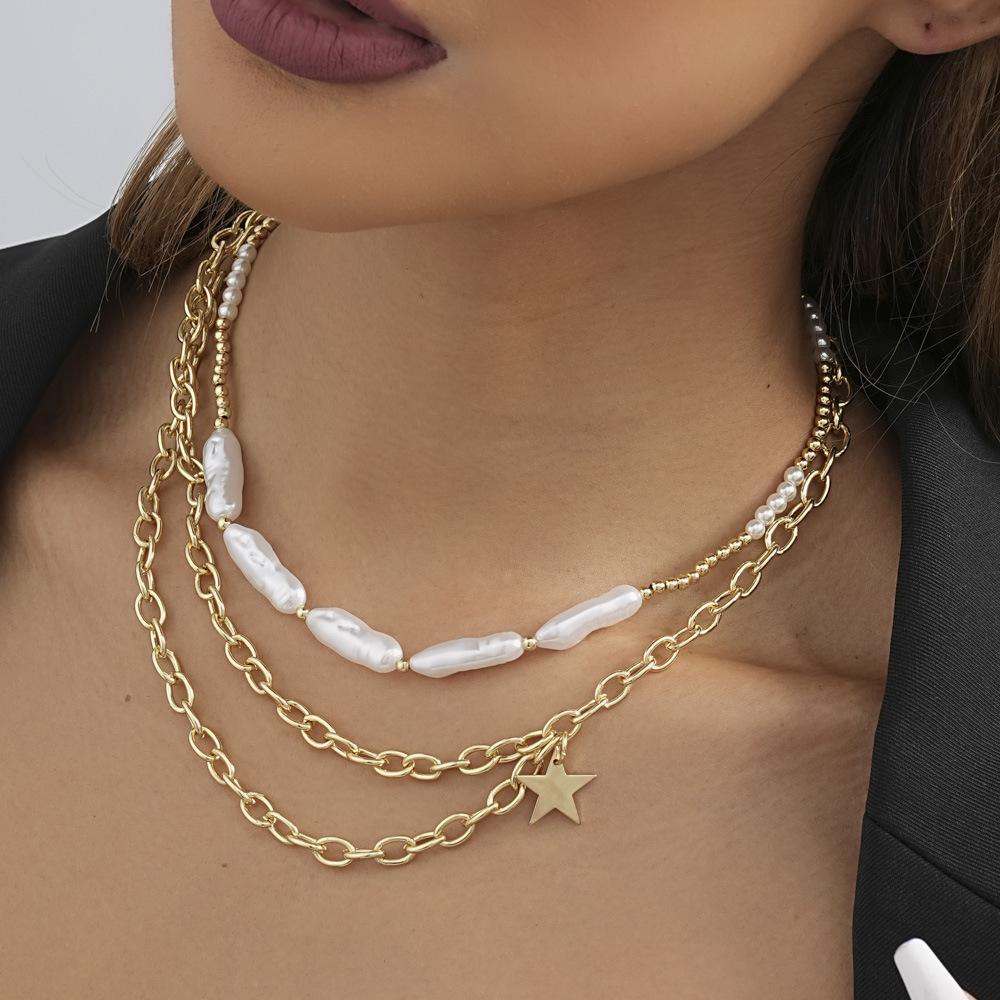 Collar de estrella de tres capas, versátil, creativo y transfronterizo europeo y americano 2023, collar de perlas de imitación multicapa simple para mujer
