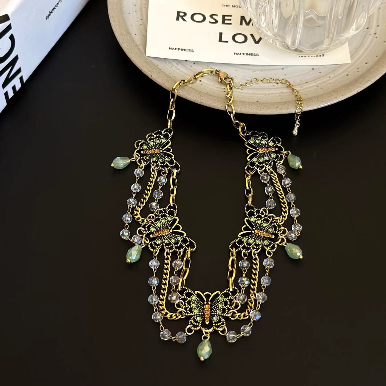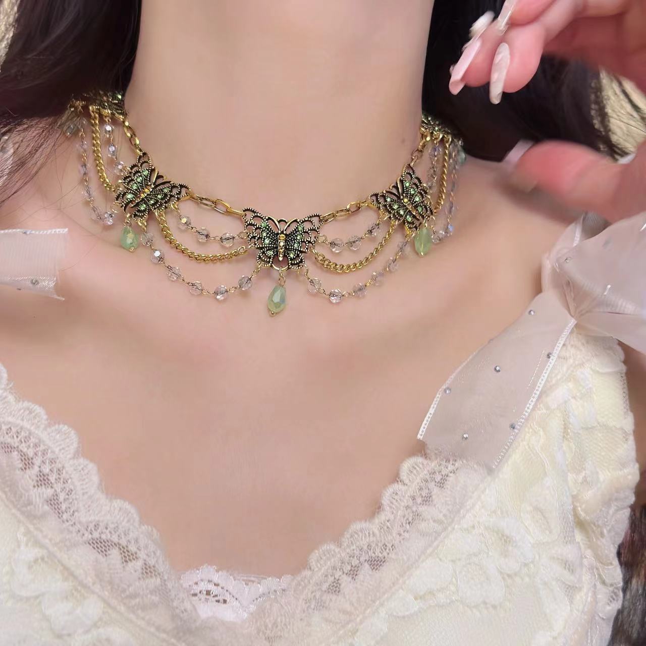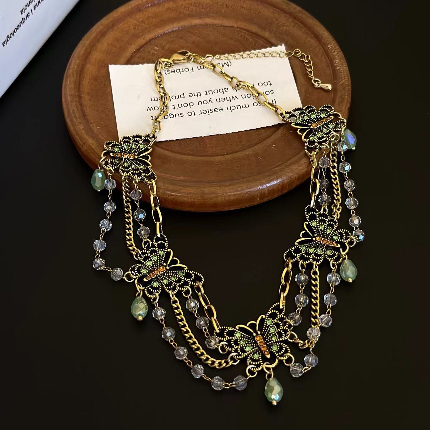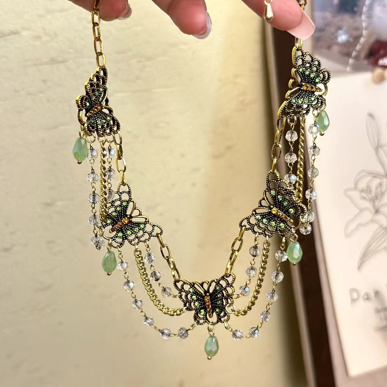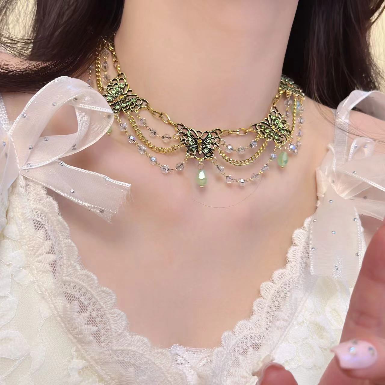 Nuevo Collar de Borlas Multicapa de Diamantes Mariposa de Industria Pesada Estilo Chino para Mujer Nicho Textura de Alta Gama Cadena Clavicular Joyería Tendencia