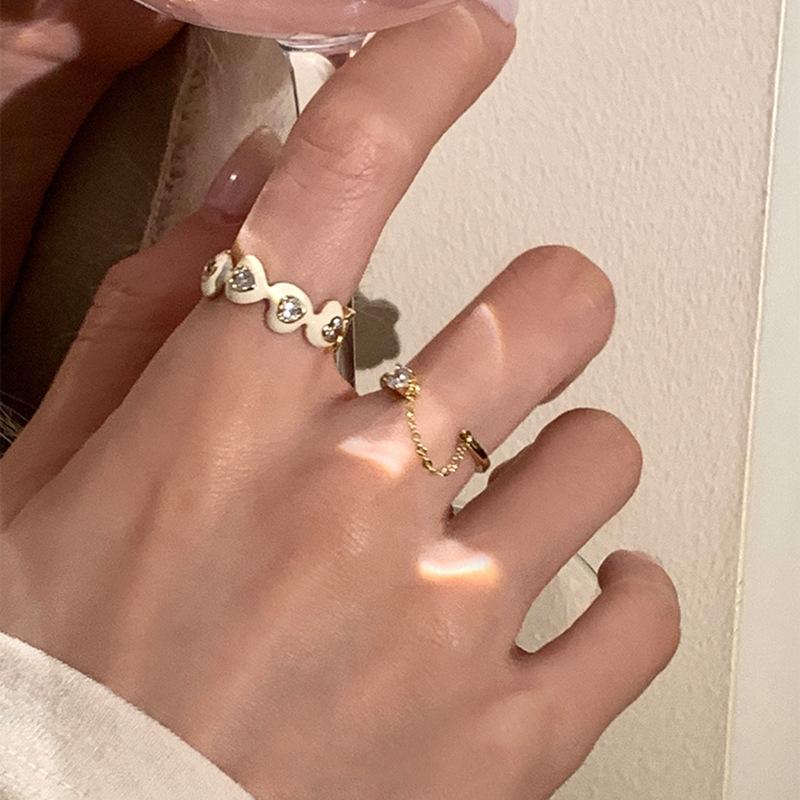 Anillo de cadena con diamantes de imitación para mujer, nuevo estilo 2023, moderno, combinable, sencillo, con diseño de nicho y un toque de estilo.