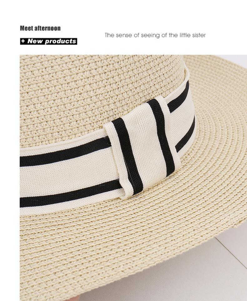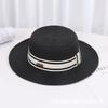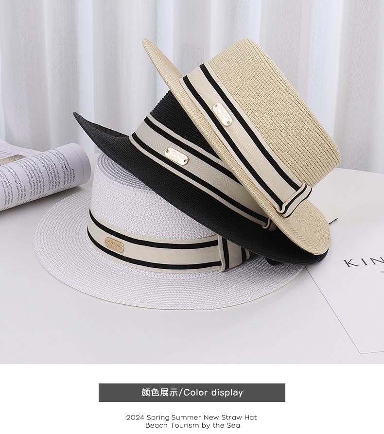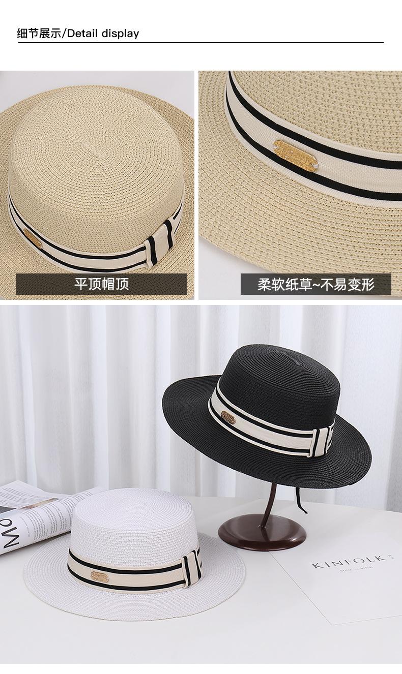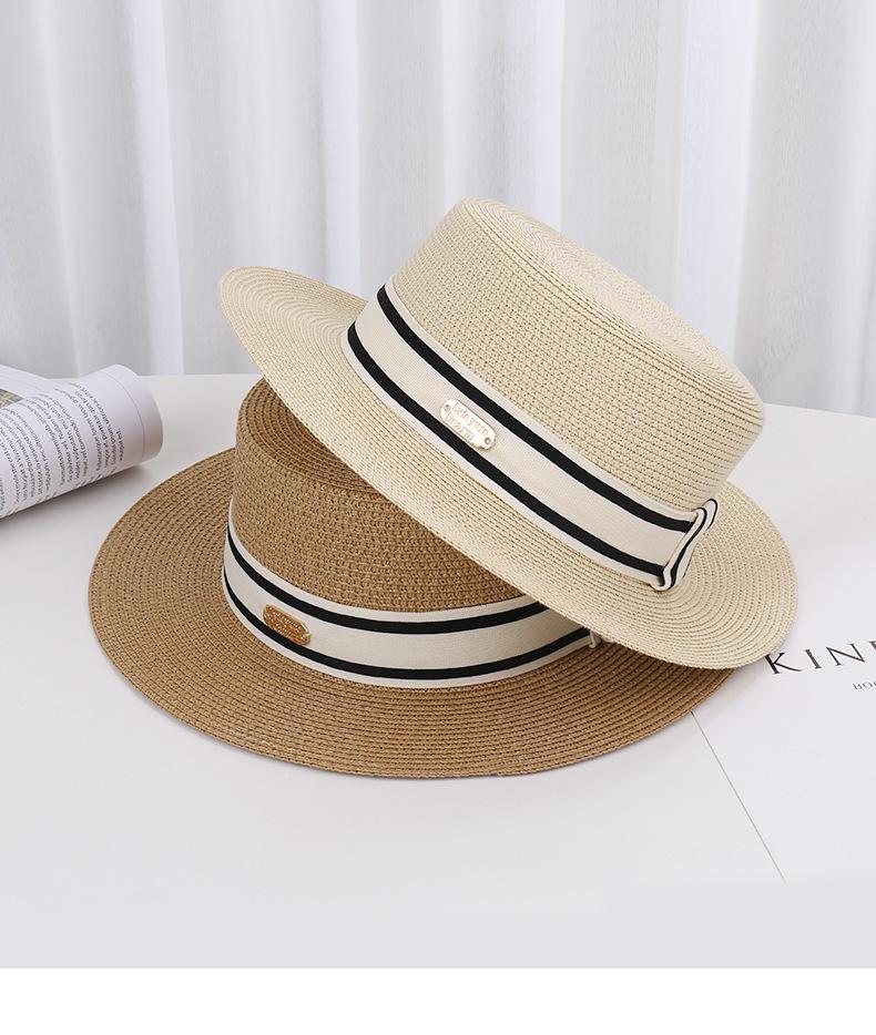 Sombrero de paja de verano con parte superior plana, estilo socialité, para mujer, para playa, parasol, protector solar, estilo retro francés.