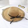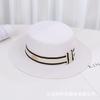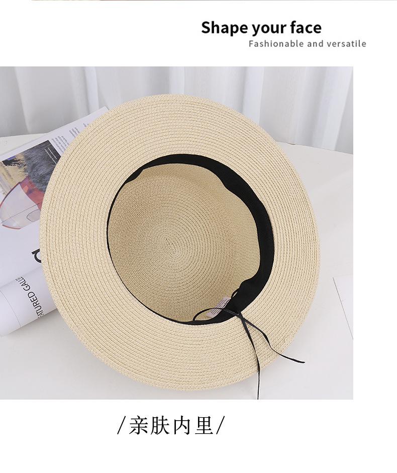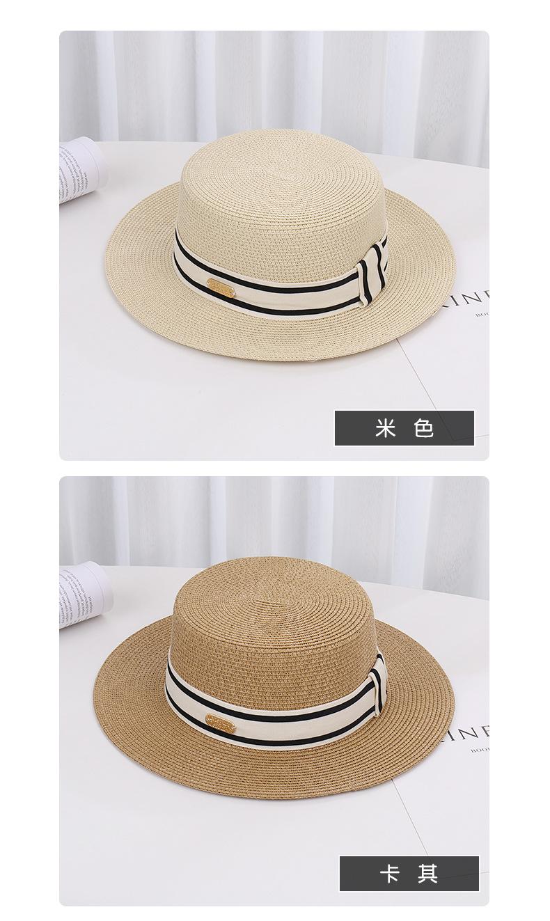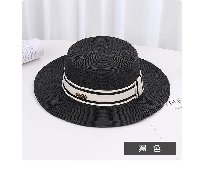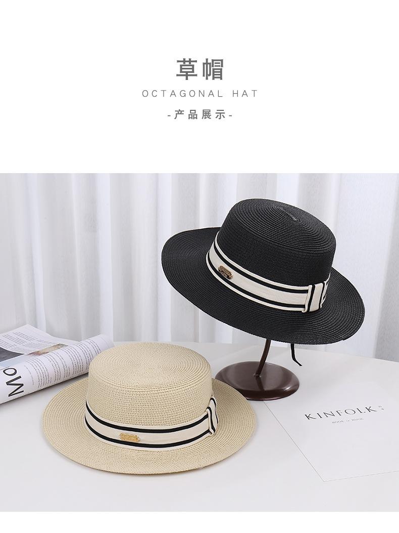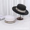 Sombrero de paja de verano con parte superior plana, estilo socialité, para mujer, para playa, parasol, protector solar, estilo retro francés.