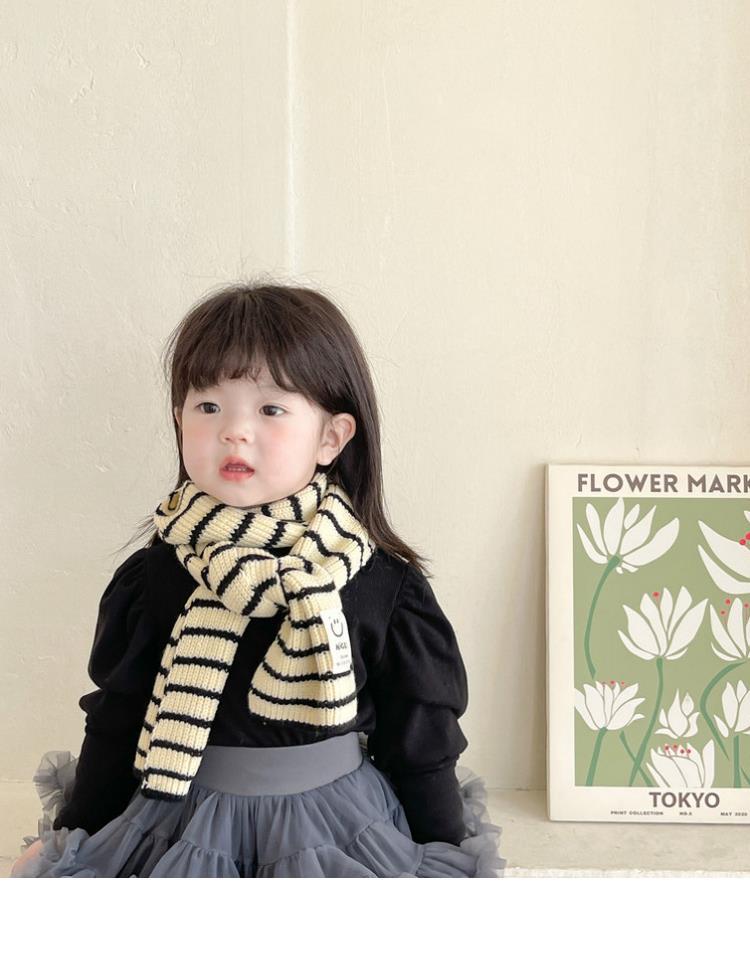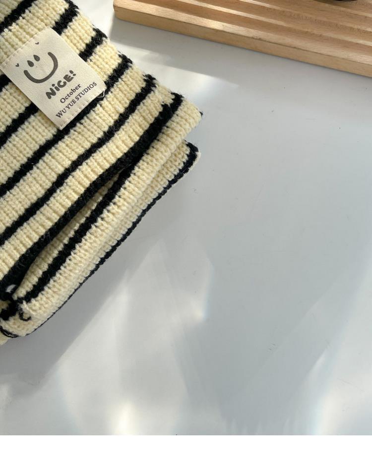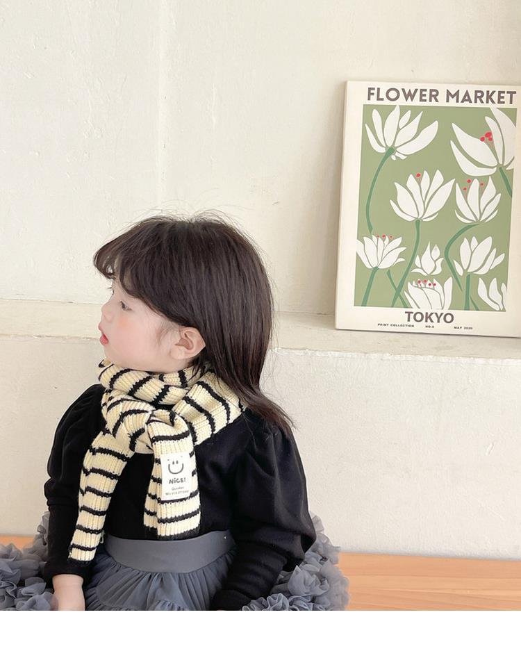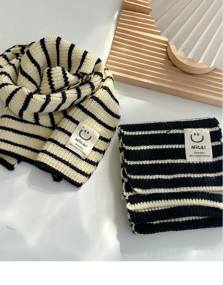 Bufanda clásica de rayas de Corea del Sur para niños con parche de cara sonriente, gruesa, cálida, estilo occidental, para todo tipo de combinaciones, para bebés, hombres y mujeres, para invierno