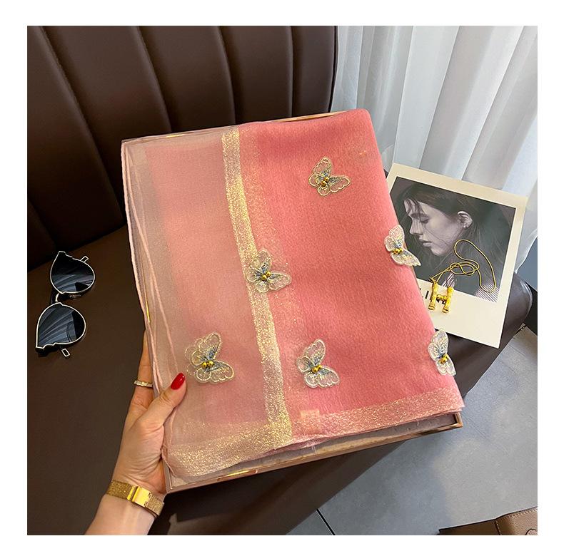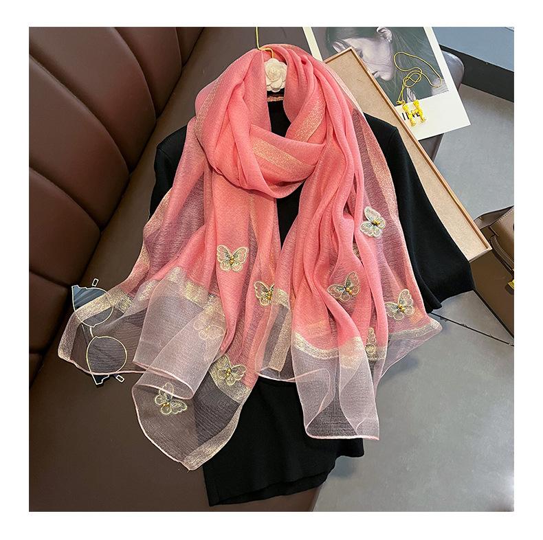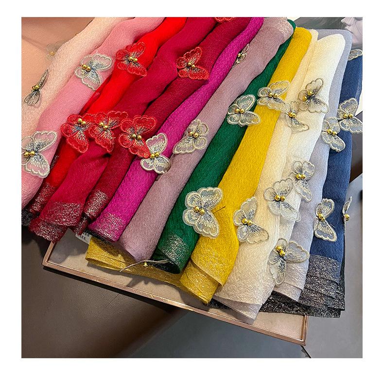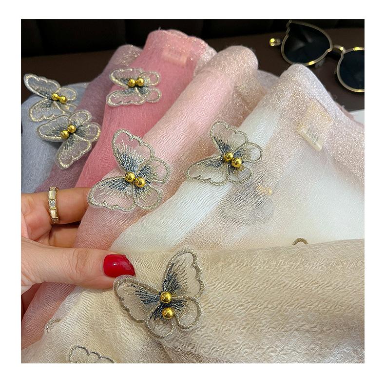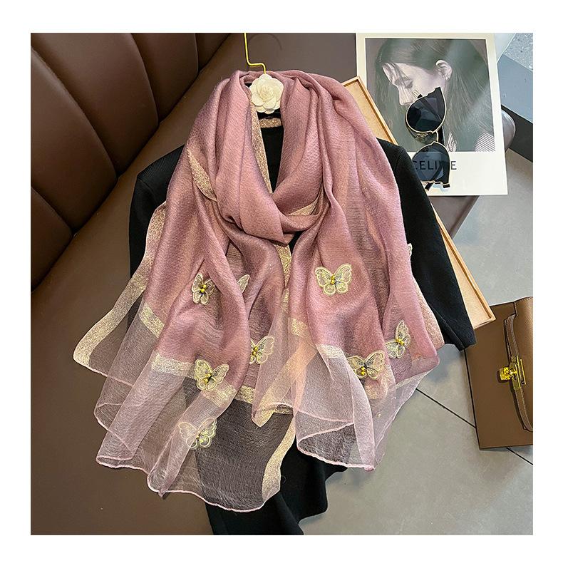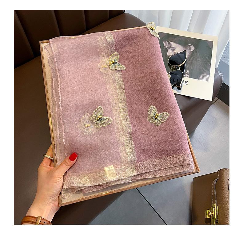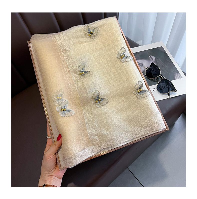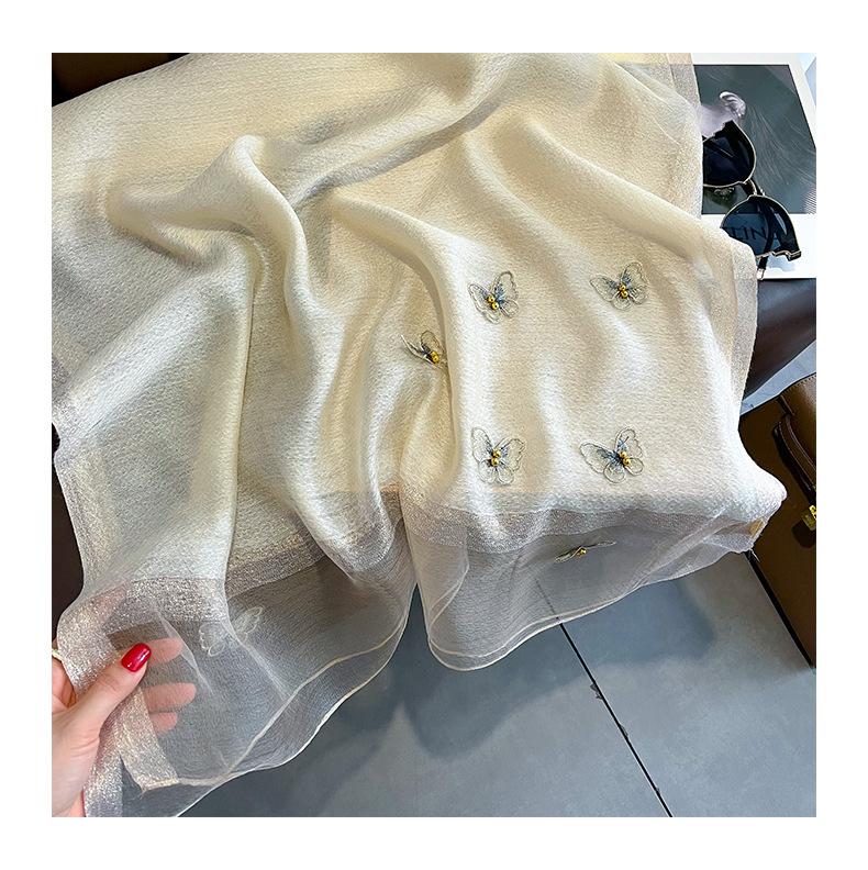 Bufanda de lana de seda de alta calidad con mariposas y perlas de color liso bordadas de verano, chal para mujer, nuevo estilo para madre