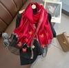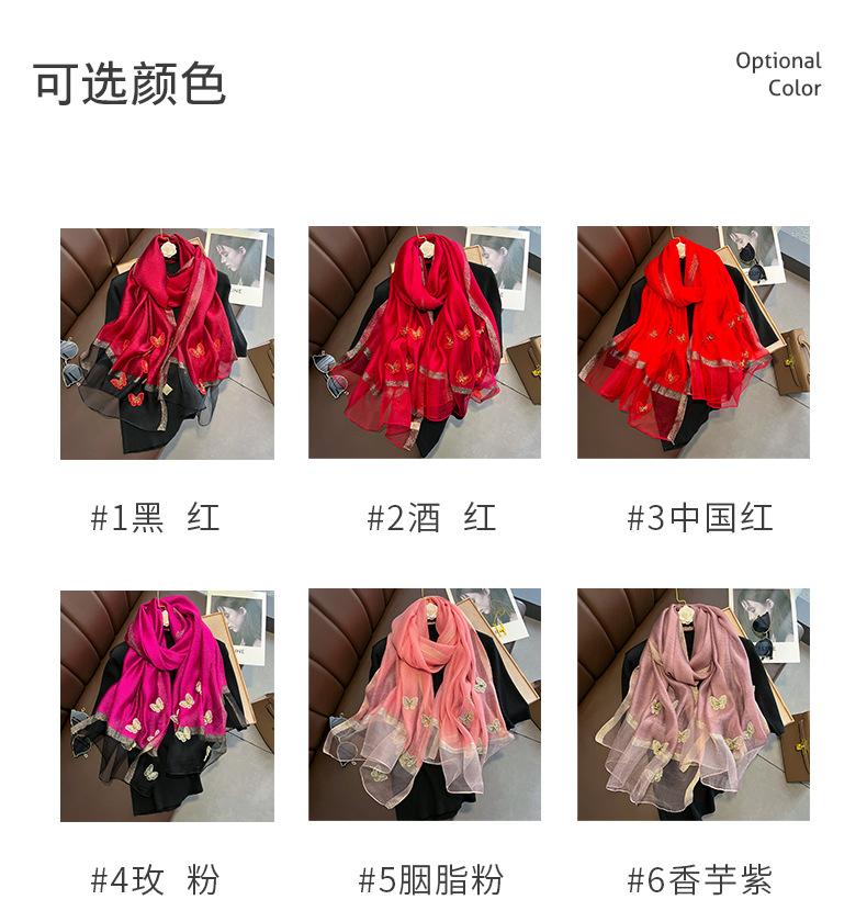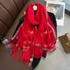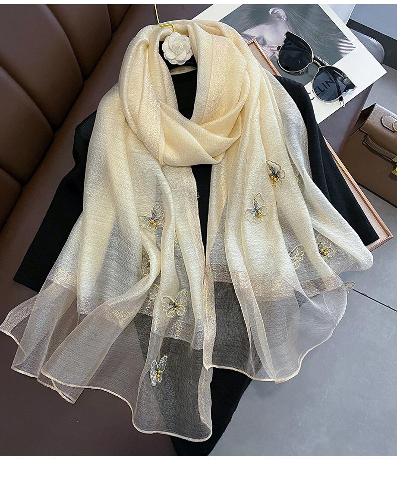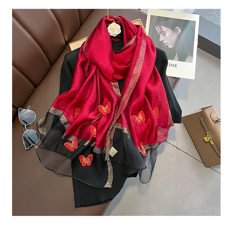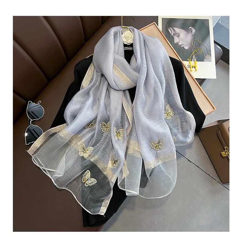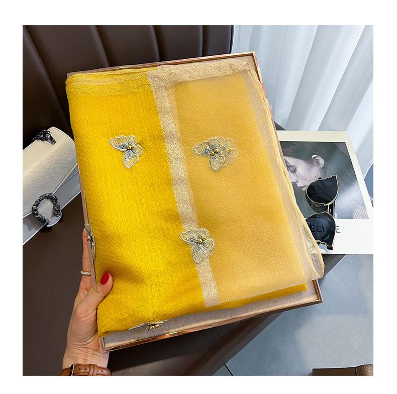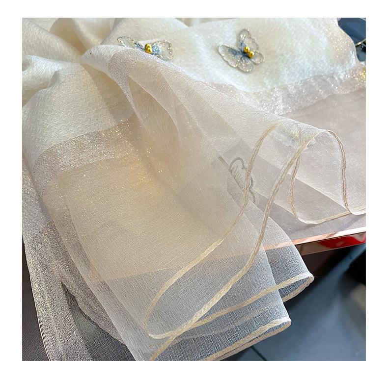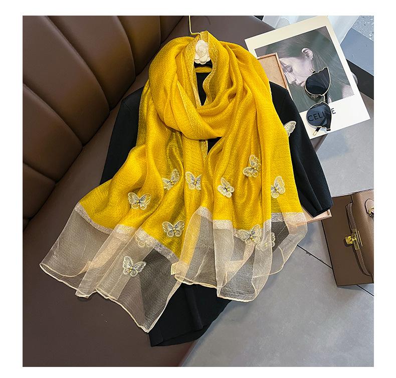 Bufanda de lana de seda de alta calidad con mariposas y perlas de color liso bordadas de verano, chal para mujer, nuevo estilo para madre