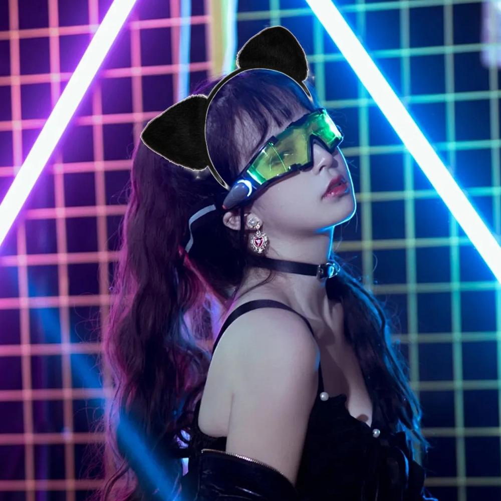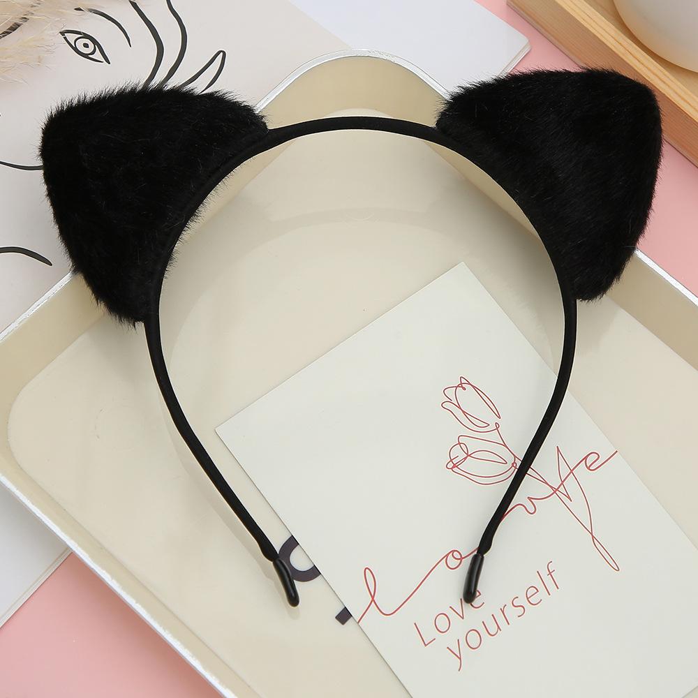 Bonita horquilla con orejas de gato negro para niña, pequeña diadema de felpa fresca con orejas grandes, diadema fina y colorida.