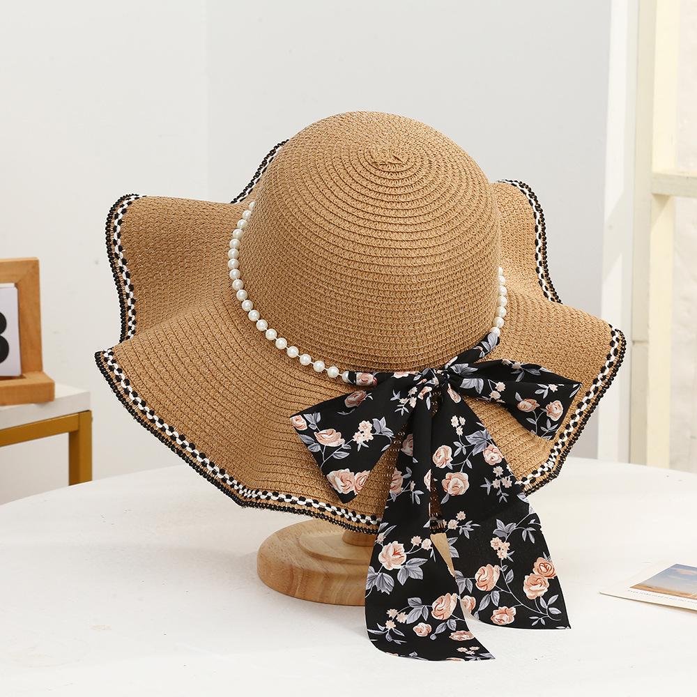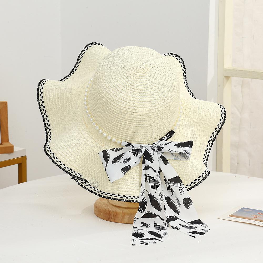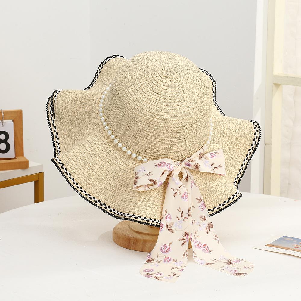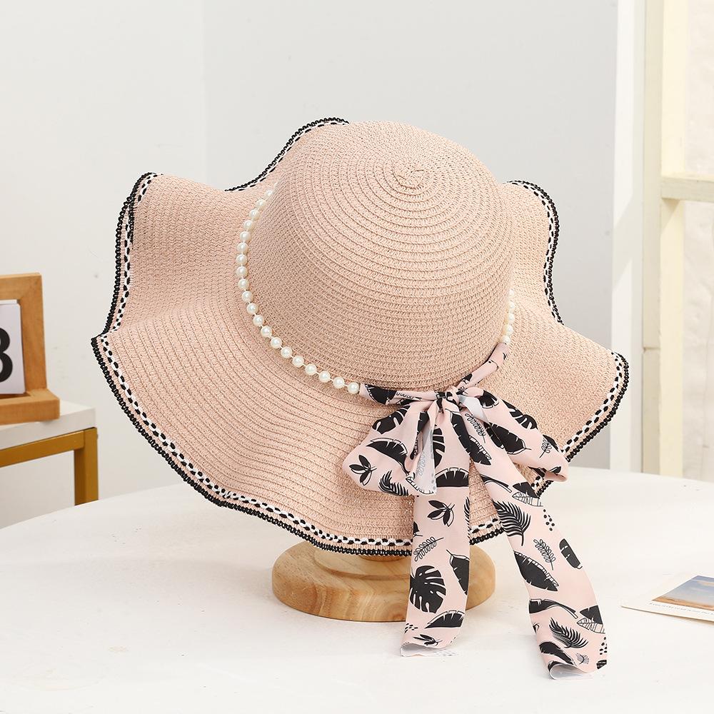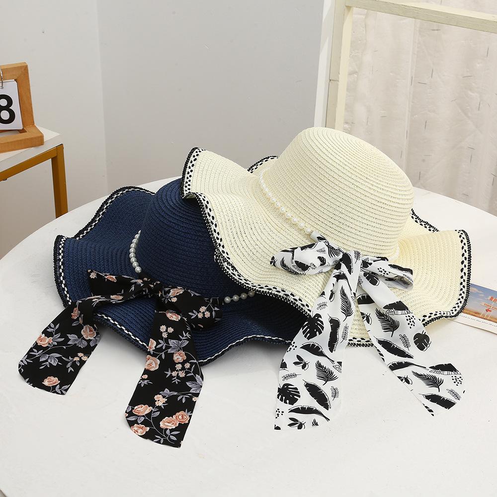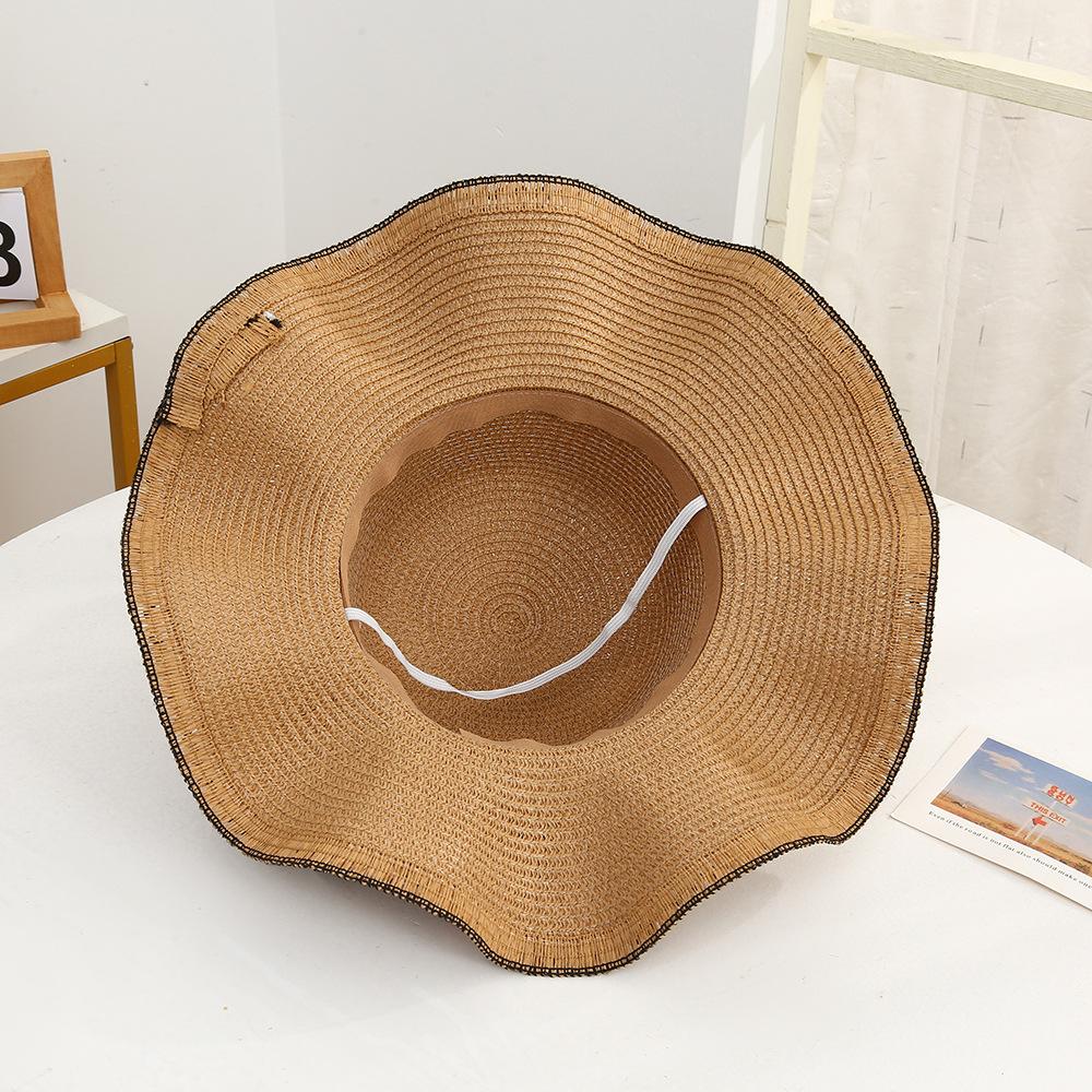 Nuevo Sombrero de Sol de Paja de Ala Ancha con Lazo para Mujer para Viajes al Aire Libre y Vacaciones Sombrero de Sol con Cinta de Borlas Fábrica