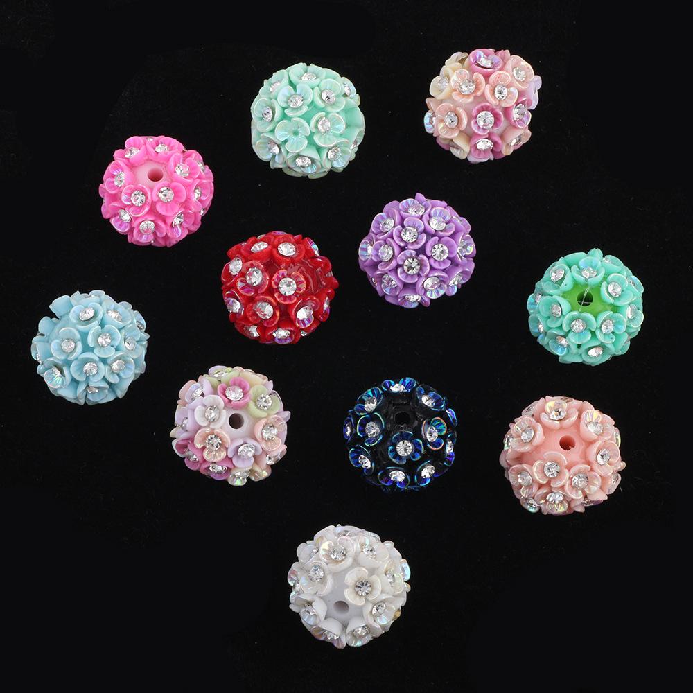 Lirio de 10 colores, bola de flor de tres pétalos, bola de diamante explosiva, se puede usar, cuentas de agujero recto, llavero de teléfono móvil DIY, collar