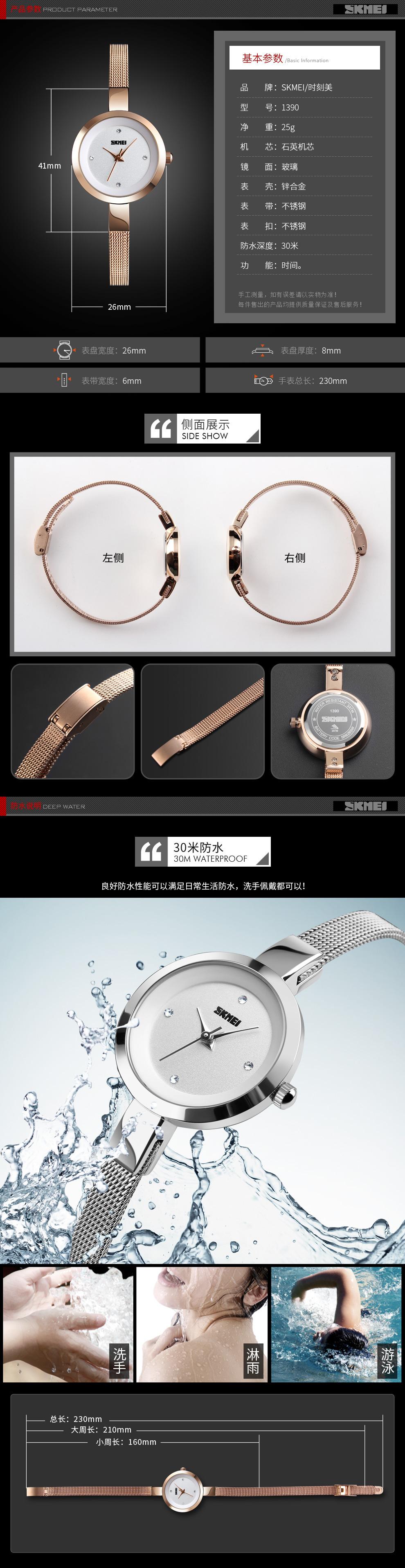 Hermoso reloj de moda para mujer, de temperamento simple, modelo 1390, reloj de collar para mujer, reloj de cuarzo resistente al agua para novias.