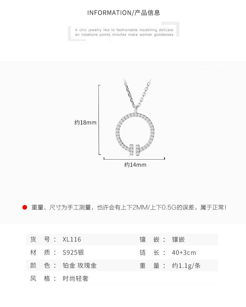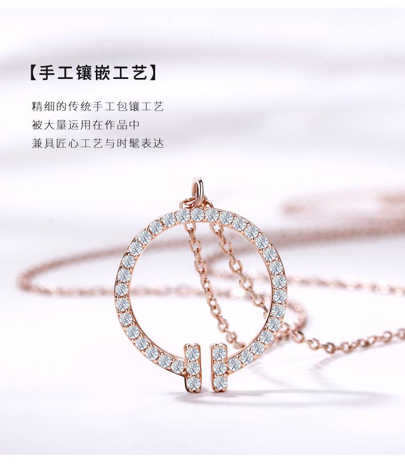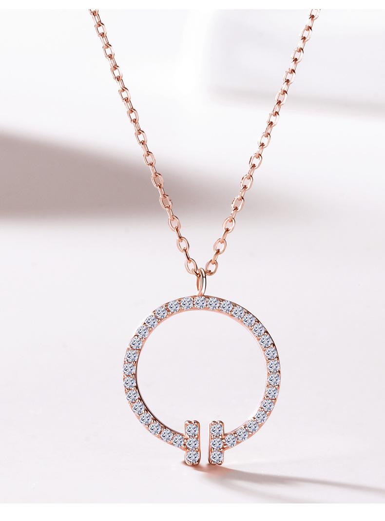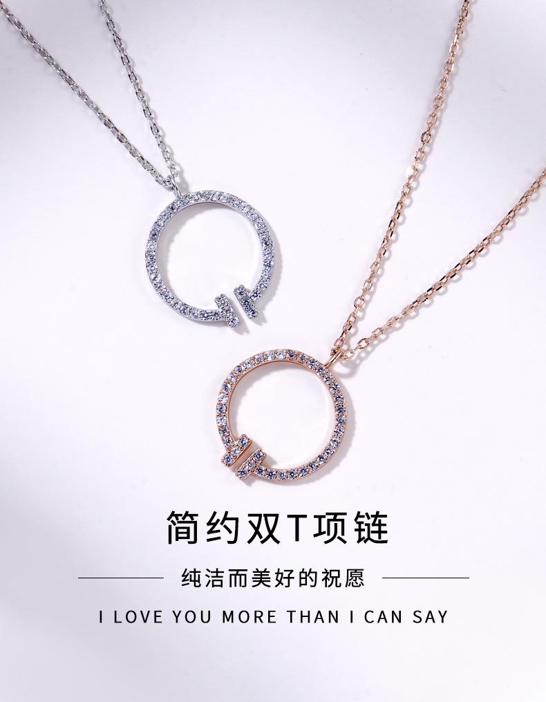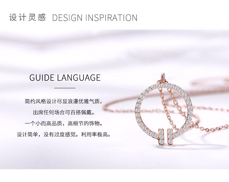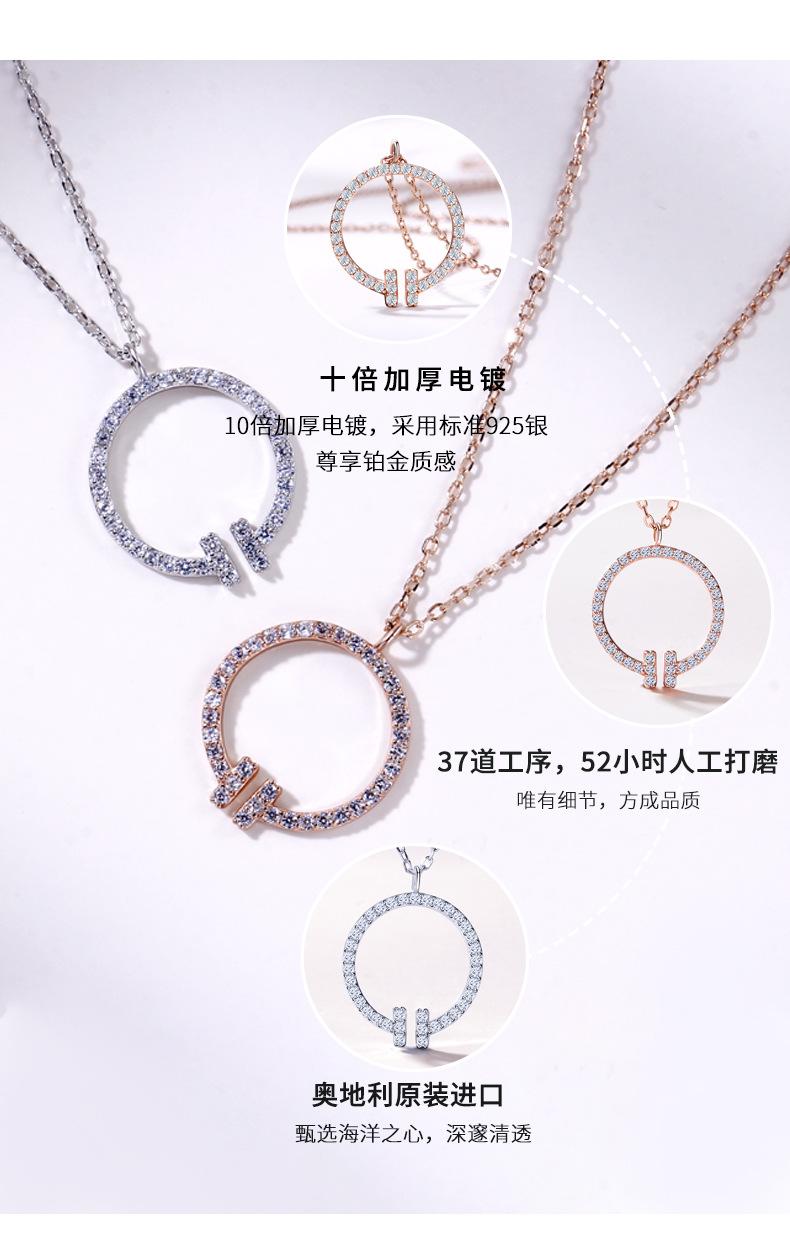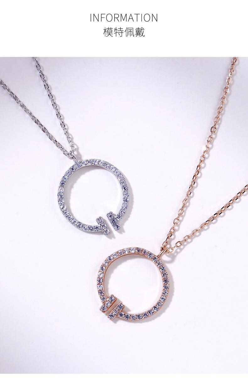 Elaine First Jewelry S925 Collar Simple de Doble Círculo T de Plata Esterlina Diseño Nicho Colgante Estilo Mori Lujo Ligero Cadena Clavícula