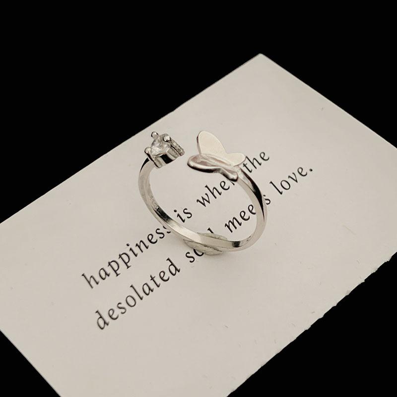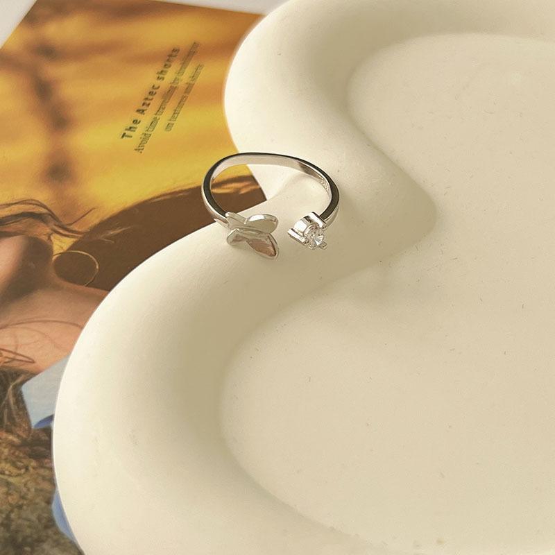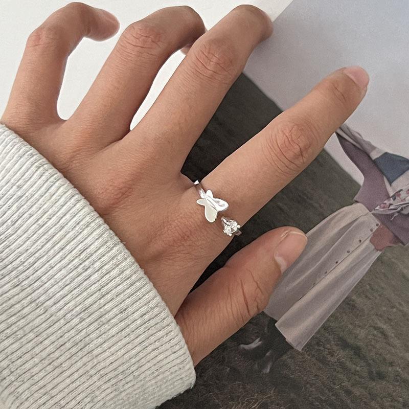 Anillo abierto de circonita con forma de mariposa, sencillo y elegante, para mujer, diseño de nicho, estilo frío, anillo de lujo ligero de alta calidad.