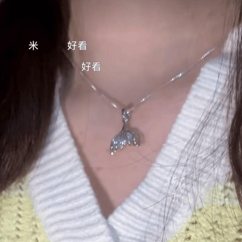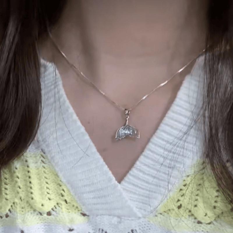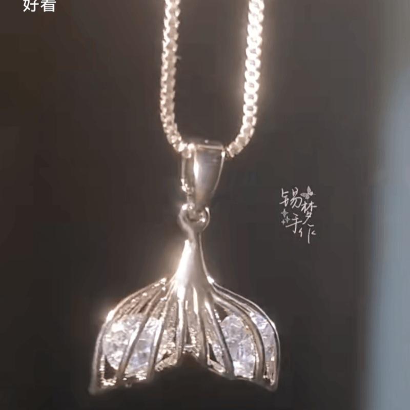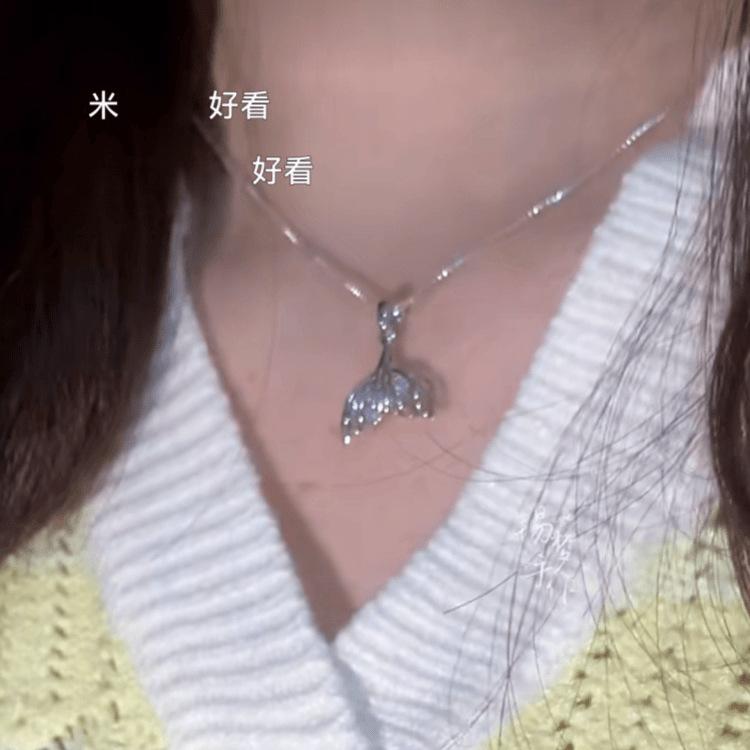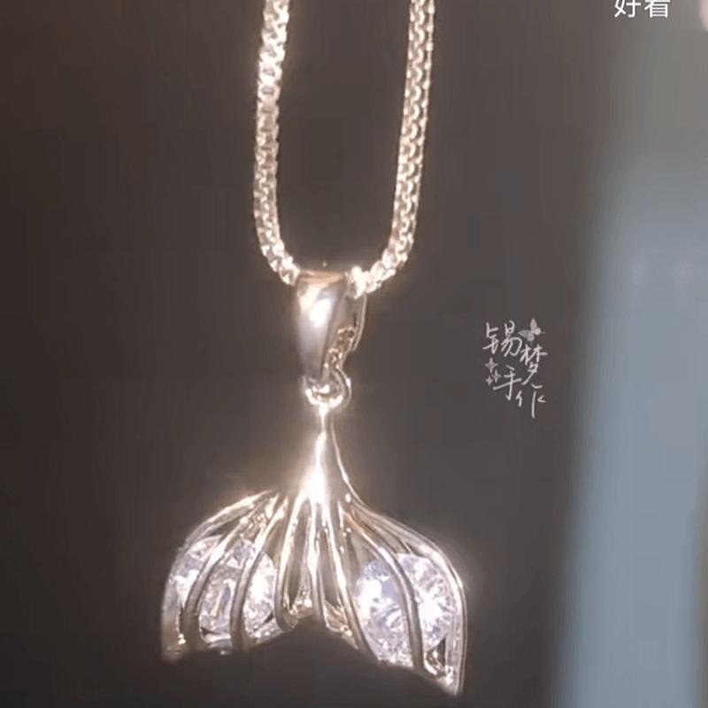 Collar de cola de pez y elefante Qi Xiyin "Amor y espacio profundo", diseño de nicho, collar de princesa con corazón y personalidad para niña.