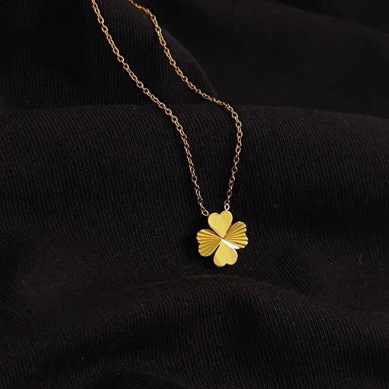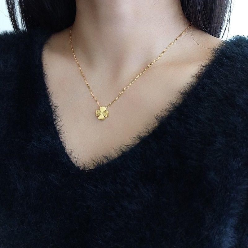 Collar de moda con forma de trébol de cuatro hojas y flor de coche de acero de titanio resistente a la decoloración 2023, accesorios de joyería sencillos y modernos para mujer