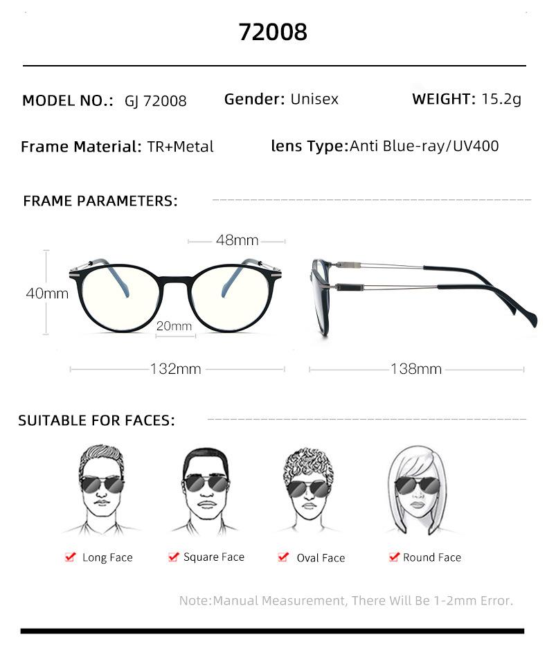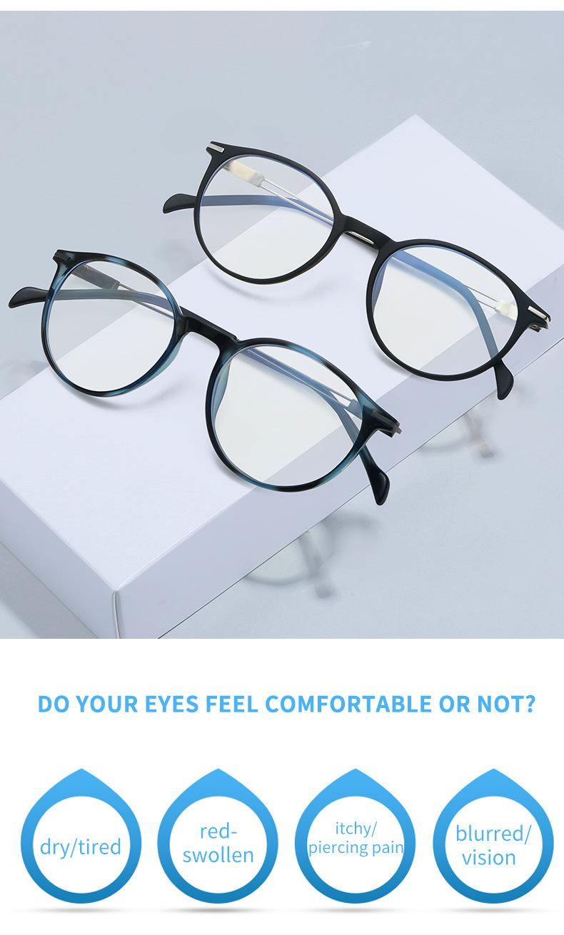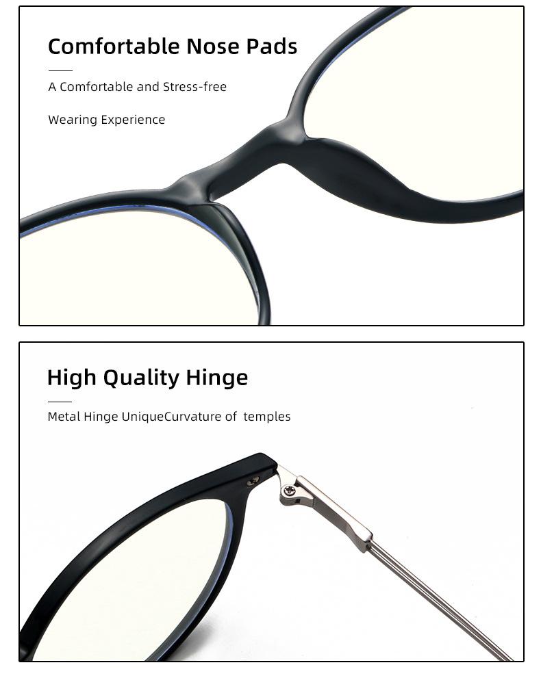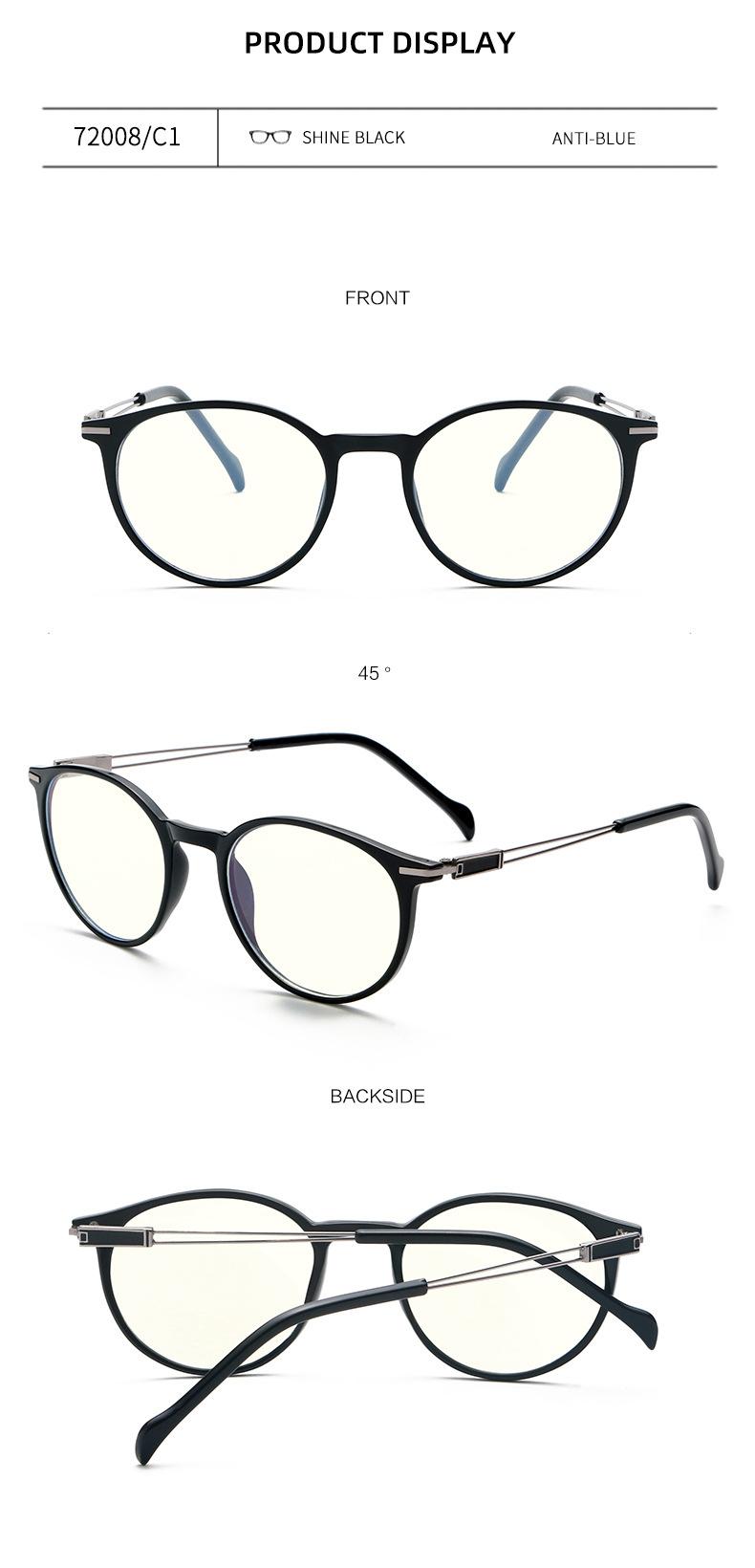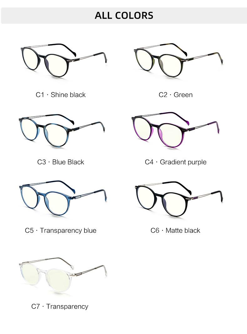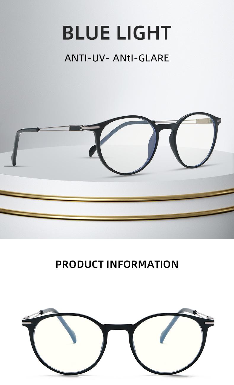 Gafas con montura redonda TR90 transfronterizas, montura para gafas para miopía, sitio web independiente europeo y americano de moda, montura para gafas con luz azul y lentes planas.