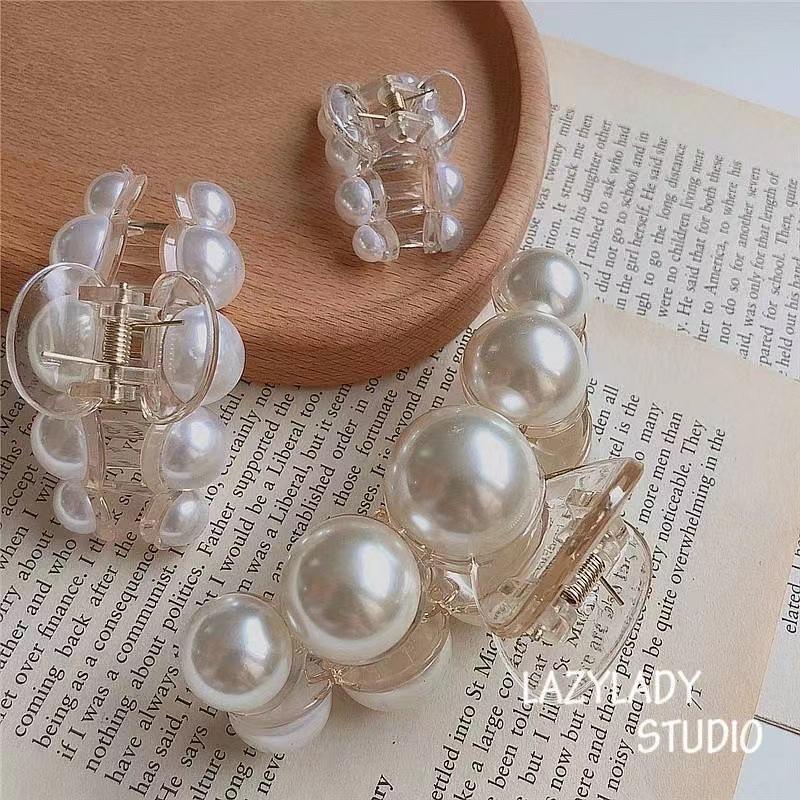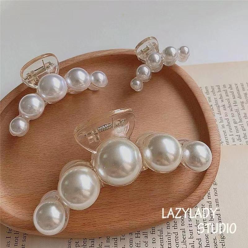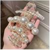 Pinza para el cabello con perla grande, estilo retro, combina con todo, para la parte posterior de la cabeza, elegante y elegante pinza para el cabello con forma de tiburón para chica coreana.