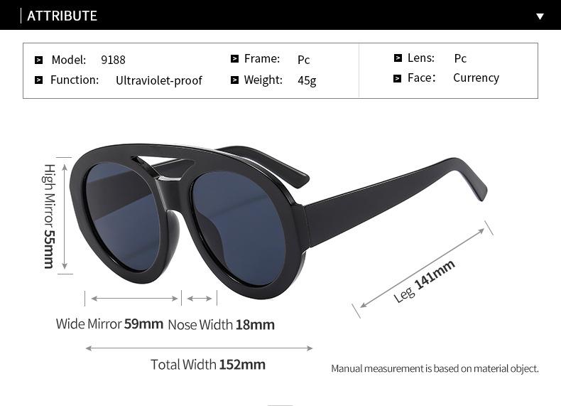 Nuevo estilo creativo Europeo y Americano ovalado de montura grande diseño de doble varilla gafas de sol para viaje al aire libre protección UV