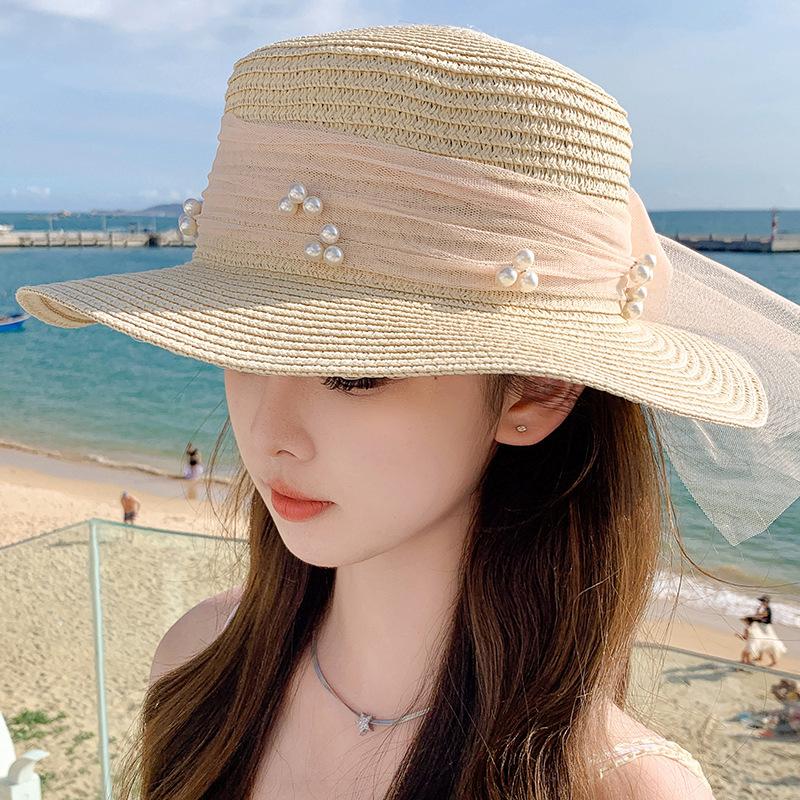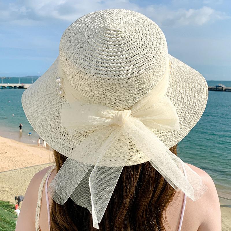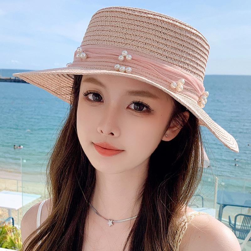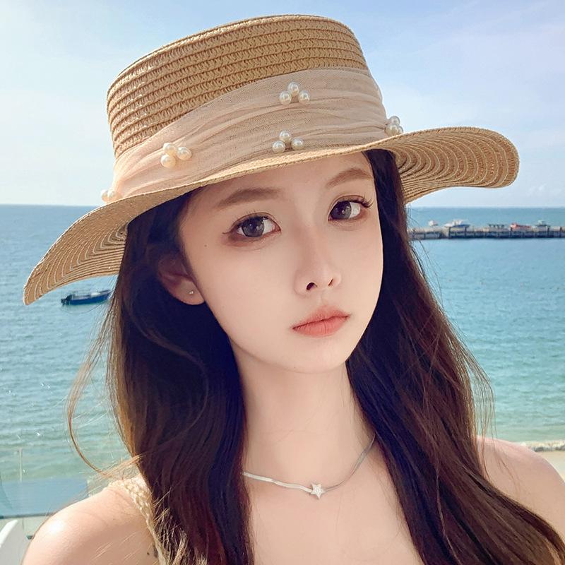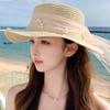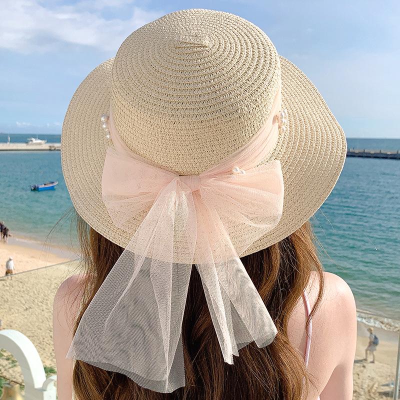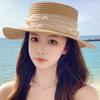 Sombrero de sol de verano con lazo de cinta, sombrero de copa plana elegante y a la moda, sombrero de playa, sombrero de sol para mujer